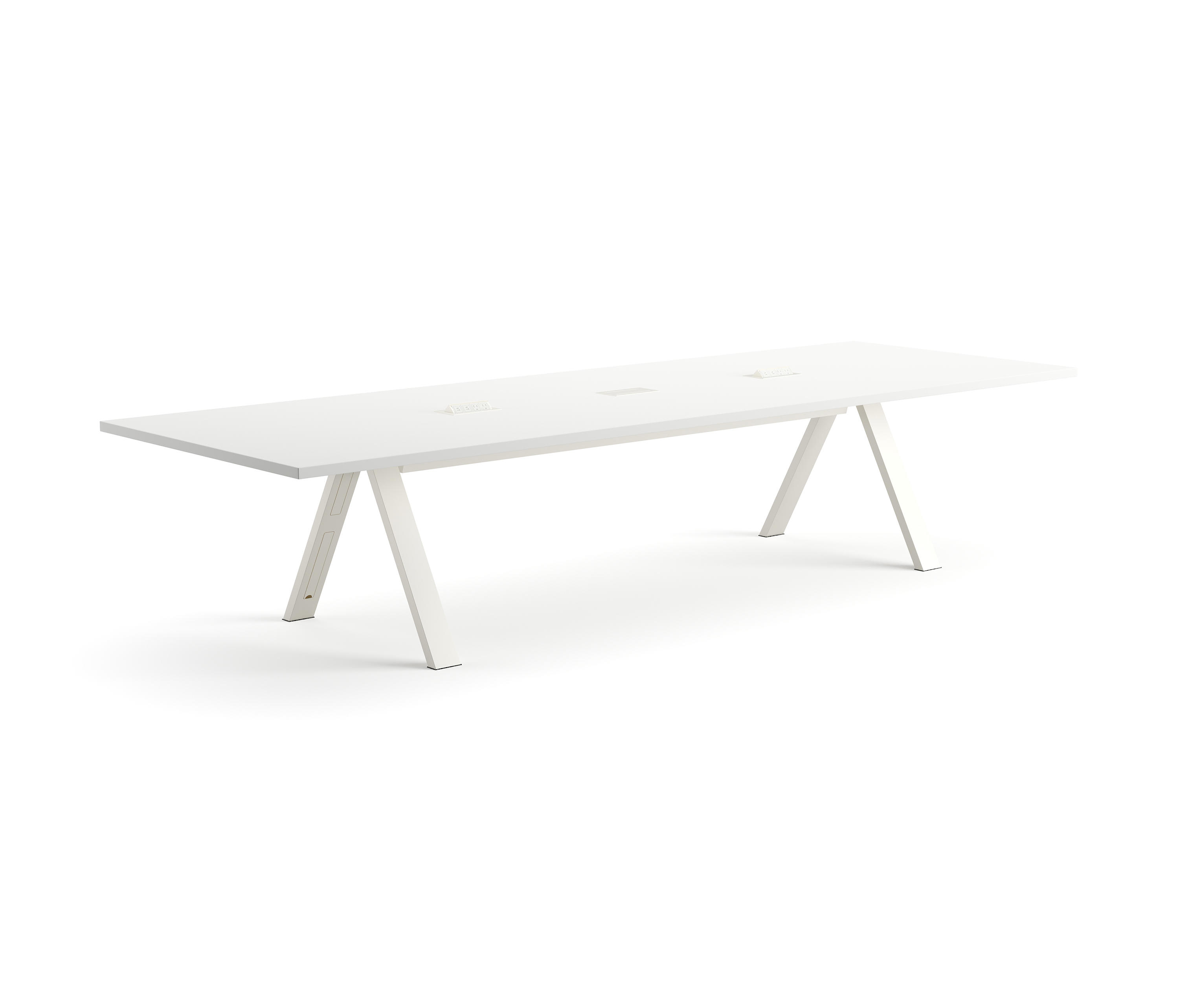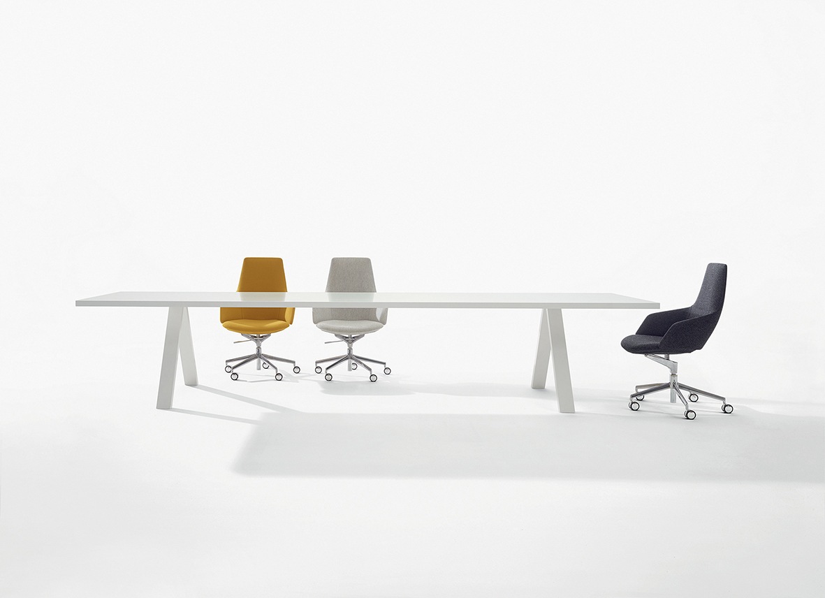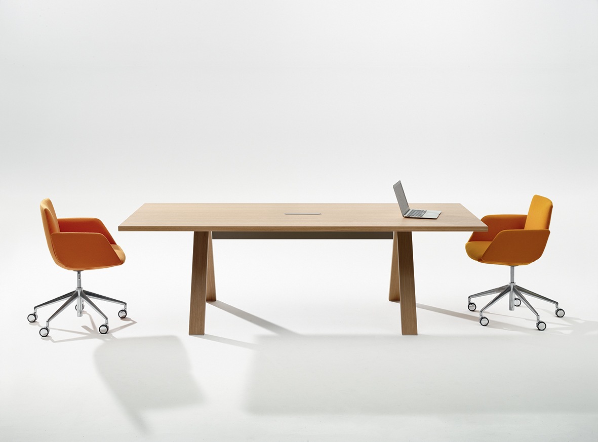 Stůl Cross je přizpůsobivý, otevřený a velkorysý. Je vhodný pro zasedací místnosti, obytné prostory nebo pro pracovní prostředí.