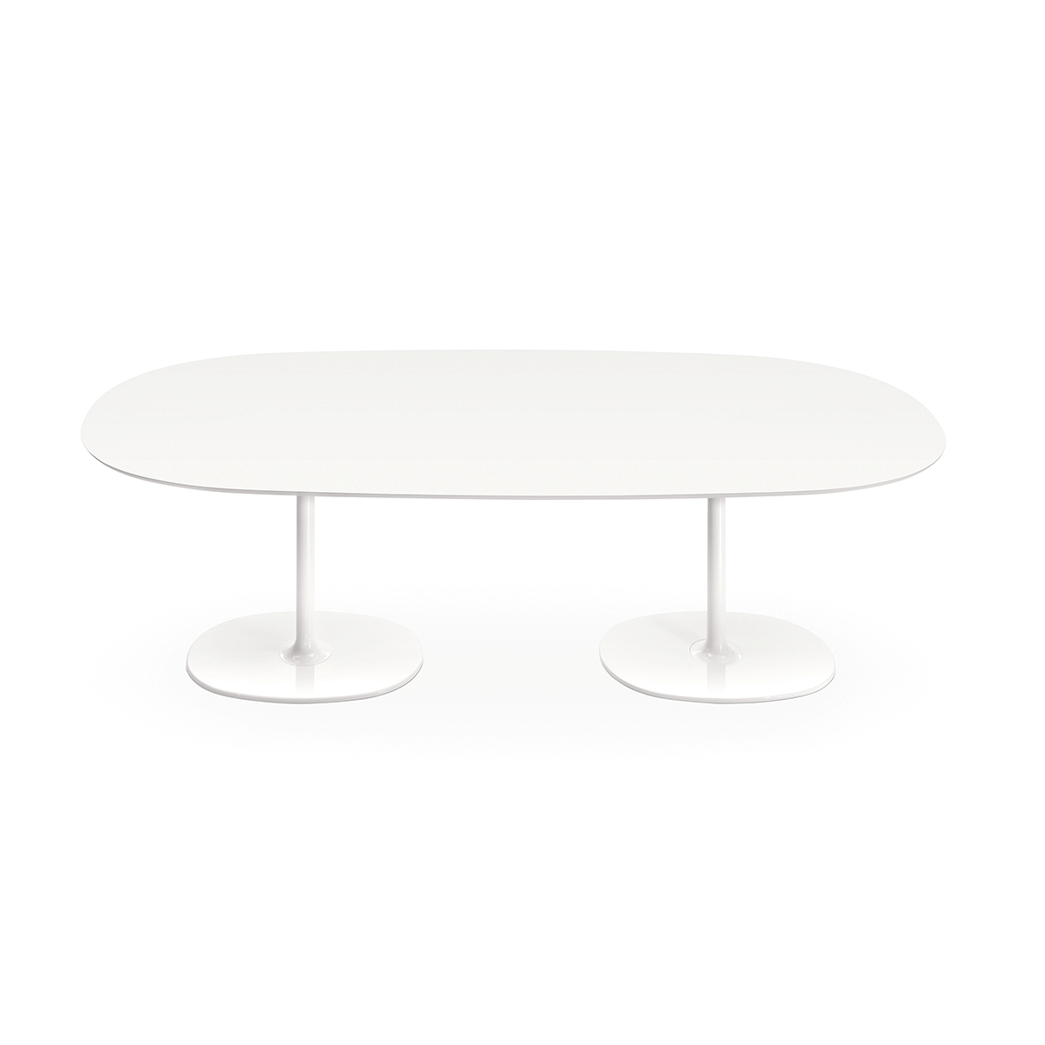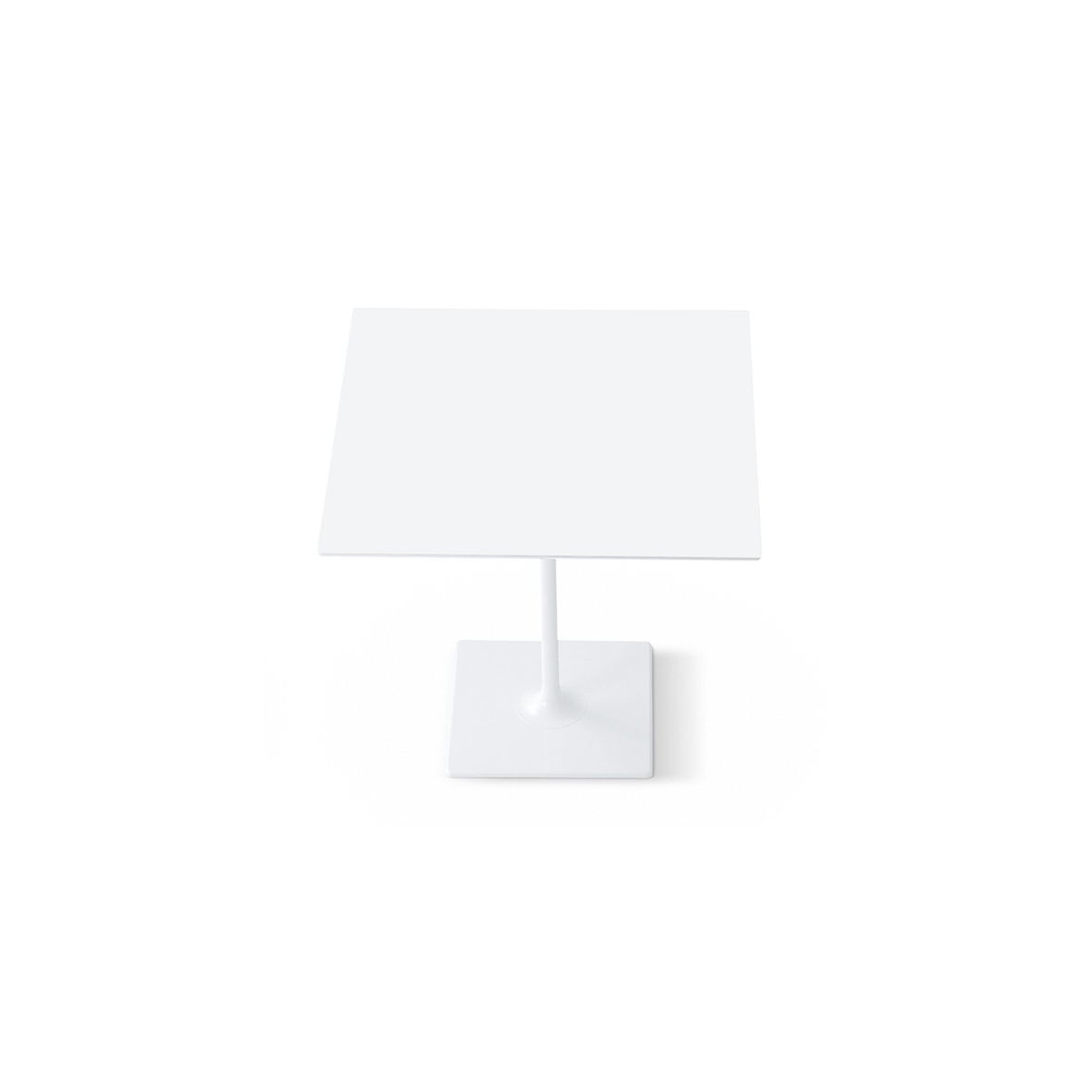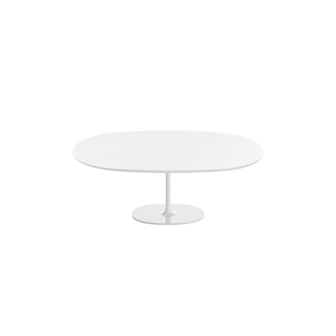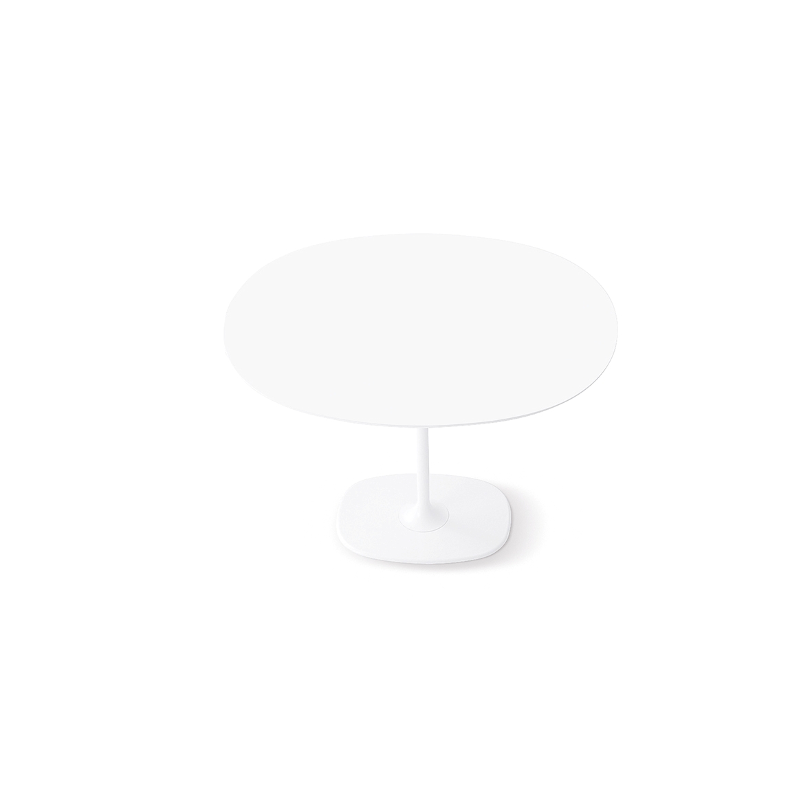 Základny stolů jsou k dispozici v chromové nebo bíle lakované oceli. Bílé desky MDF nebo laminátové desky jsou k dispozici ve velkých, malých, kulatých nebo čtvercových oválech. Verze h 50 s oválnou základnou je k dispozici lakovaná ve čtyřech zářivých barvách - moka, červené, písku a černé.