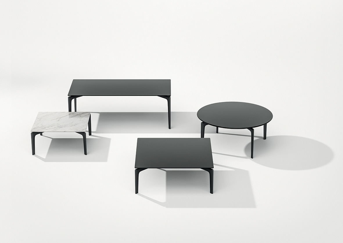 Odvážné, ale jemné linie kolekce Saul jsou navrženy tak, aby se integrovaly do kolekce gaučů Arper, jako Steeve a Sean. Vybírat lze z kouřového skla nebo mramoru.