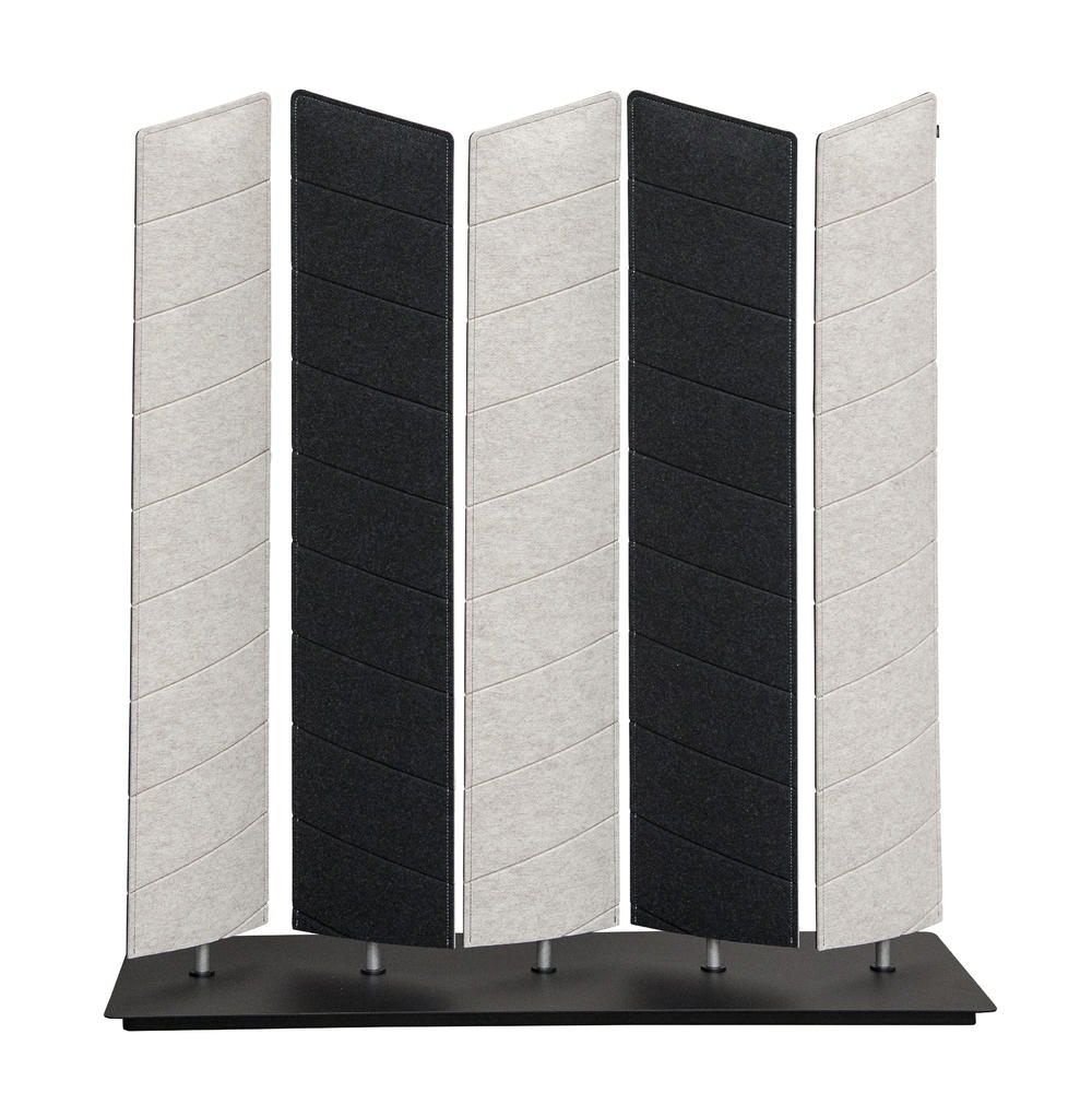 BuzziBlinds se vyznačují jedinečnou řadou tvarů a technologií v-cut pro výraznější vizuální dojem. Hliníková konstrukce je potažená látkou BuzziFelt, který je k dispozici ve 12 barvách. Přizpůsobte si BuzziBlinds pomocí extra vrstvy tkaniny nebo přidejte kola k základní desce, pro snadný pohyb či přemístění.
