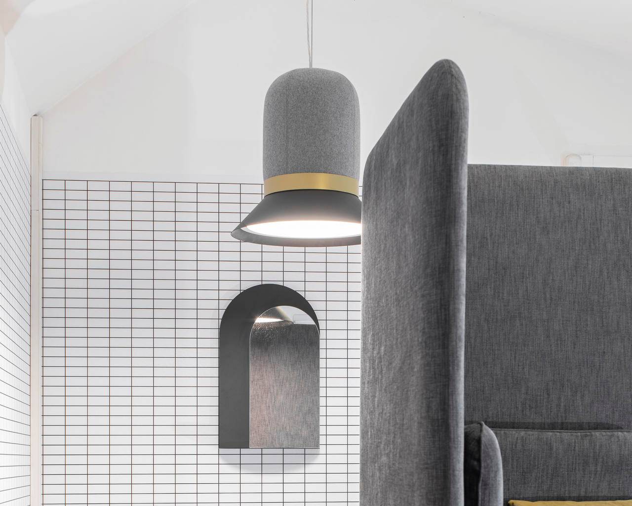 Vytvořte si svůj vlastní jedinečný BuzziHat výběrem ze 4 velikostí, 4 kovových odstínů, 4 barev kovových prstenů a 375 tkanin. Míra pohlcování zvuku je závislá na velikosti produktu. Namixujte a slaďte si BuzziHat s dalším nábytkem ve stejném prostoru, ať už je to kancelář, restaurace nebo lobby. Spodní část skrývá všechny elektrické komponenty, zatímco horní část funguje jako vysoce účinný prvek pohlcující zvuk. Kombinujte různé velikosti BuzziHat pro vaše ideální akustické řešení.