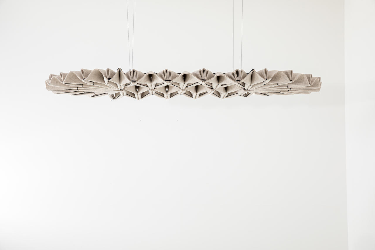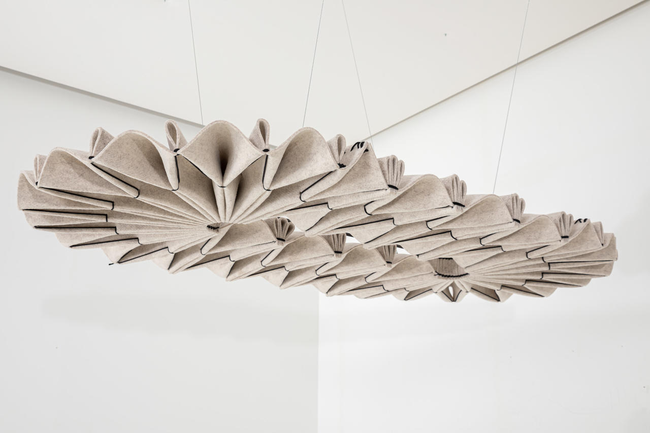 Zažijte výjimečný akustický výkon BuzziPleat, získaný jeho sofistikovanými záhyby. Velké, ale lehké feltové plastiky lze zavěsit na strop nebo na zeď.