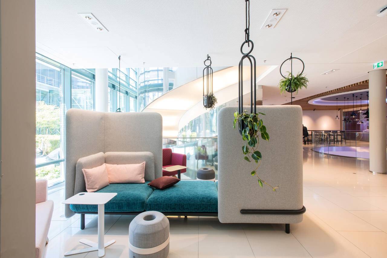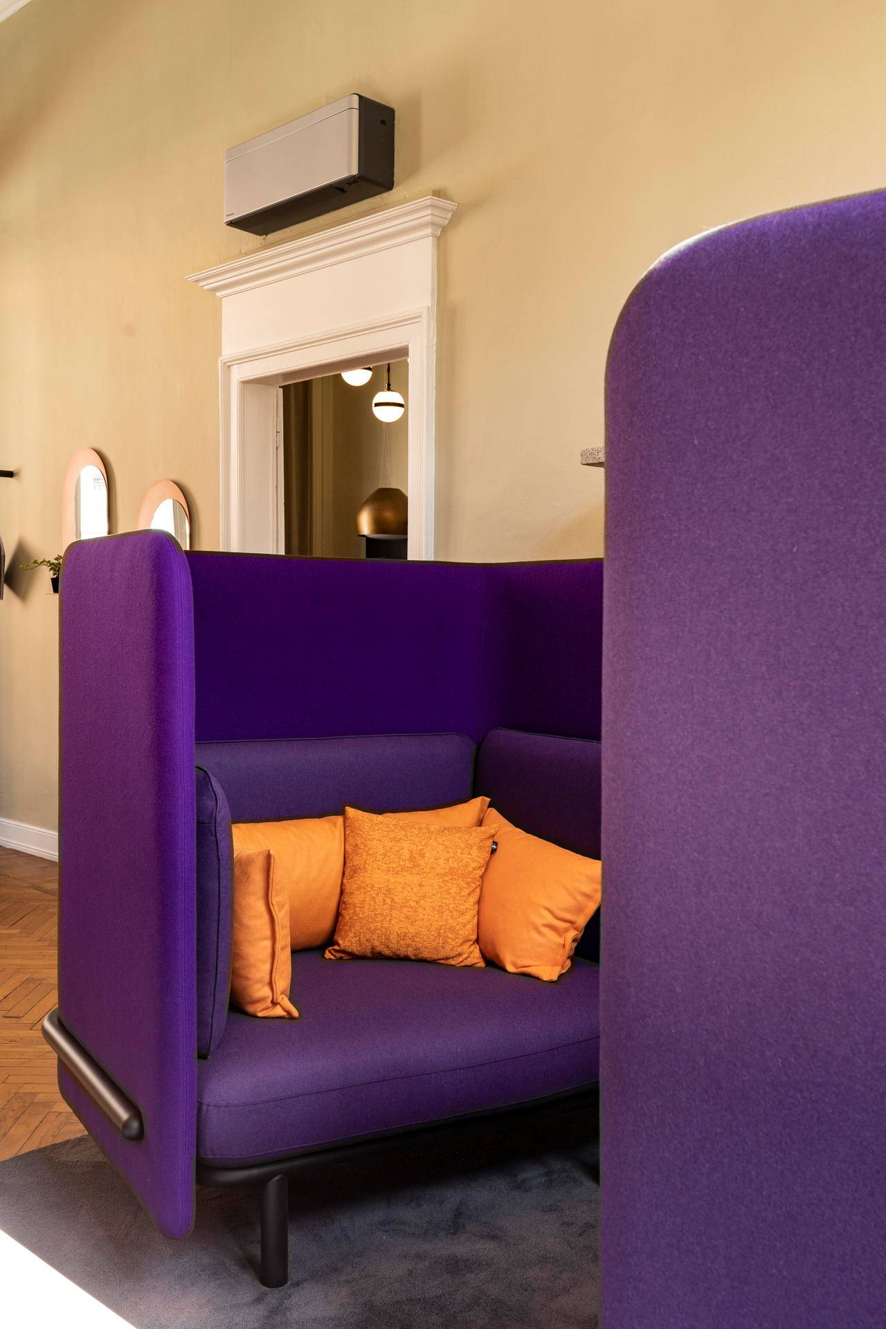Měkká pohovka ideální pro vypití kávy i efektivní práci.