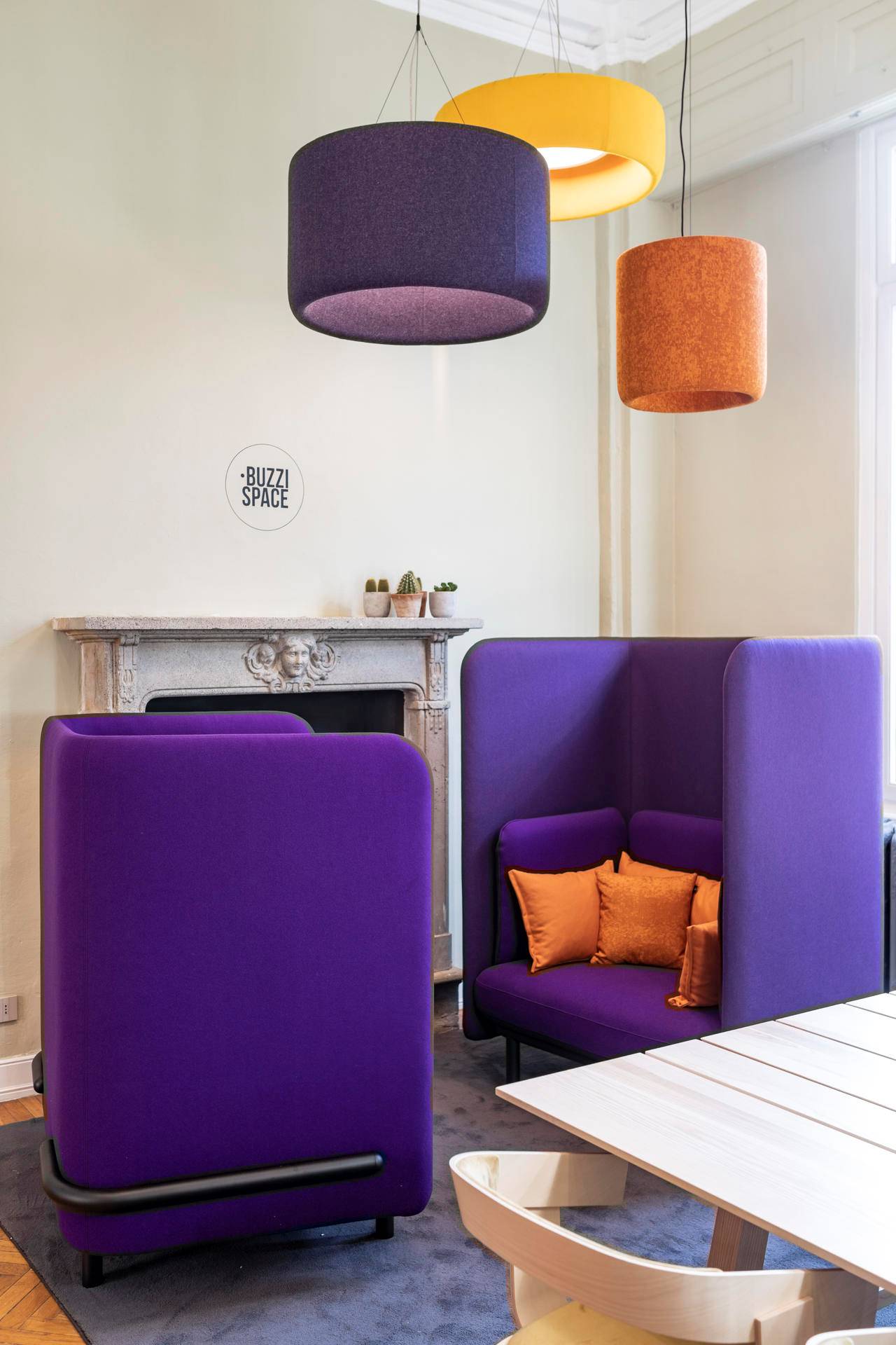 Vytvořte místo pro chvíli soukromého odpočinku nebo alternativní pracovní stanici, kde vás nebude nic rozptylovat. Kombinujte výšky štítů a dosáhněte různých úrovní soukromí a pohlcení zvuku. Buďte kreativní a vyberte si z různých odstínů barev pro čalouněný polštář i sedadla. BuzziSpark je speciálně navržen pro pracující nomády, kteří potřebují elektrické zásuvky v tranzitních prostorech, a nabízí jemně integrované zásuvky pro případ, kdy potřebujete dobít nejen vy, ale i vaše zařízení.