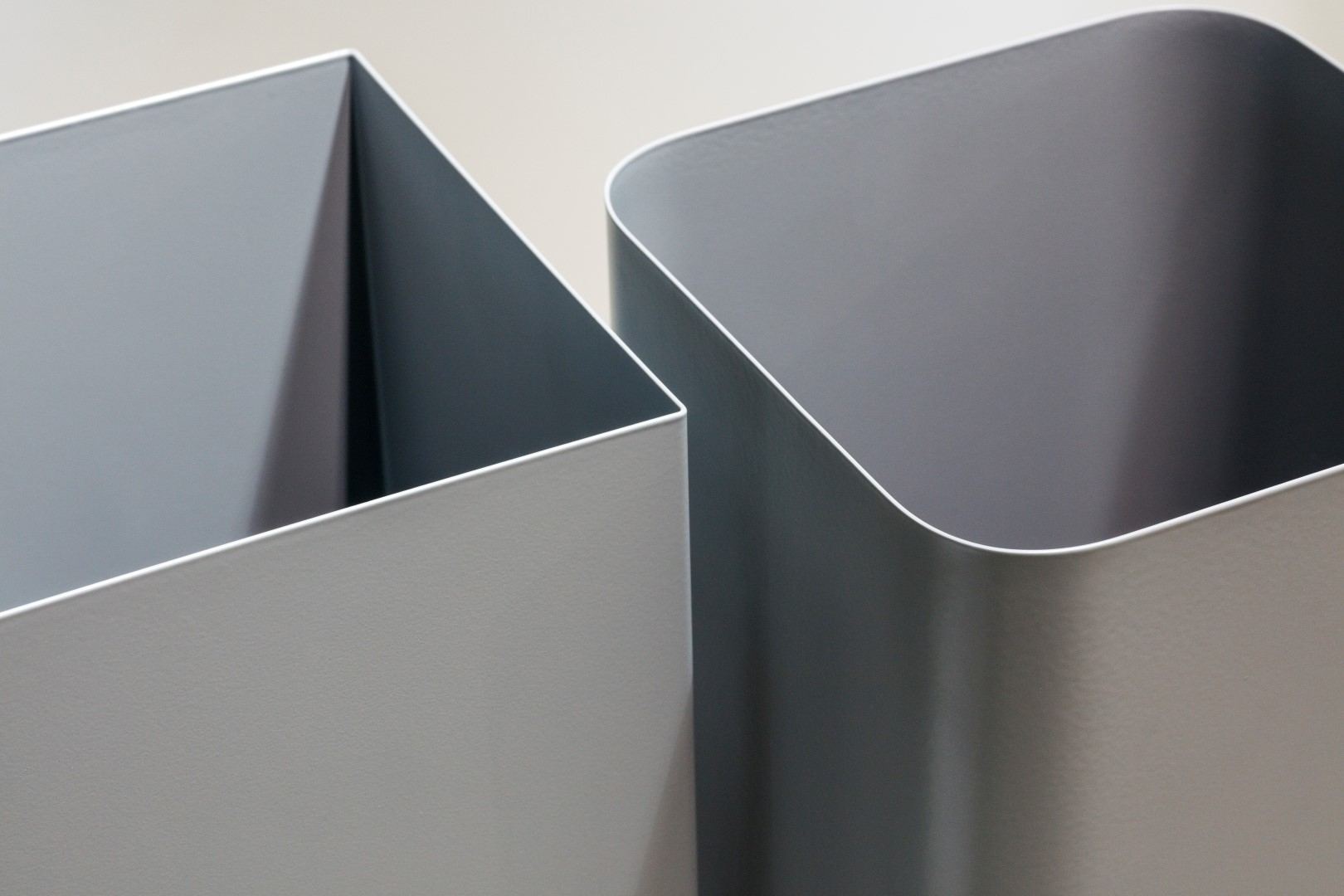 Odpadkové koše z řady Square mají čtvercové rohy a jednoduché linie. Mají perfektní povrchovou úpravu a jsou nepropustné. K dispozici jsou ve třech velikostech a dvou barvách. Dodávají se s krycím topem (volitelně). Barvy jsou k dispozici na vyžádání.