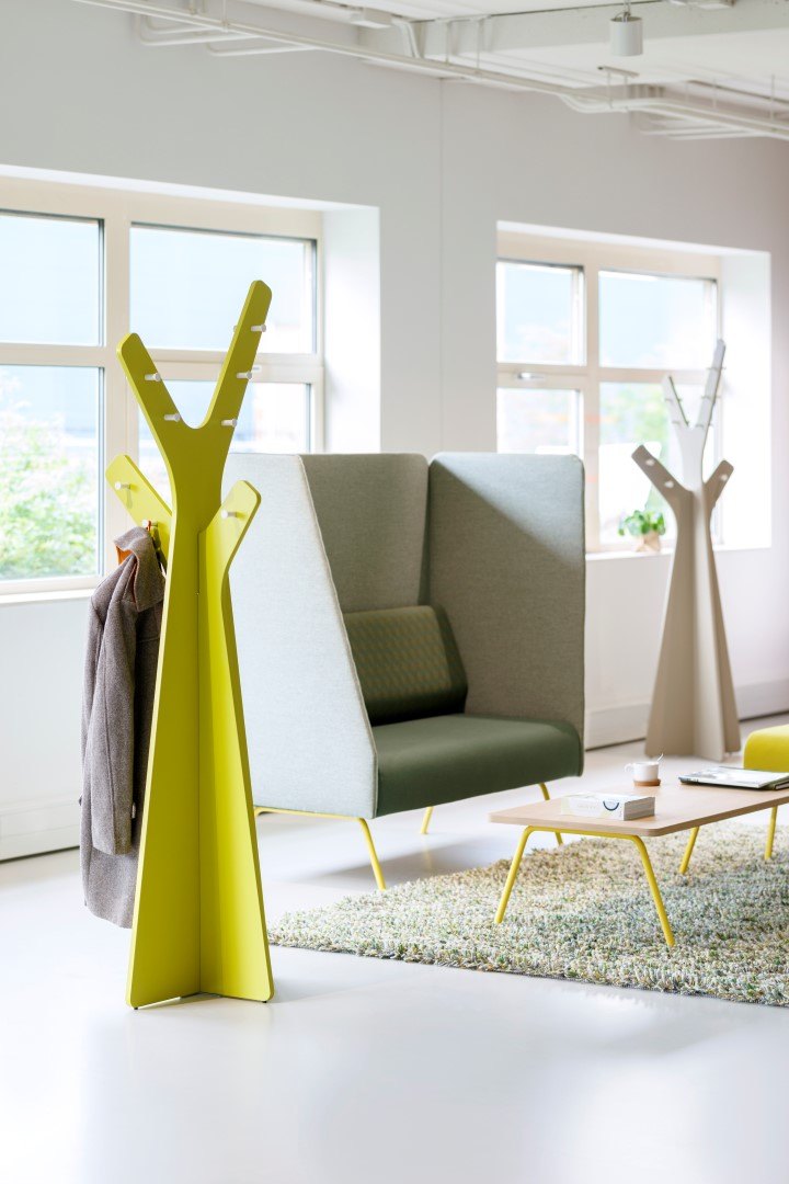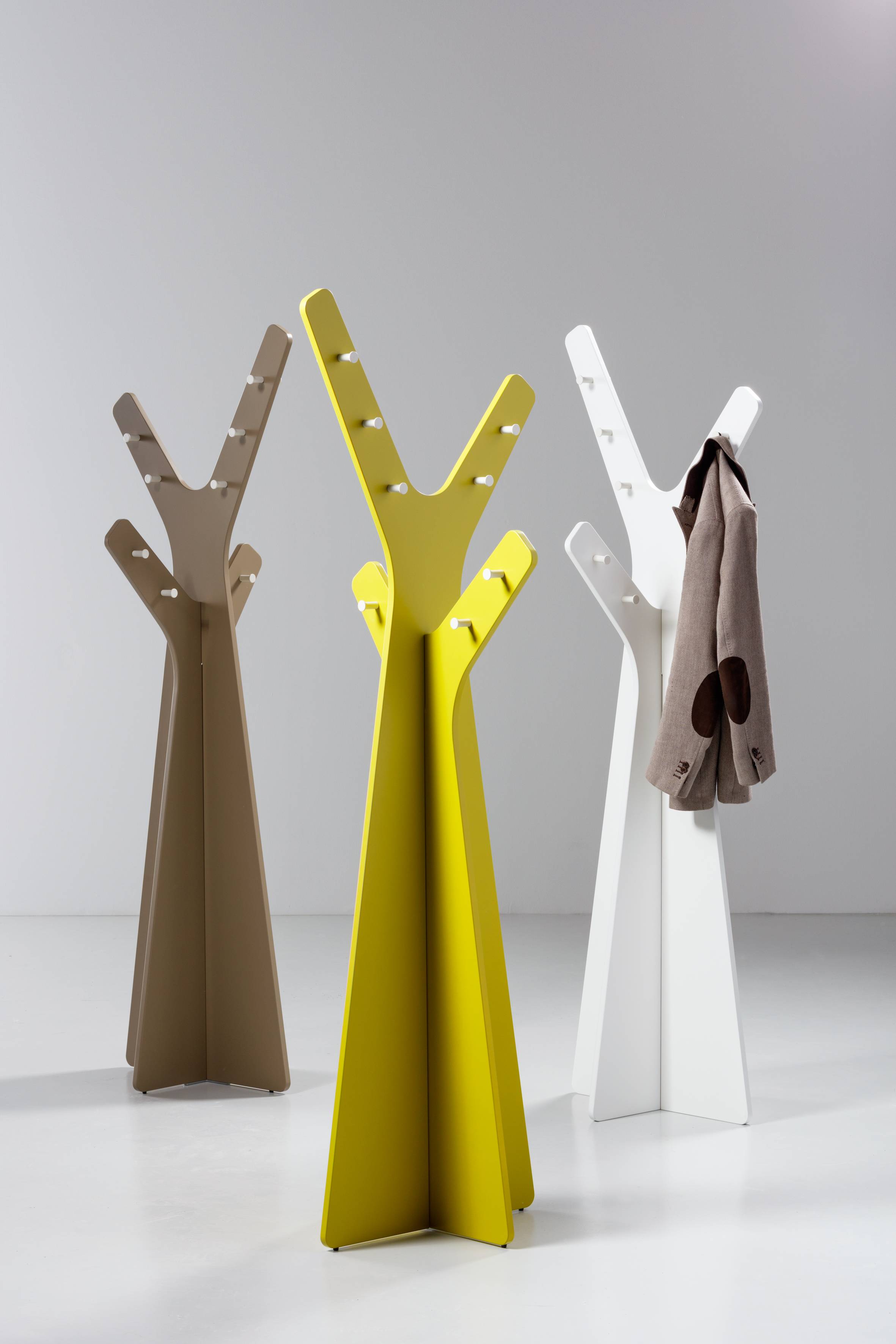 Tree je stabilní, volně stojící věšák, který pojme až 20 vrstev. Je Vyroben z lakované MDF desky s kolíky v bílé a šedé barvě.