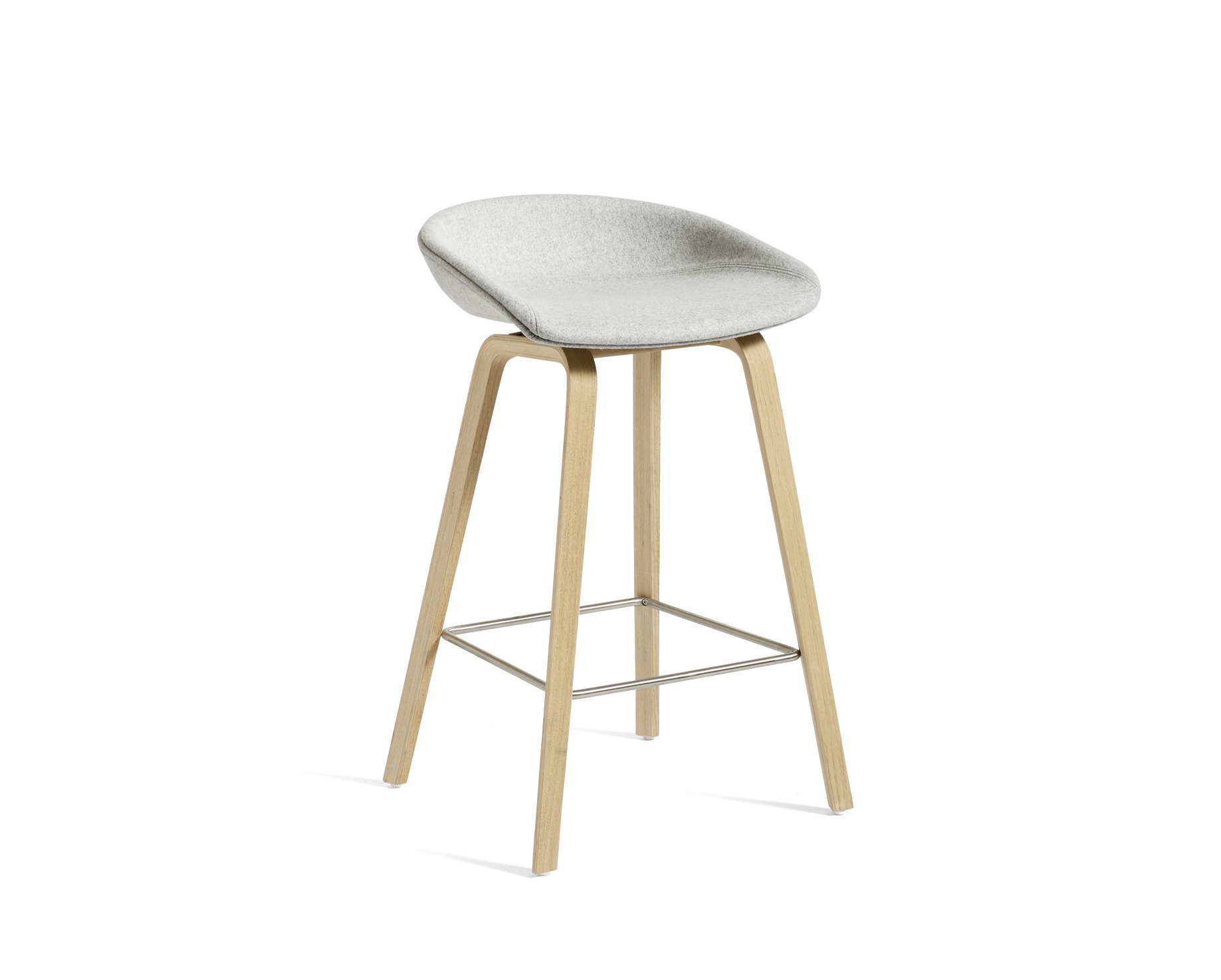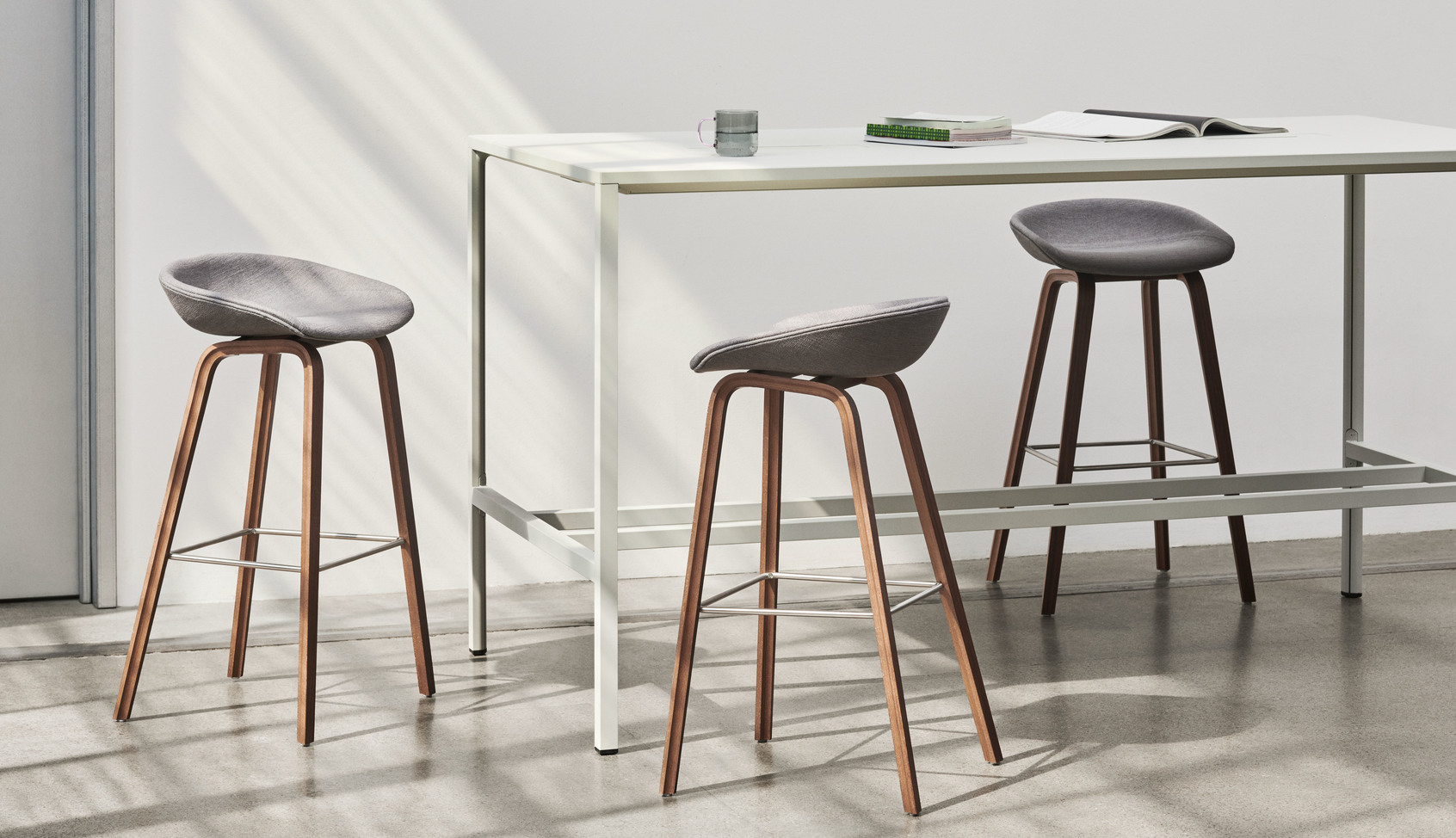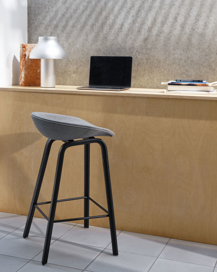 Plně čalouněná verze. Se zakřiveným opěradlem a dlouhými elegantními dřevěnými nohami představuje ideální volbu do veřejného prostředí. K dispozici je ve dvou výškách a v řadě dřevěných povrchových úprav a barev.