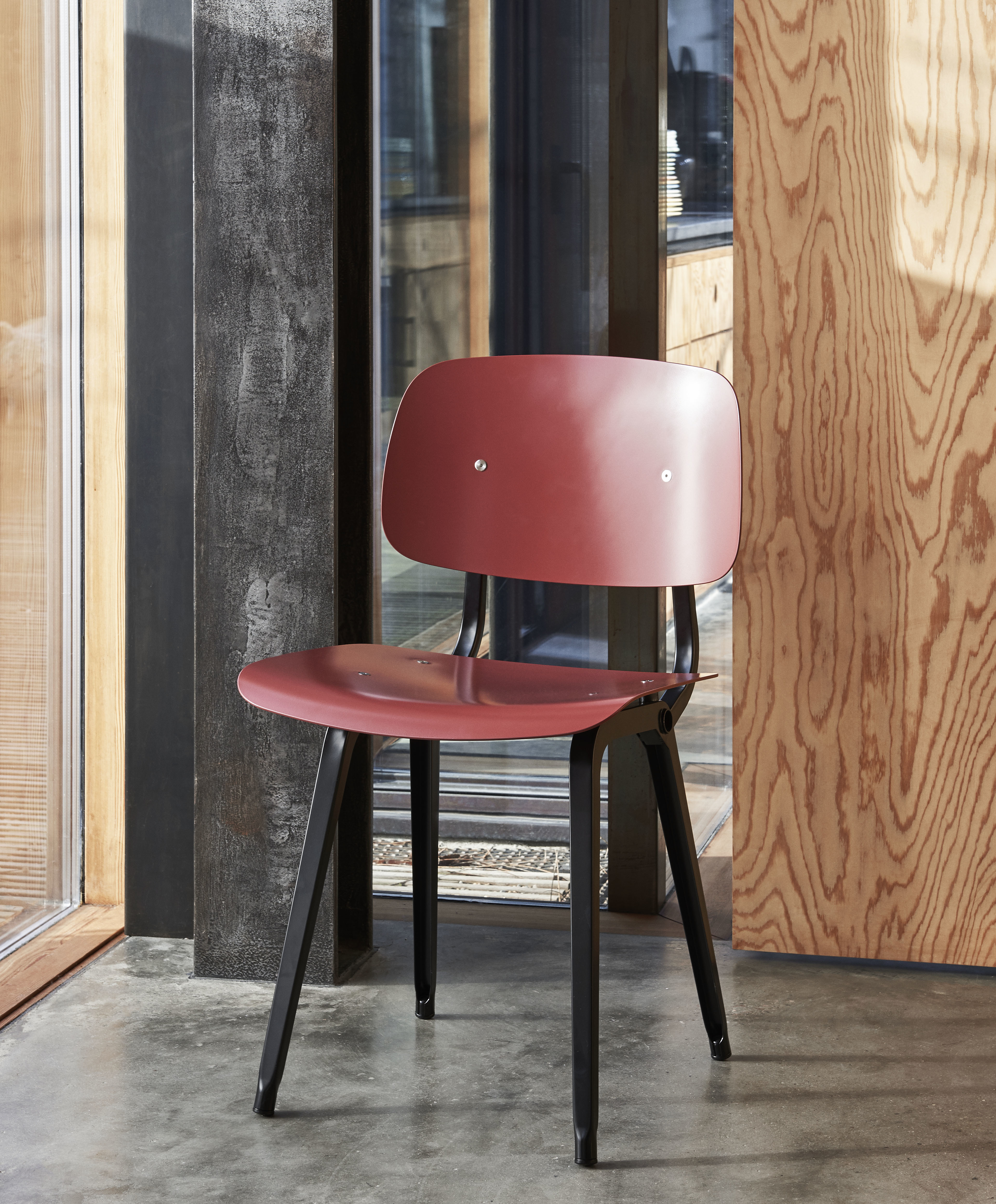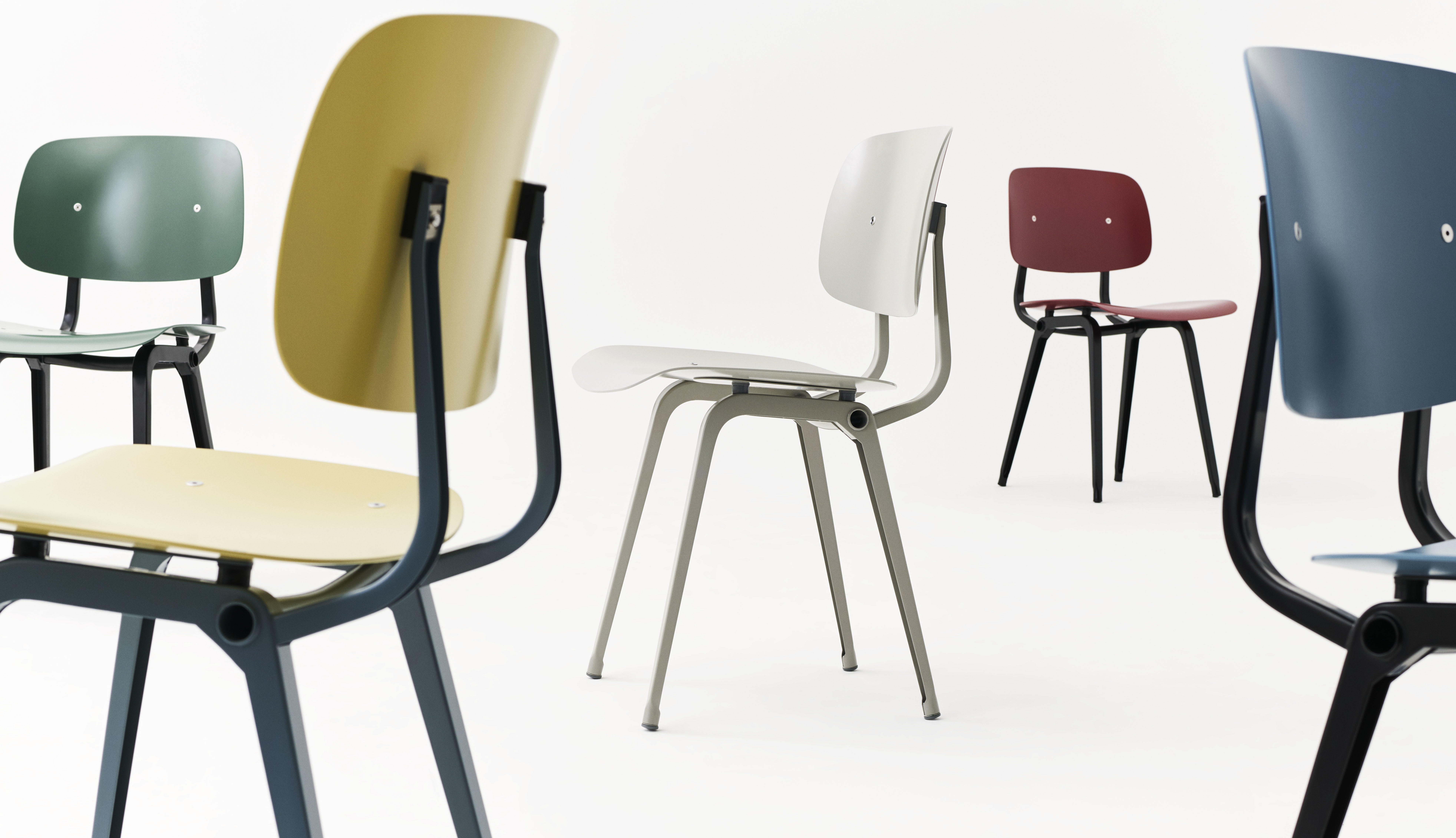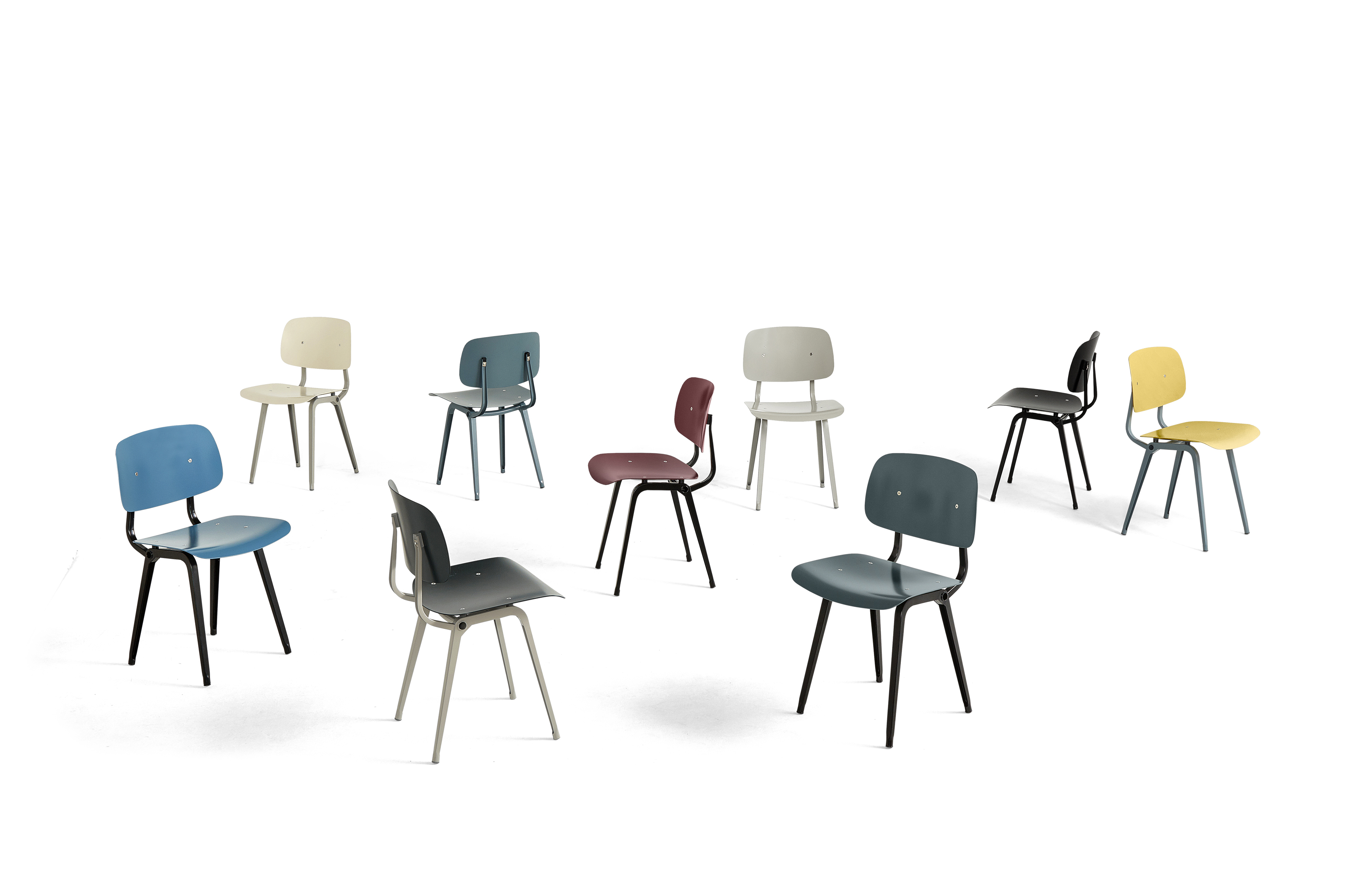 Revolt Chair, kterou původně vytvořil Friso Kramer během práce v Ahrendu v padesátých letech minulého století, společnost HAY znovu uvedla na trh společně s Ahrendem. Revolt Chair, jeden z nejslavnějších návrhů Friso Kramera, ztělesňuje jeho osobitý minimalistický styl; revoluční design a výběr materiálů, které místo tradičního trubkového rámu používají rám z ohýbaného ocelového plechu. Křeslo, které je dnes reprodukováno stejným způsobem, si zachovává funkčnost a odolnou konstrukci svého předchůdce v polovině století, ale v udržitelné volbě materiálu zahrnující směs recyklovaného a původního ABS v různých barevných variantách. Dynamická a flexibilní židle, ergonomický design společnosti Revolt se pohybuje spolu s uživatelem a nabízí aktivní podporu při práci, jídle nebo posezení na konferencích. Díky svému pohodlí, odolnosti a nadčasové estetice je vhodný pro použití v nejrůznějších soukromých, firemních nebo veřejných prostorách.