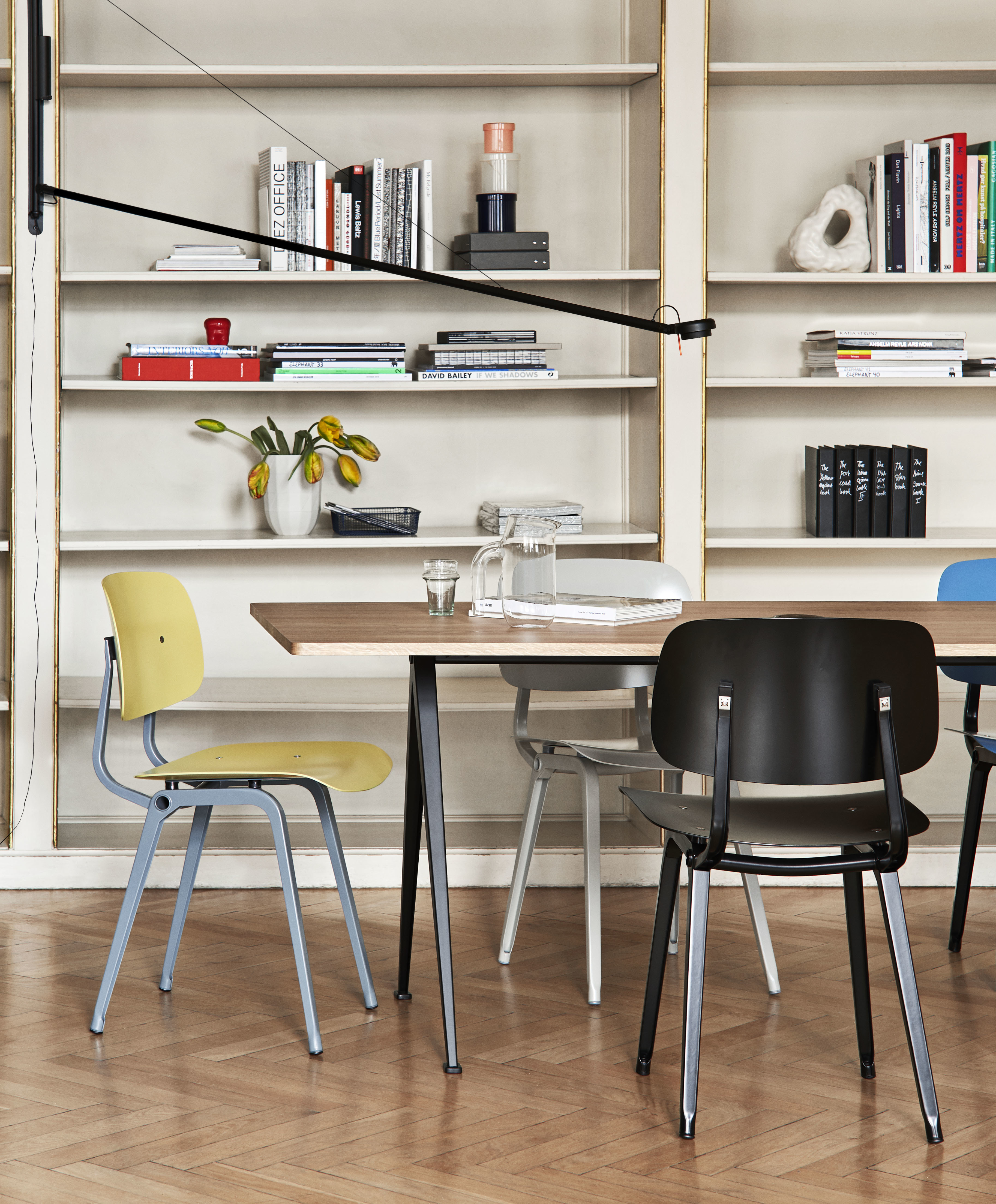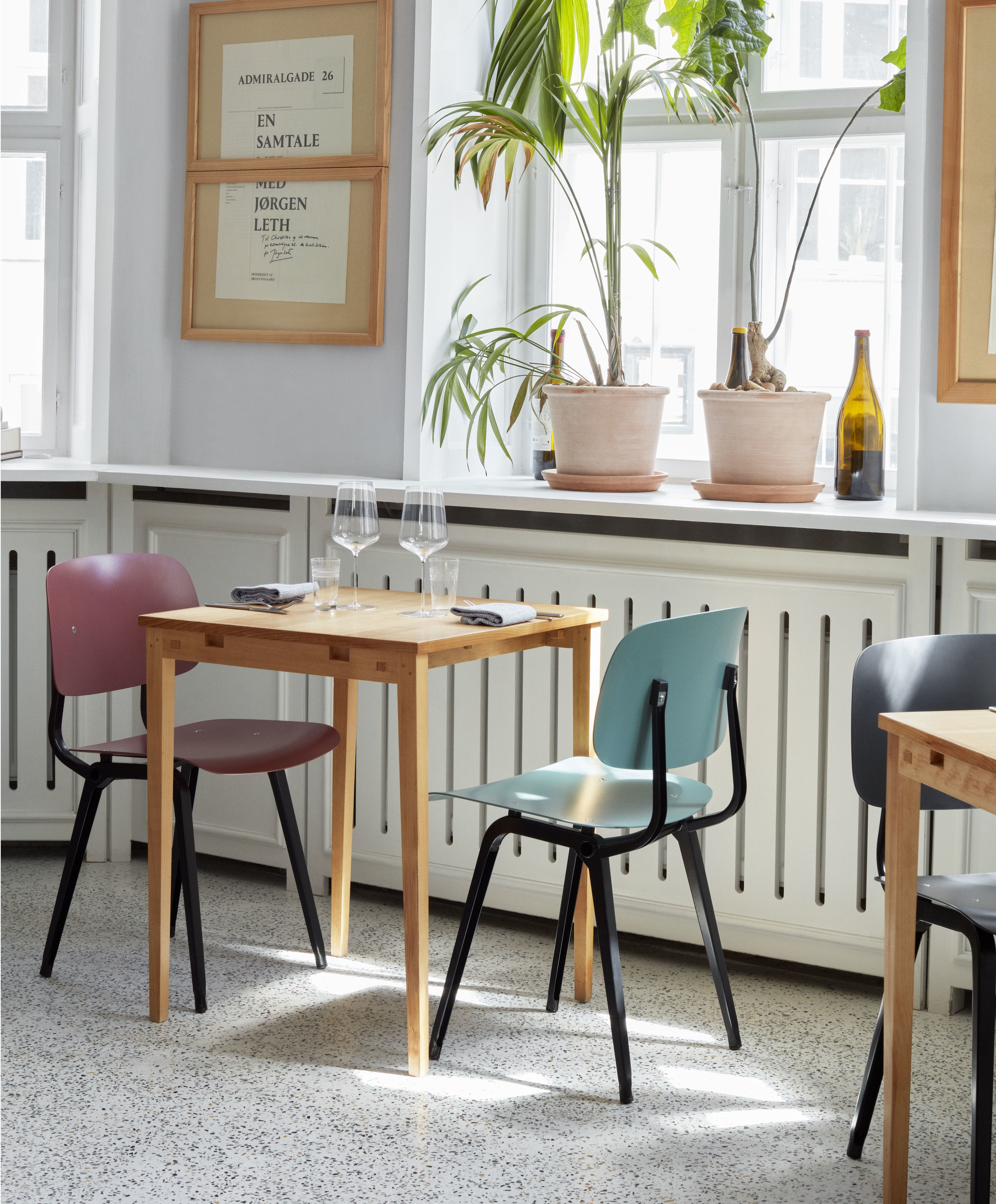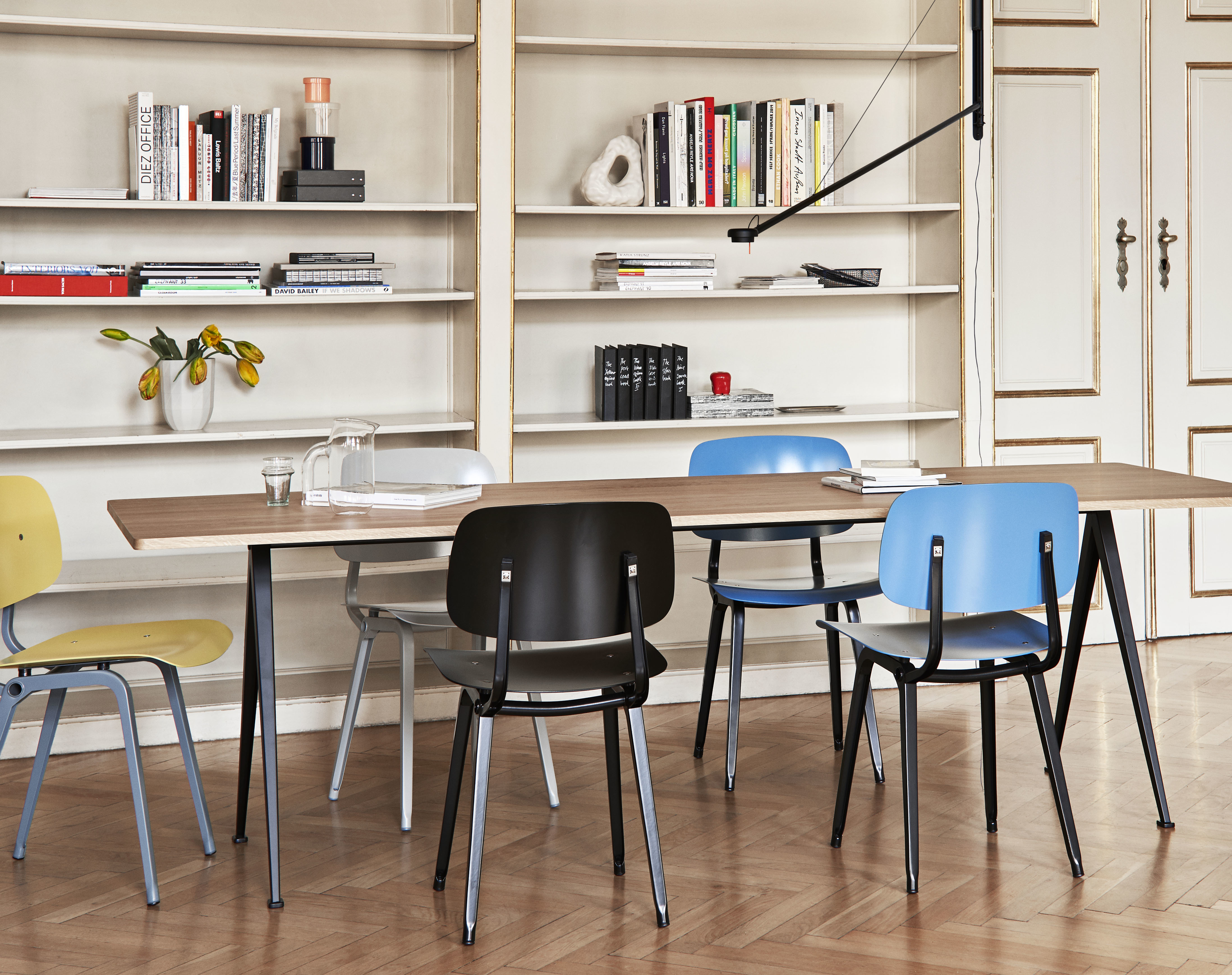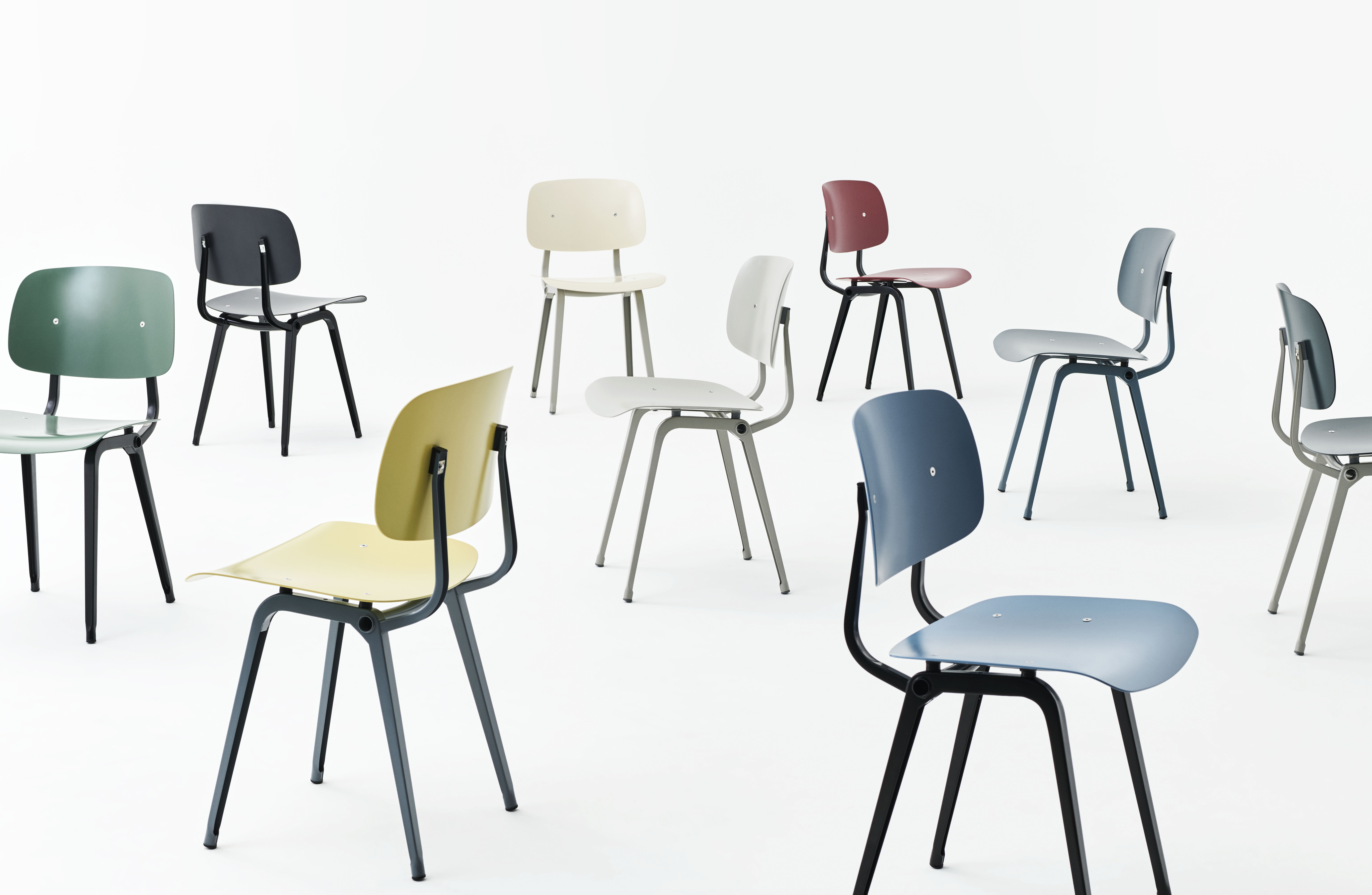 Revolt Chair, kterou původně vytvořil Friso Kramer během práce v Ahrendu v padesátých letech minulého století, společnost HAY znovu uvedla na trh společně s Ahrendem. Revolt Chair, jeden z nejslavnějších návrhů Friso Kramera, ztělesňuje jeho osobitý minimalistický styl; revoluční design a výběr materiálů, které místo tradičního trubkového rámu používají rám z ohýbaného ocelového plechu. Křeslo, které je dnes reprodukováno stejným způsobem, si zachovává funkčnost a odolnou konstrukci svého předchůdce v polovině století, ale v udržitelné volbě materiálu zahrnující směs recyklovaného a původního ABS v různých barevných variantách. Dynamická a flexibilní židle, ergonomický design společnosti Revolt se pohybuje spolu s uživatelem a nabízí aktivní podporu při práci, jídle nebo posezení na konferencích. Díky svému pohodlí, odolnosti a nadčasové estetice je vhodný pro použití v nejrůznějších soukromých, firemních nebo veřejných prostorách.