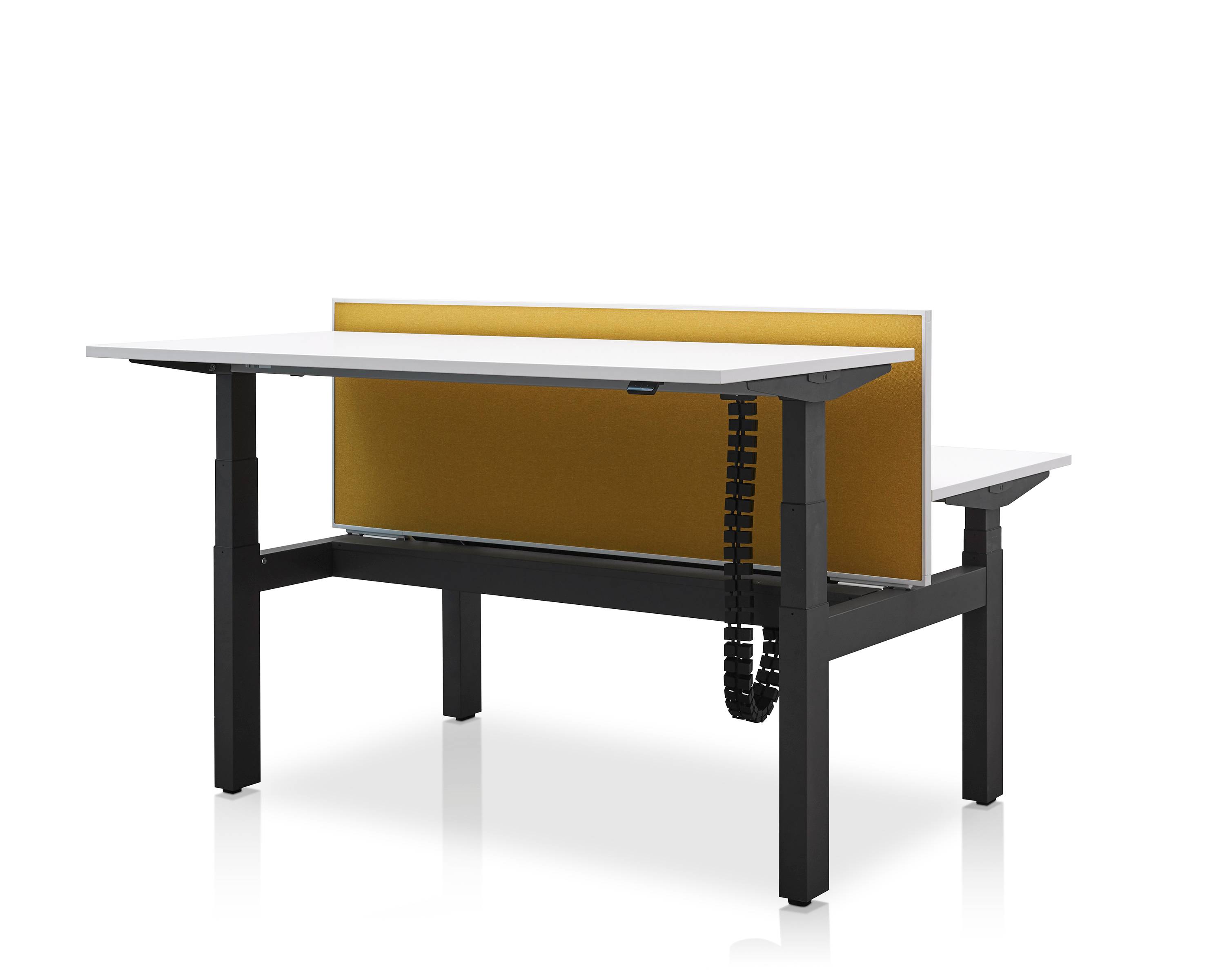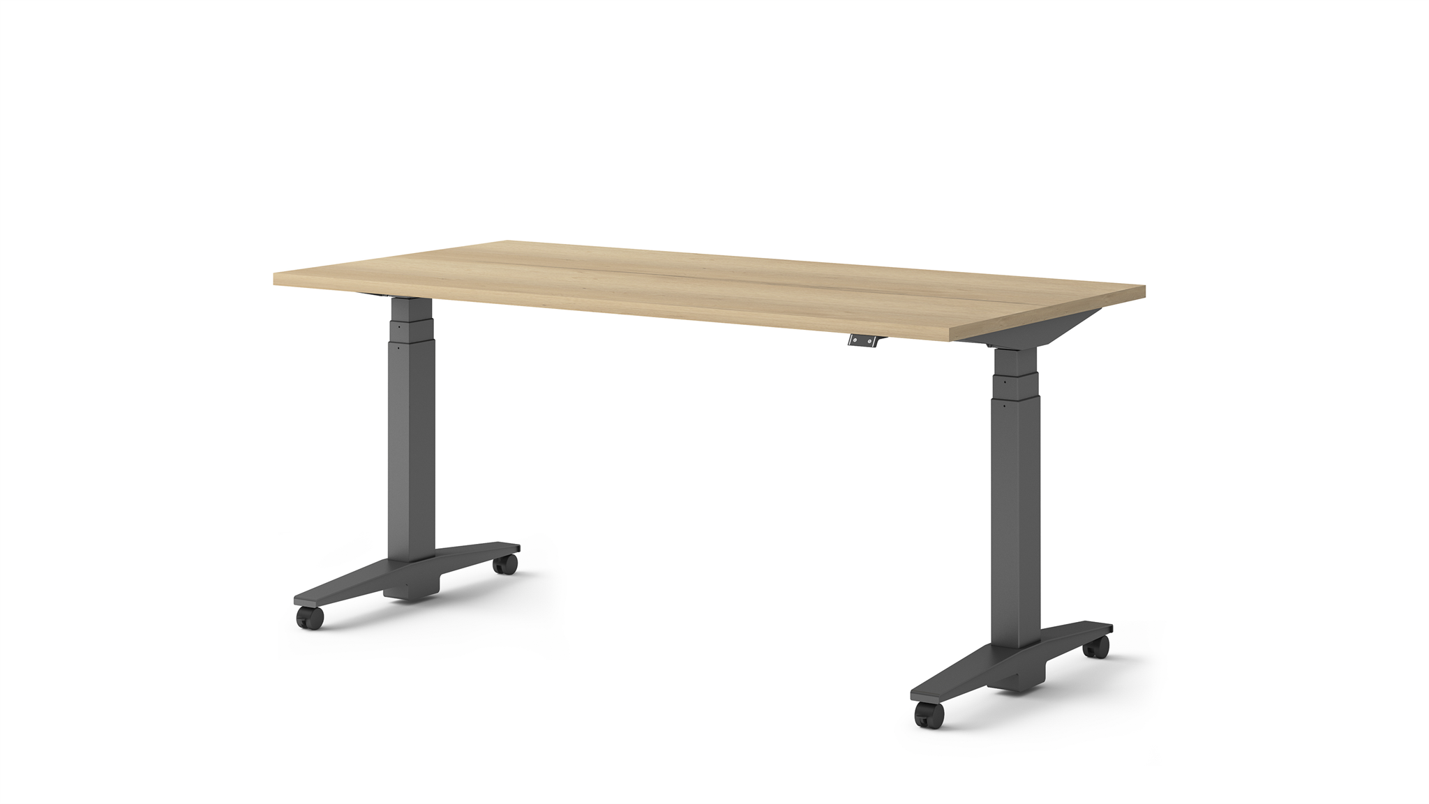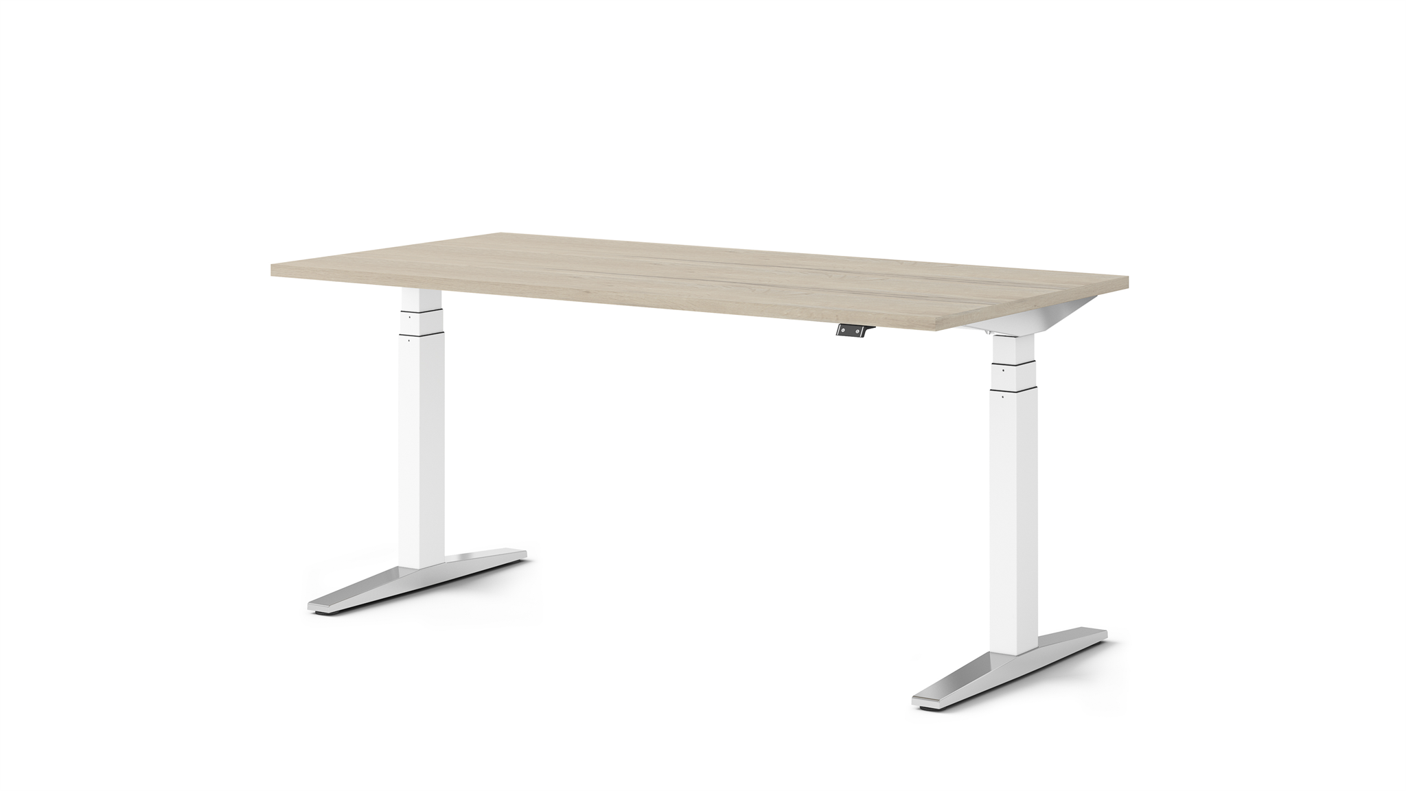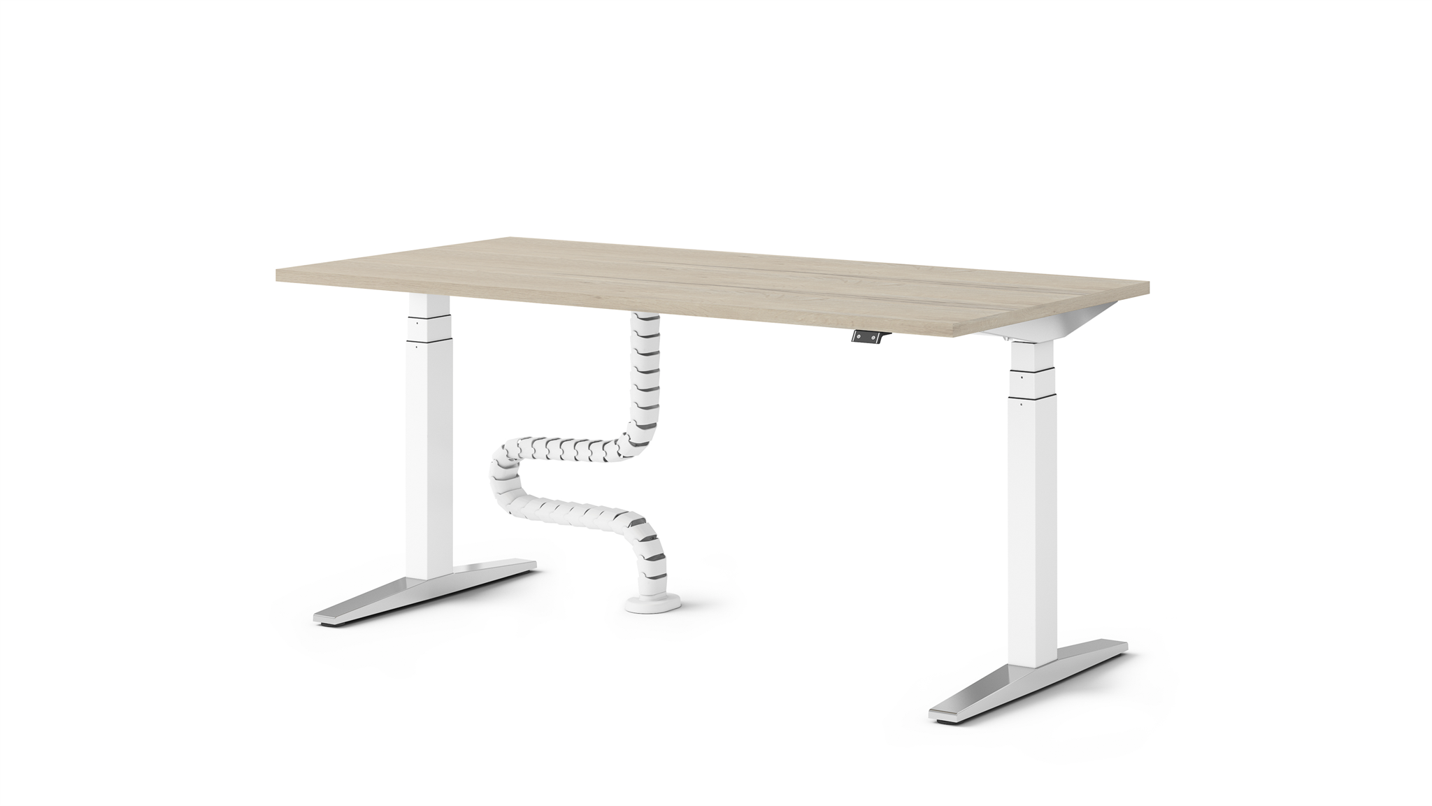 Pracovní stůl s nastavitelnou výškou umožňuje plynulý přechod mezi sezením a stáním, což dává možnost uživatelům měnit polohu těla podle jejich potřeb po celý den.