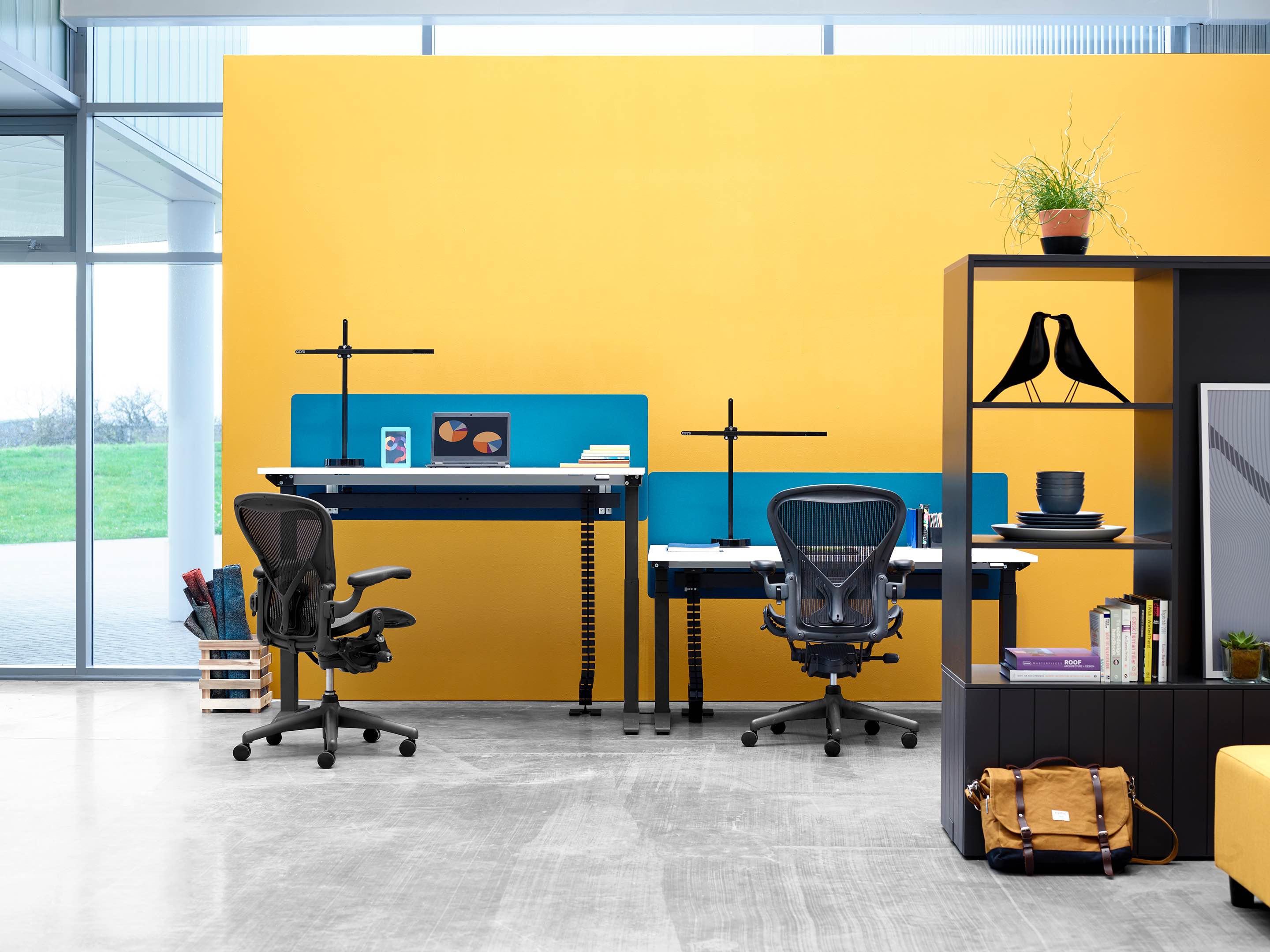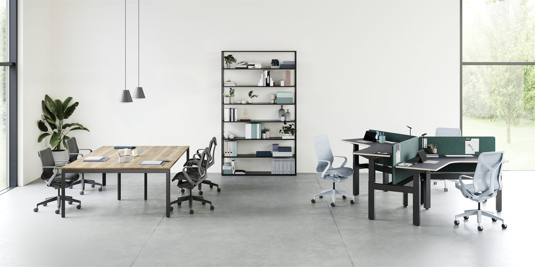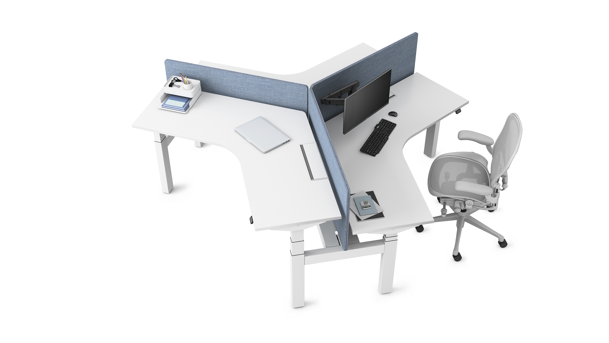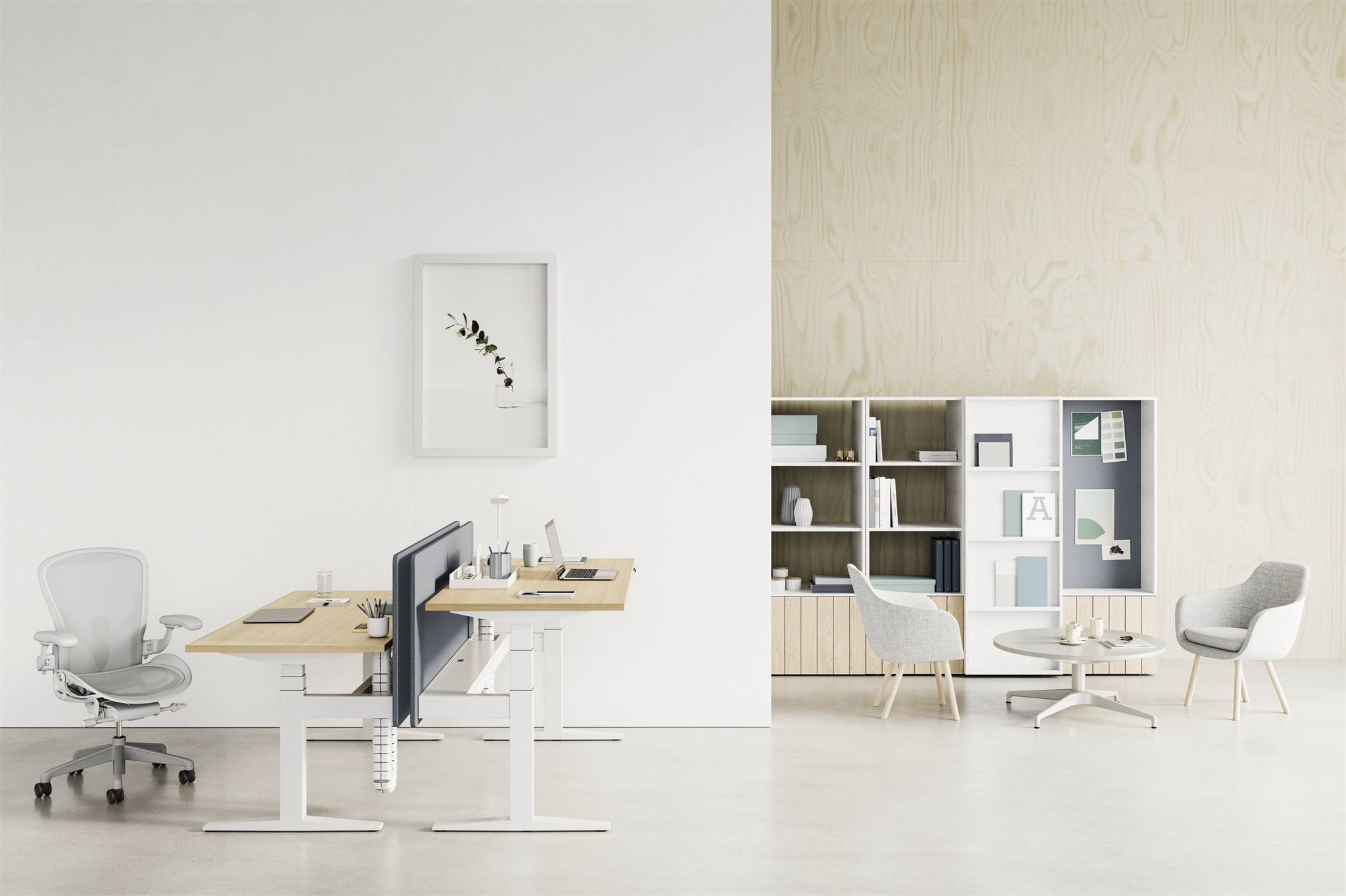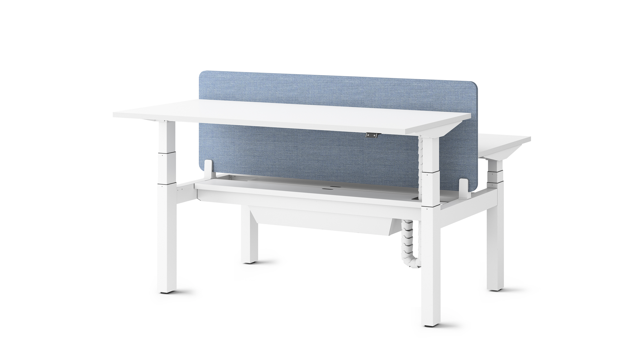 Pracovní stůl s nastavitelnou výškou umožňuje plynulý přechod mezi sezením a stáním, což dává možnost uživatelům měnit polohu těla podle jejich potřeb po celý den.