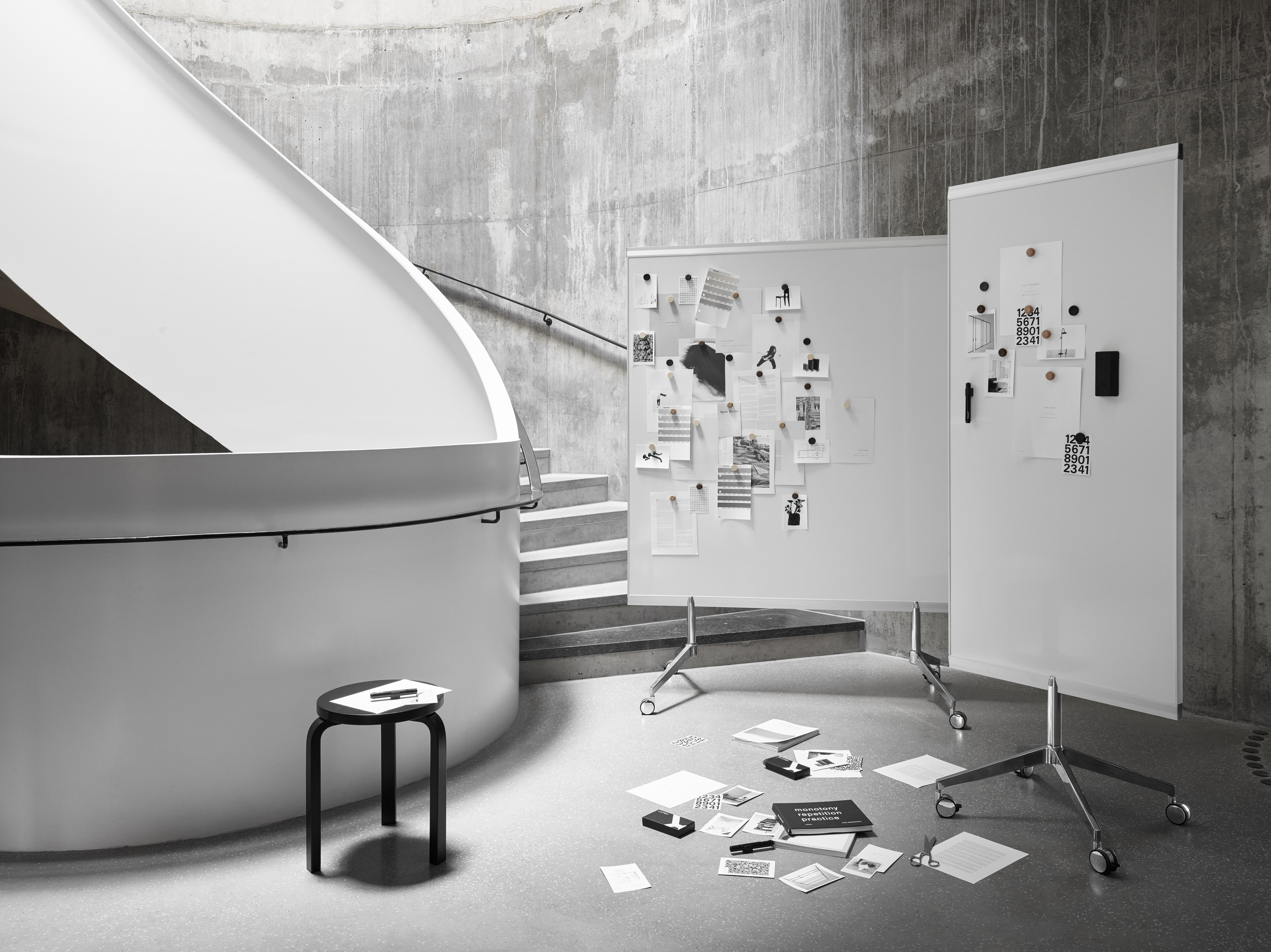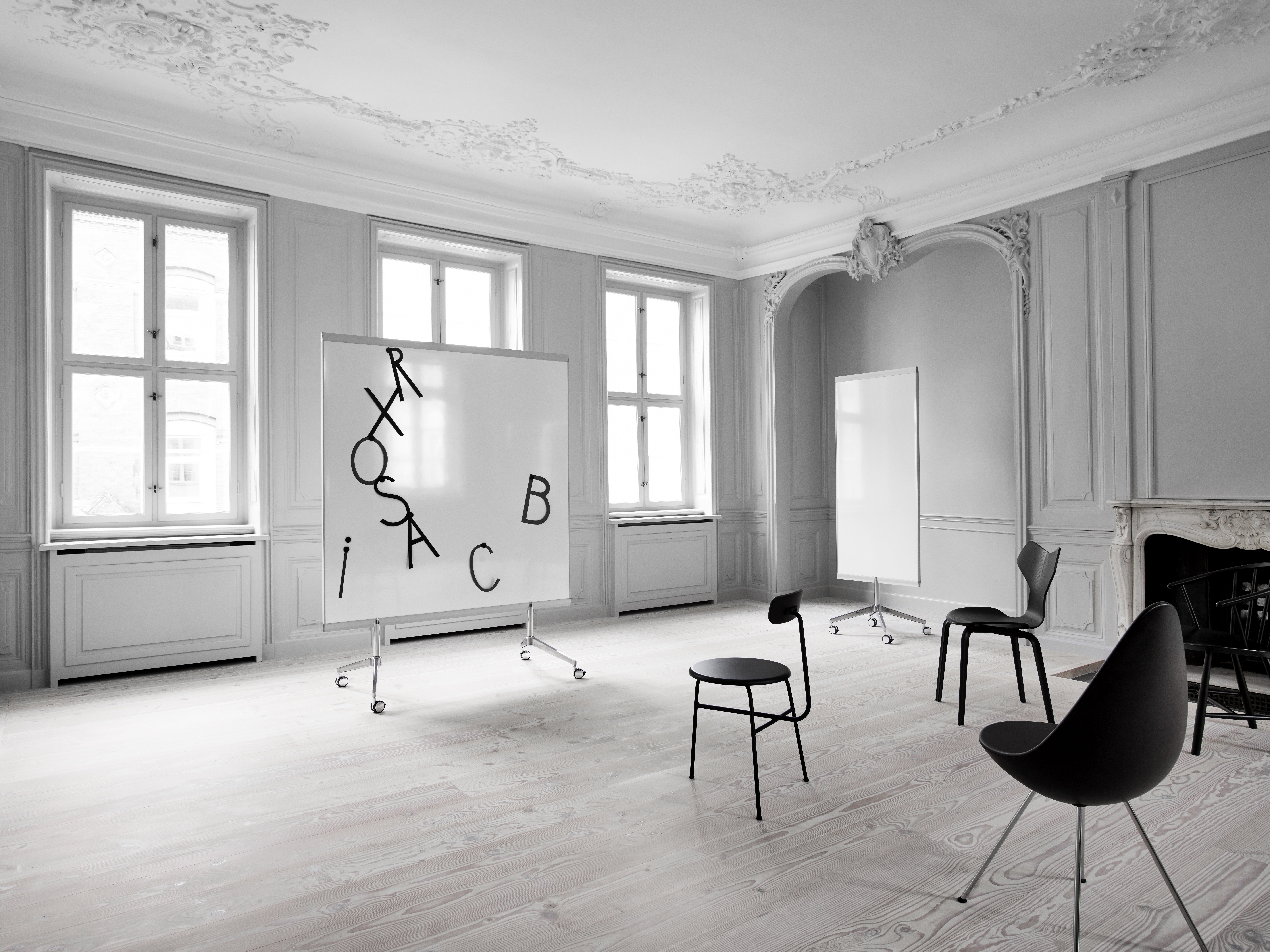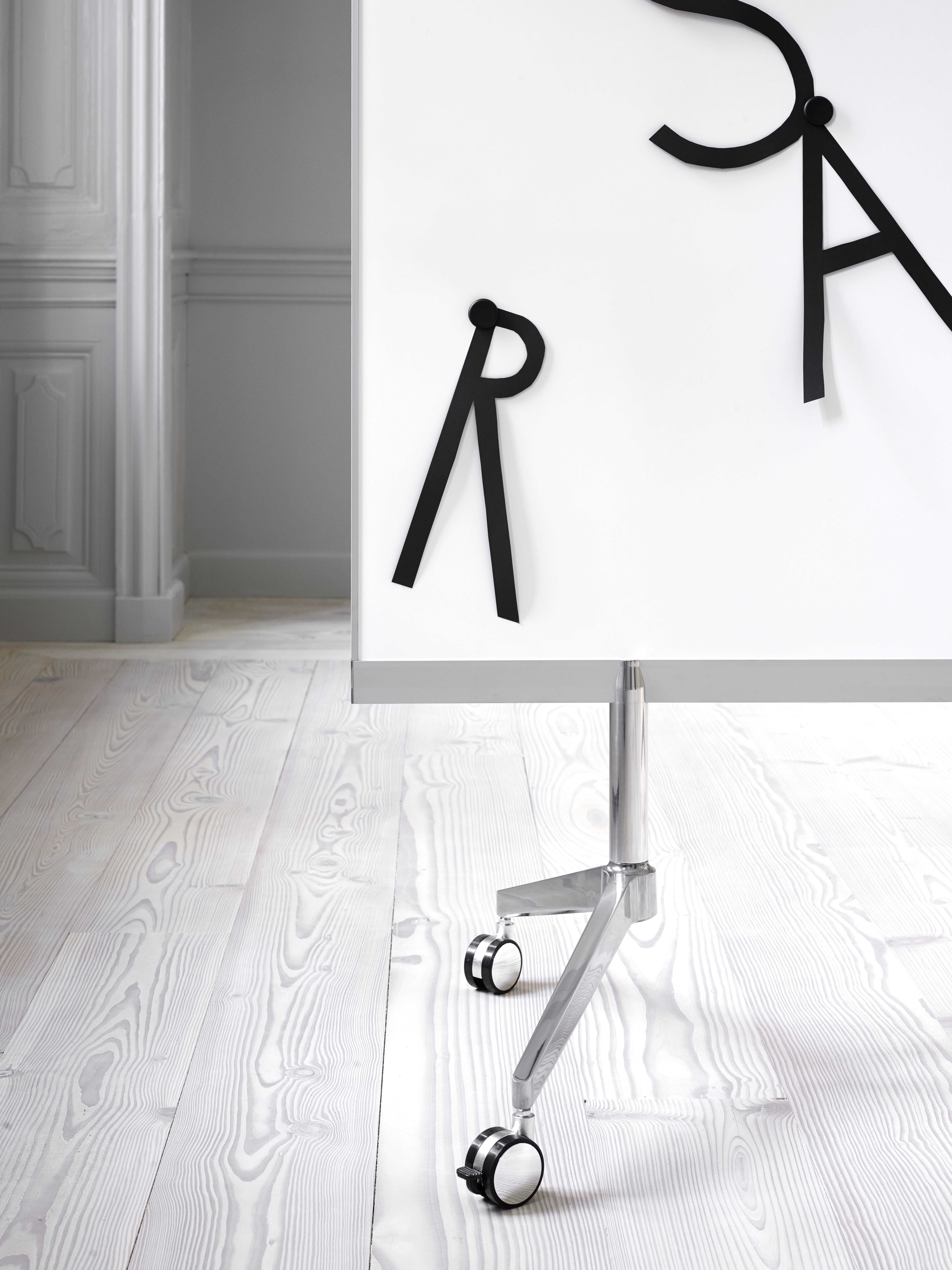M3 Mobile je oboustranná mobilní tabule s psacími plochami z magnetické keramické oceli. K dispozici ve dvou velikostech s rámem z eloxovaného hliníku. Leštěné hliníkové nohy se 4 kolečky, z nichž dvě zajišťují. Navrhl HALLEROED.