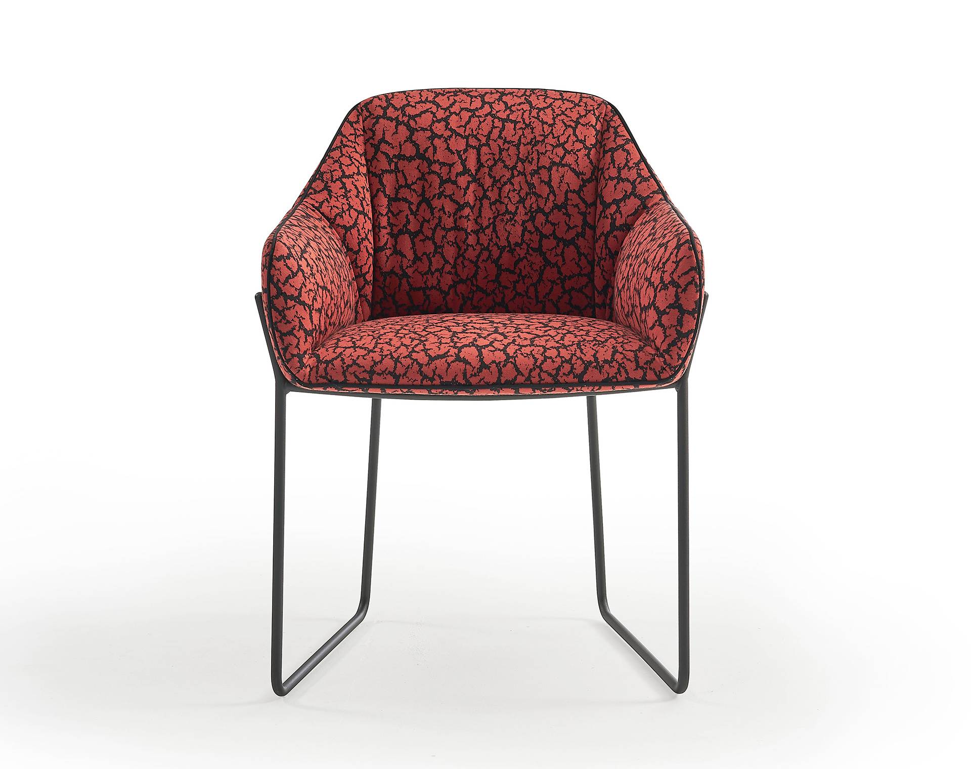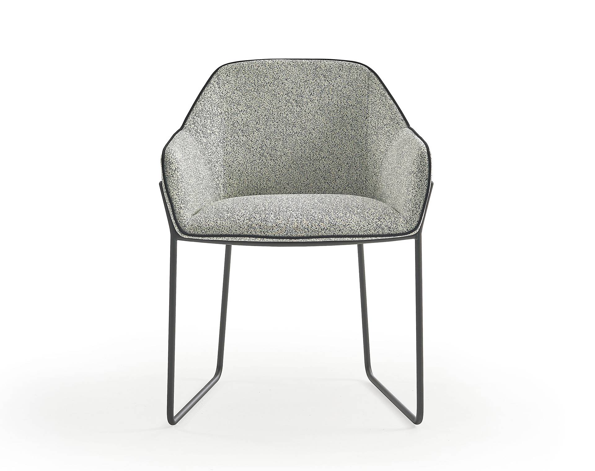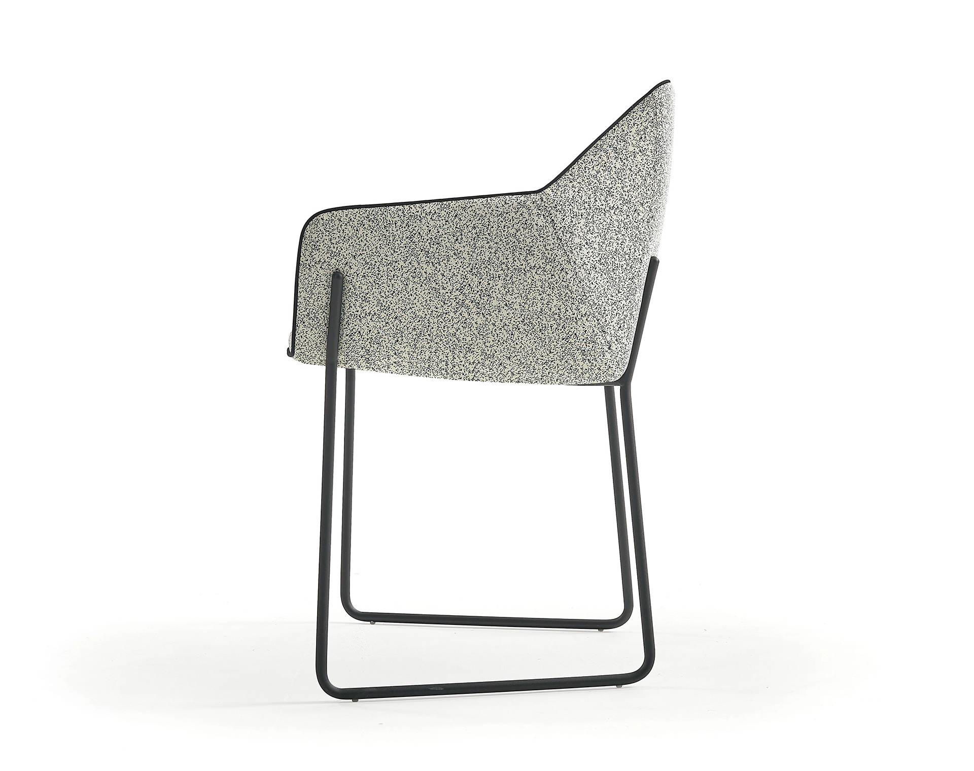Malé křeslo / židle NIDO, které našlo inspiraci ve tvaru ptačího křídla stojí na ručně upravené dřevěné podnoži z jasanového dřeva nebo na kovovém rámu v matném černém, šedém nebo hnědém provedení. Křesílko dále nabízí možnost vypnuté či nařasené látky na jeho sedáku a opěrce.