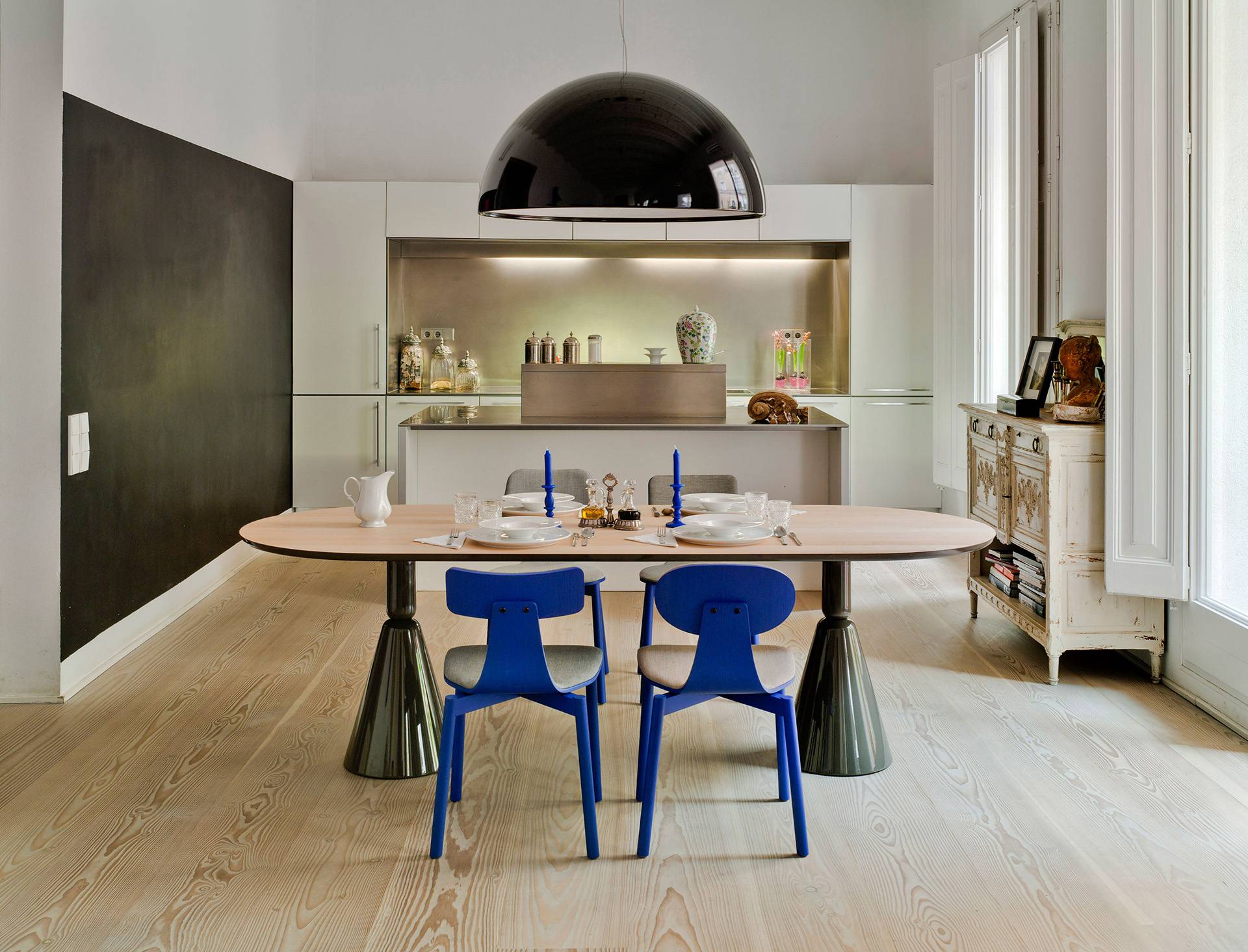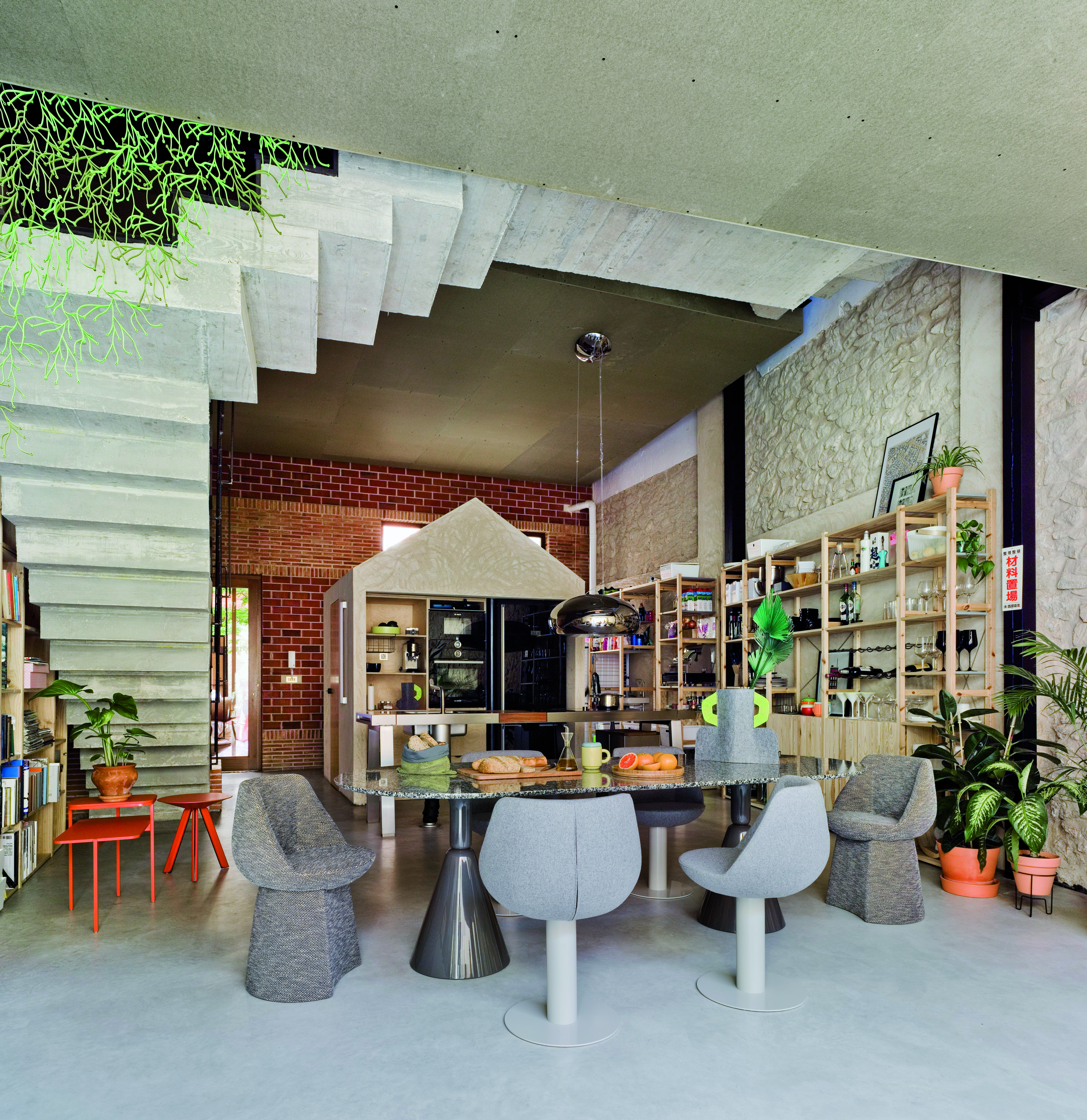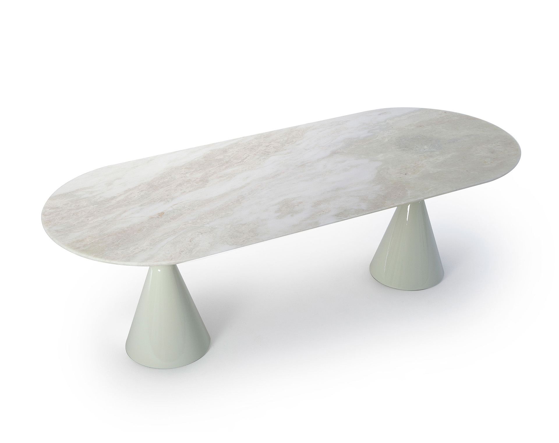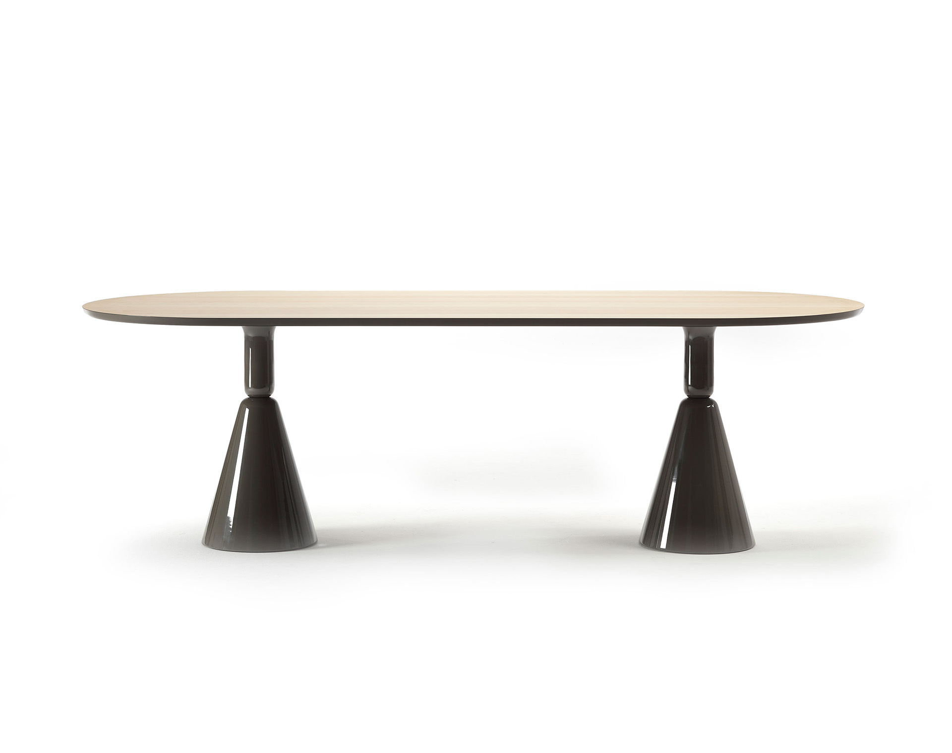 Královská rodina barevných stoliček a stolů inspirována šachovou sadou. Povrchová úprava čítá řadu možností: lakovaný podstavec s vysokým leskem lze kombinovat s přírodním křemencem, mramorem, dřevem nebo kůží.