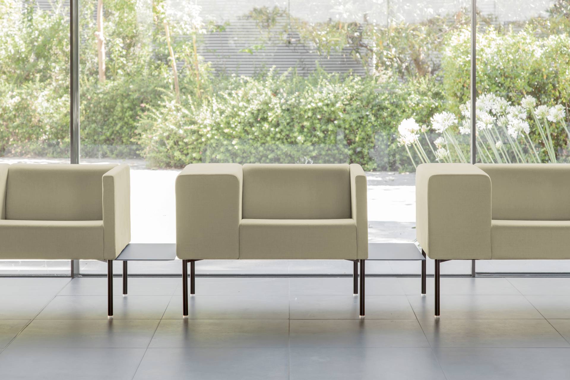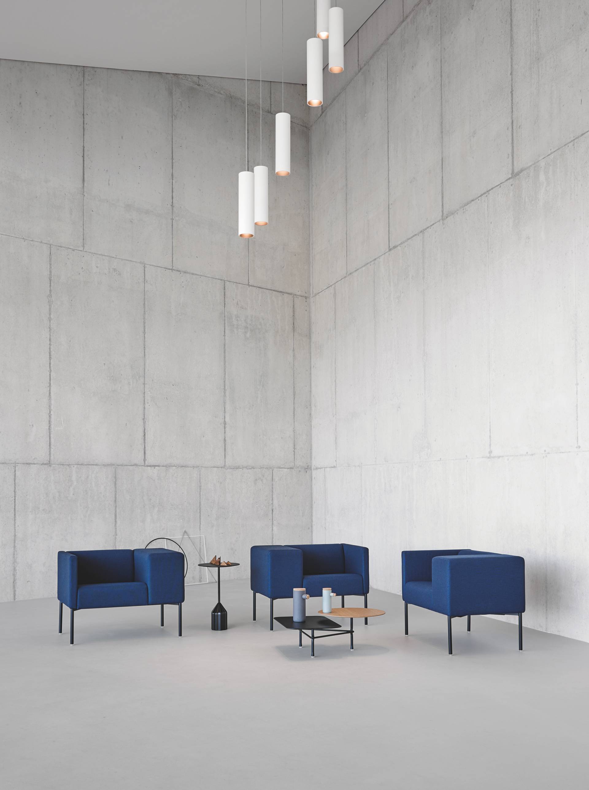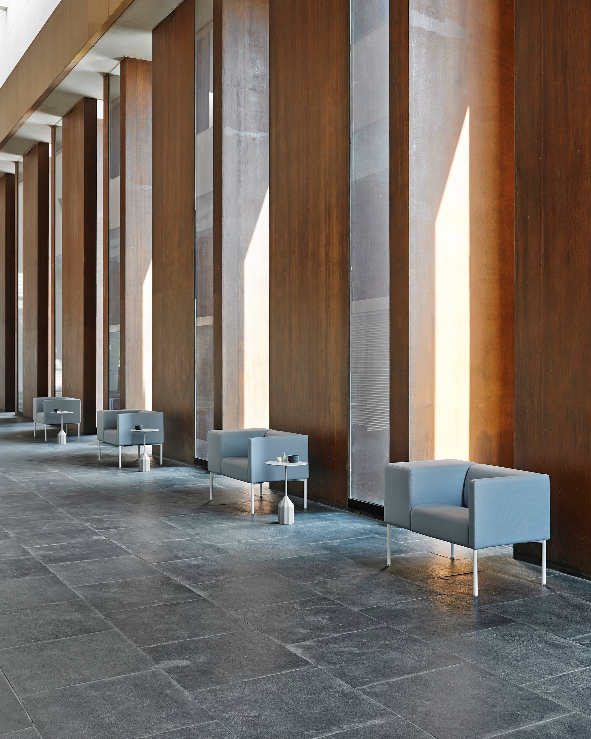 Díky geometrickému designu lze spojit více křesel dohromady a docílit tak elegantního uspořádání společných prostorů.