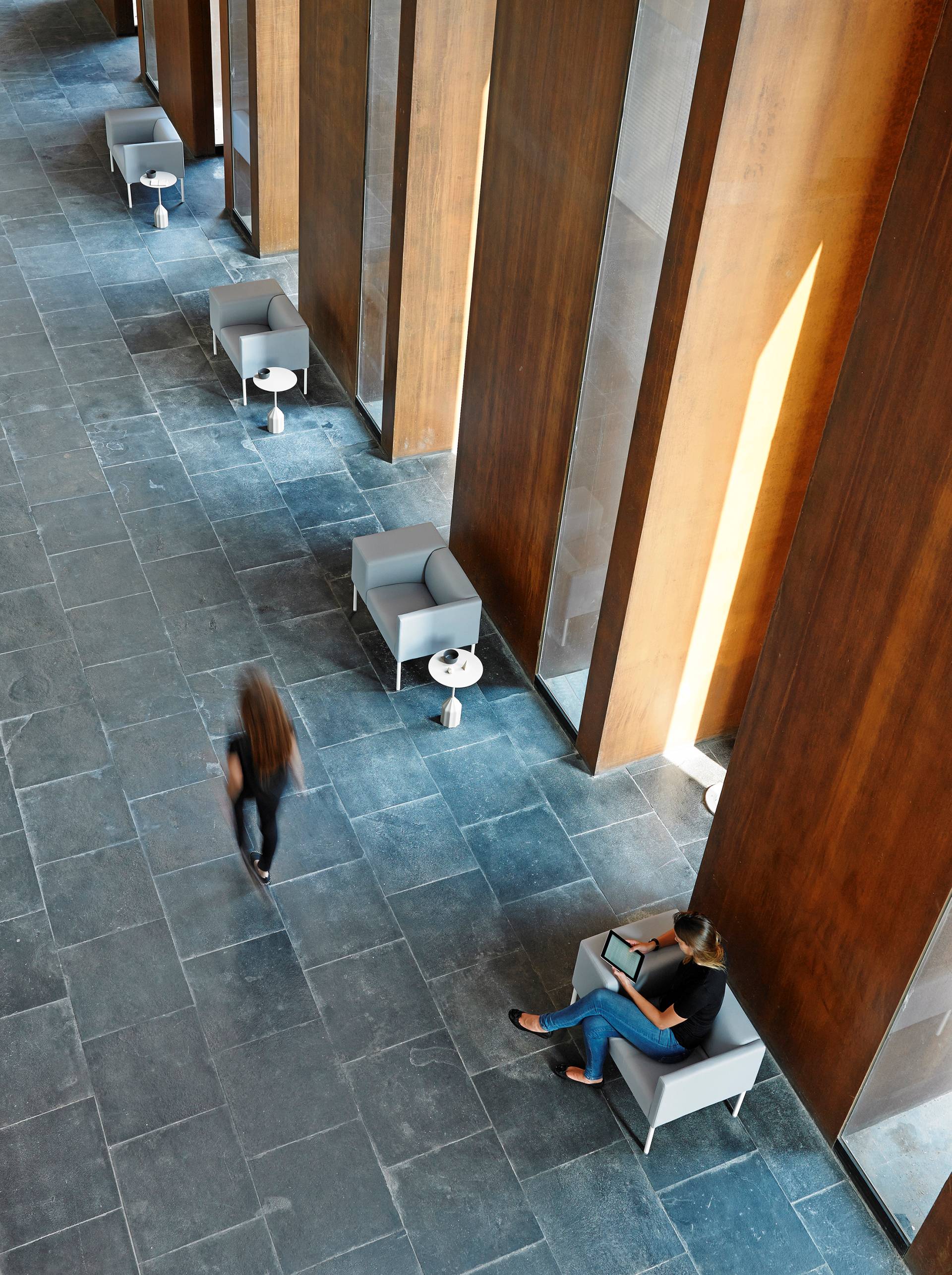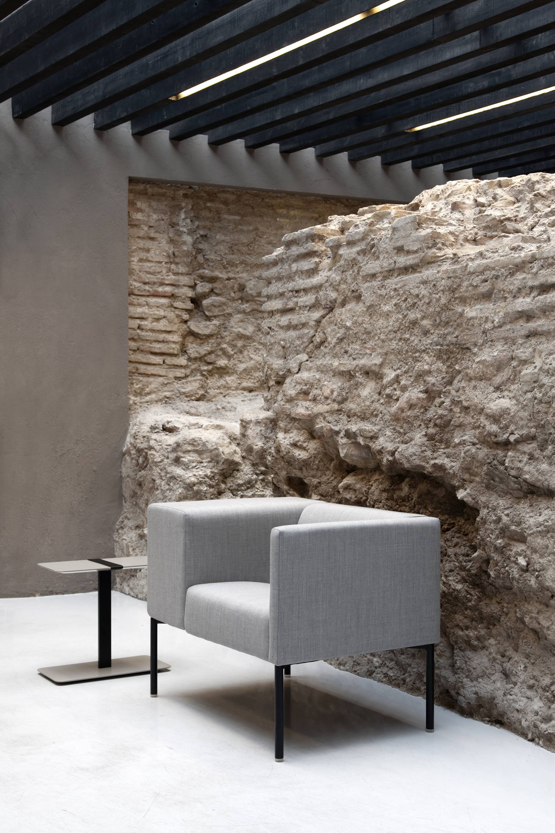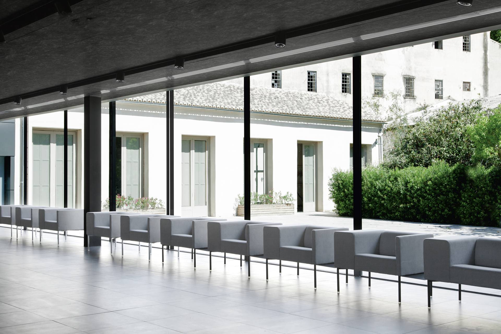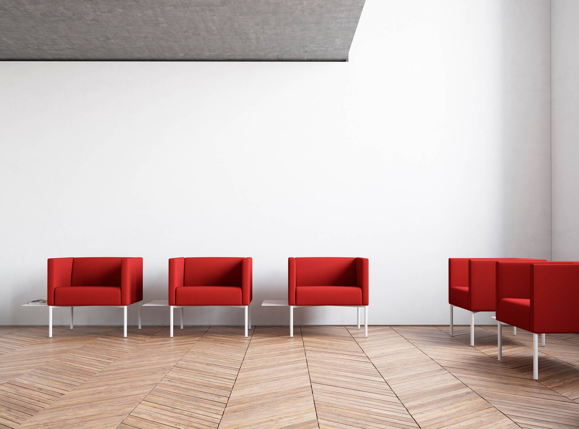 Díky geometrickému designu lze spojit více křesel dohromady a docílit tak elegantního uspořádání společných prostorů.