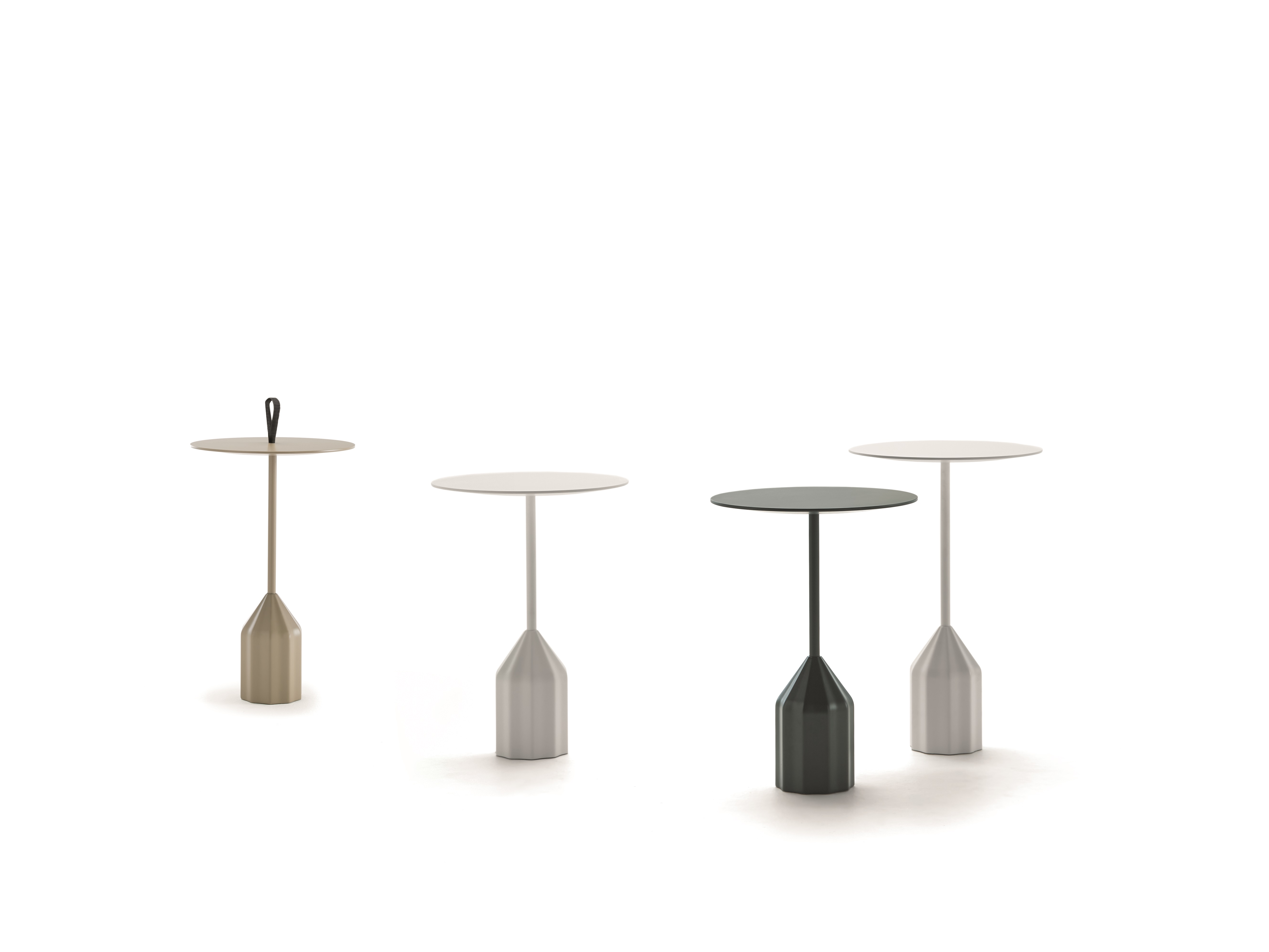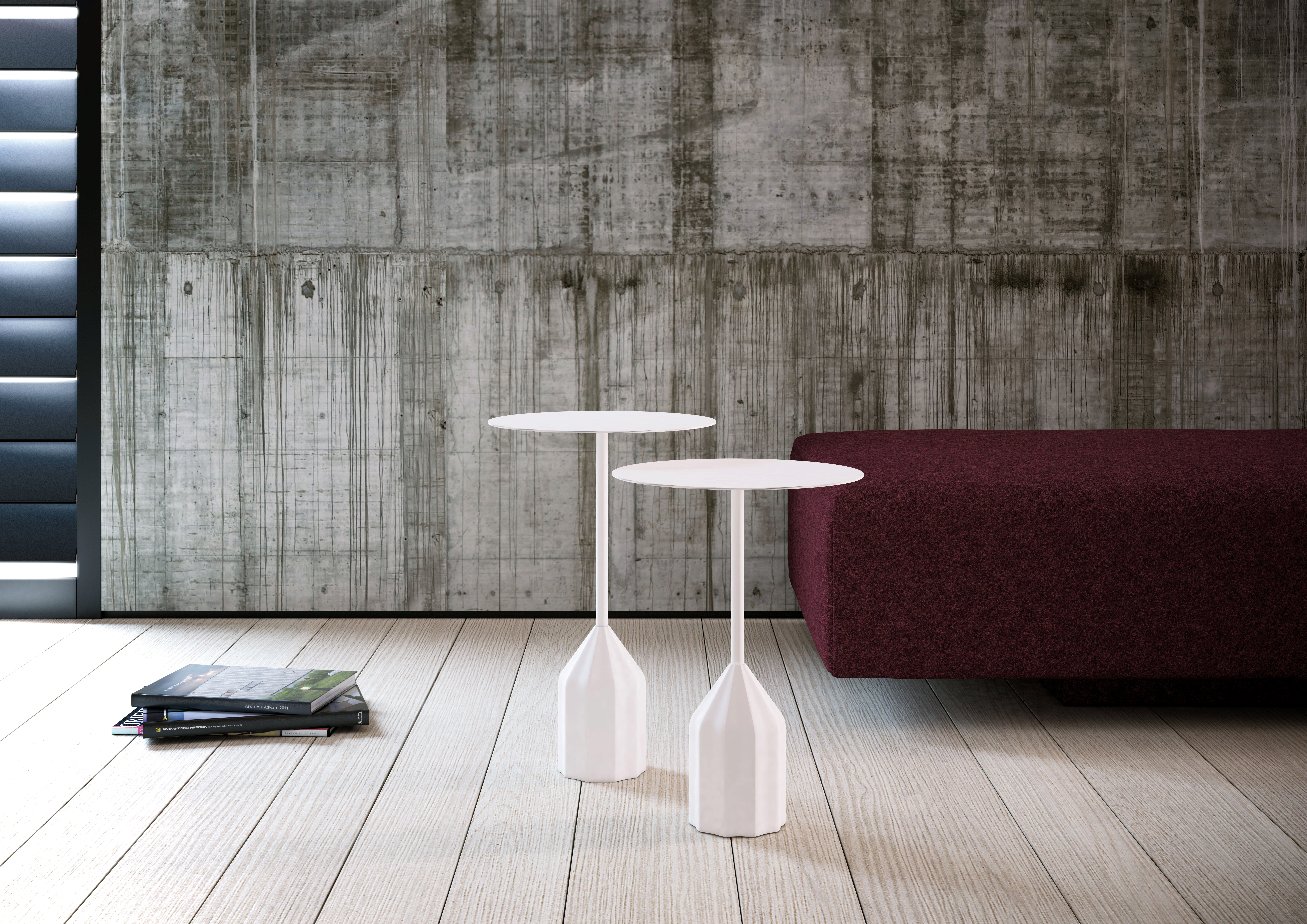 Výtvarně tvarovaný malý, příležitostný stolek je k dispozici ve dvou výškách a také s rukojetí pro přenášení nahoře. Díky svému výrazu je vhodný jak pro domácí, tak kancelářské použití.