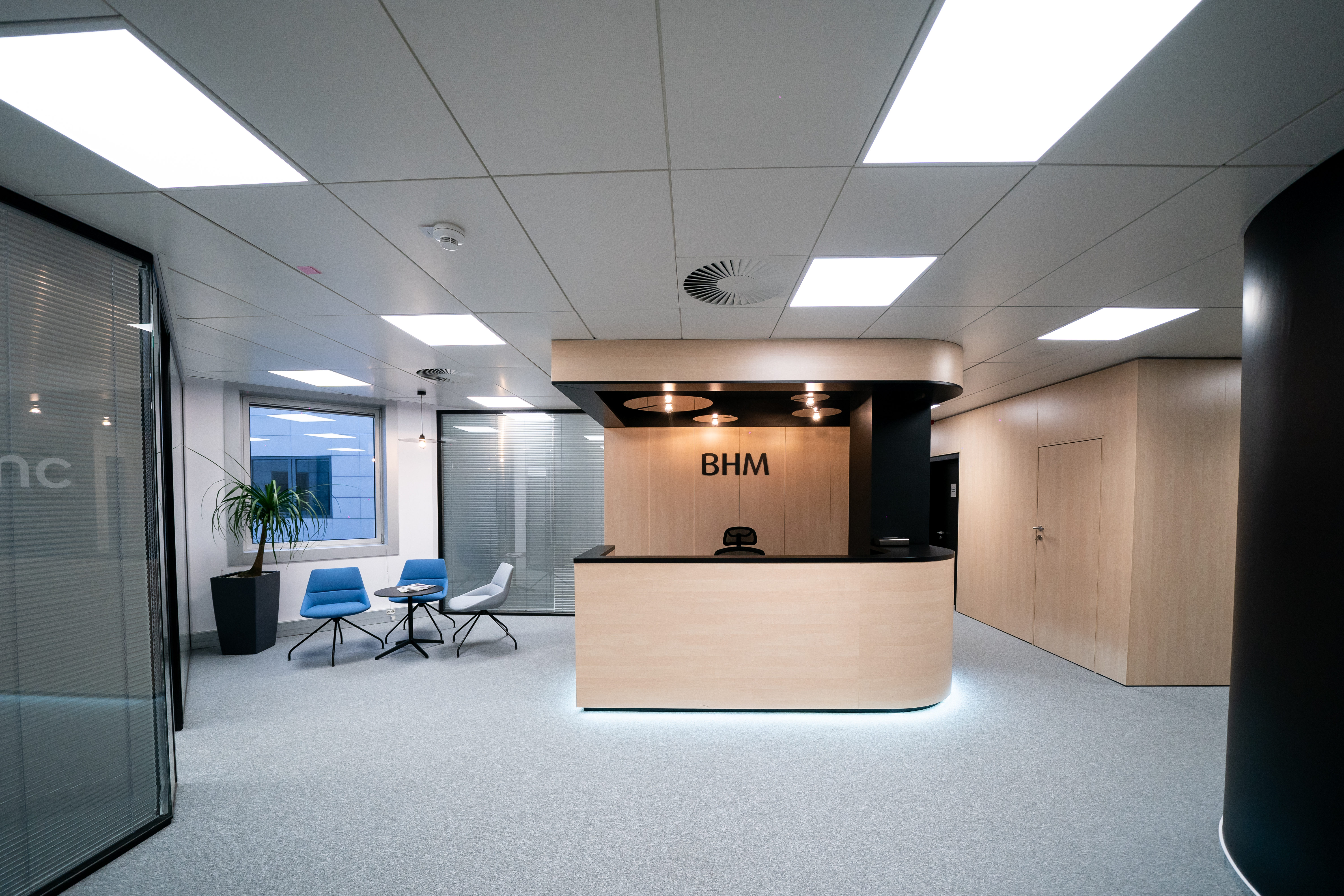 BHM group je soukromá investiční společnost založená a majoritně vlastněná Tomášem Krskem, který se dlouhodobě podílí na budování českého průmyslu a donedávna byl mimo jiné vlastníkem strojírenské skupiny Škoda Transportation. Nové sídlo společnosti v Praze na Starém Městě jsme pomáhali vybavit stoly od Hermana Millera, židlemi a barovkami od společnosti Enea a doplňky od Made Design a Muuto.