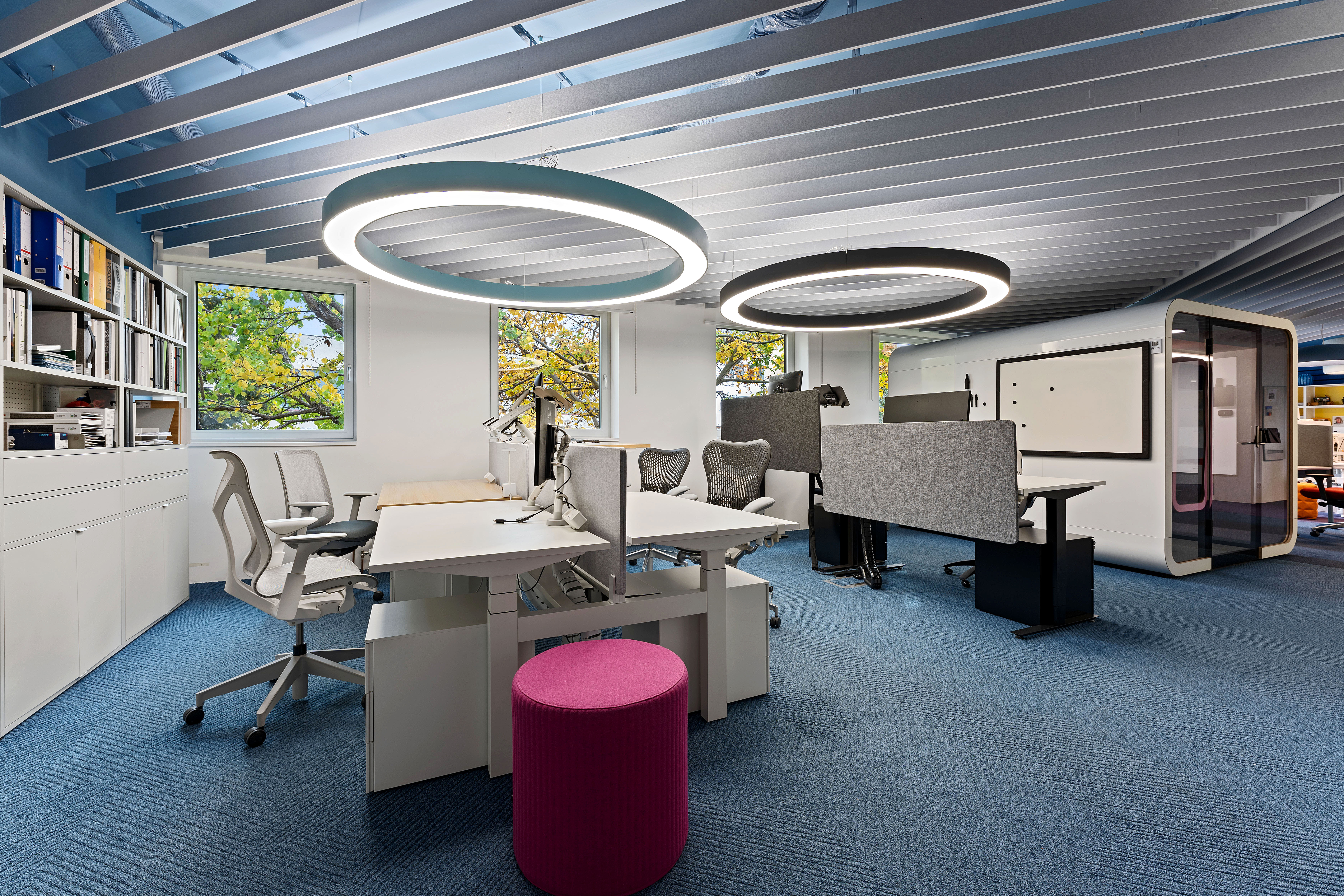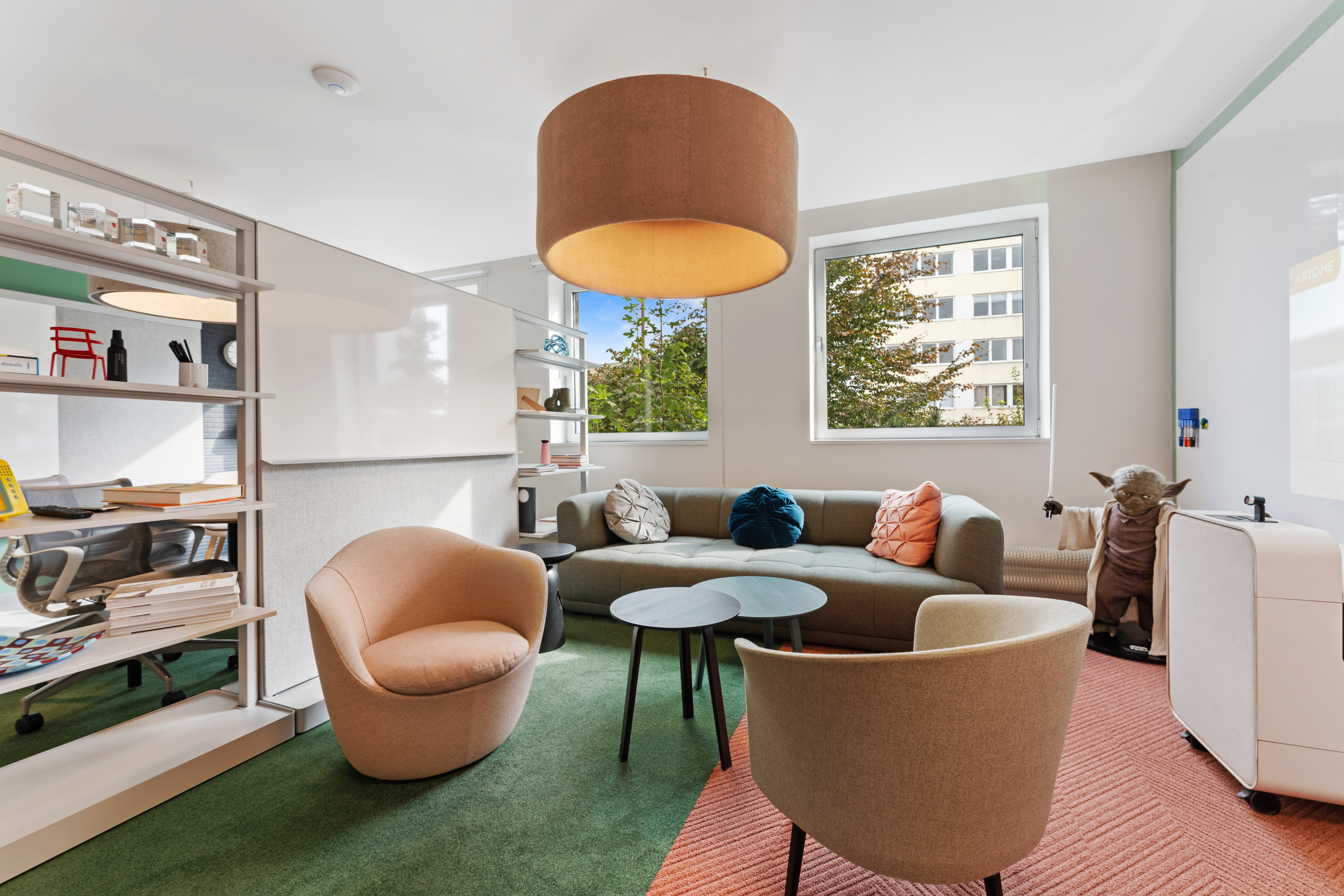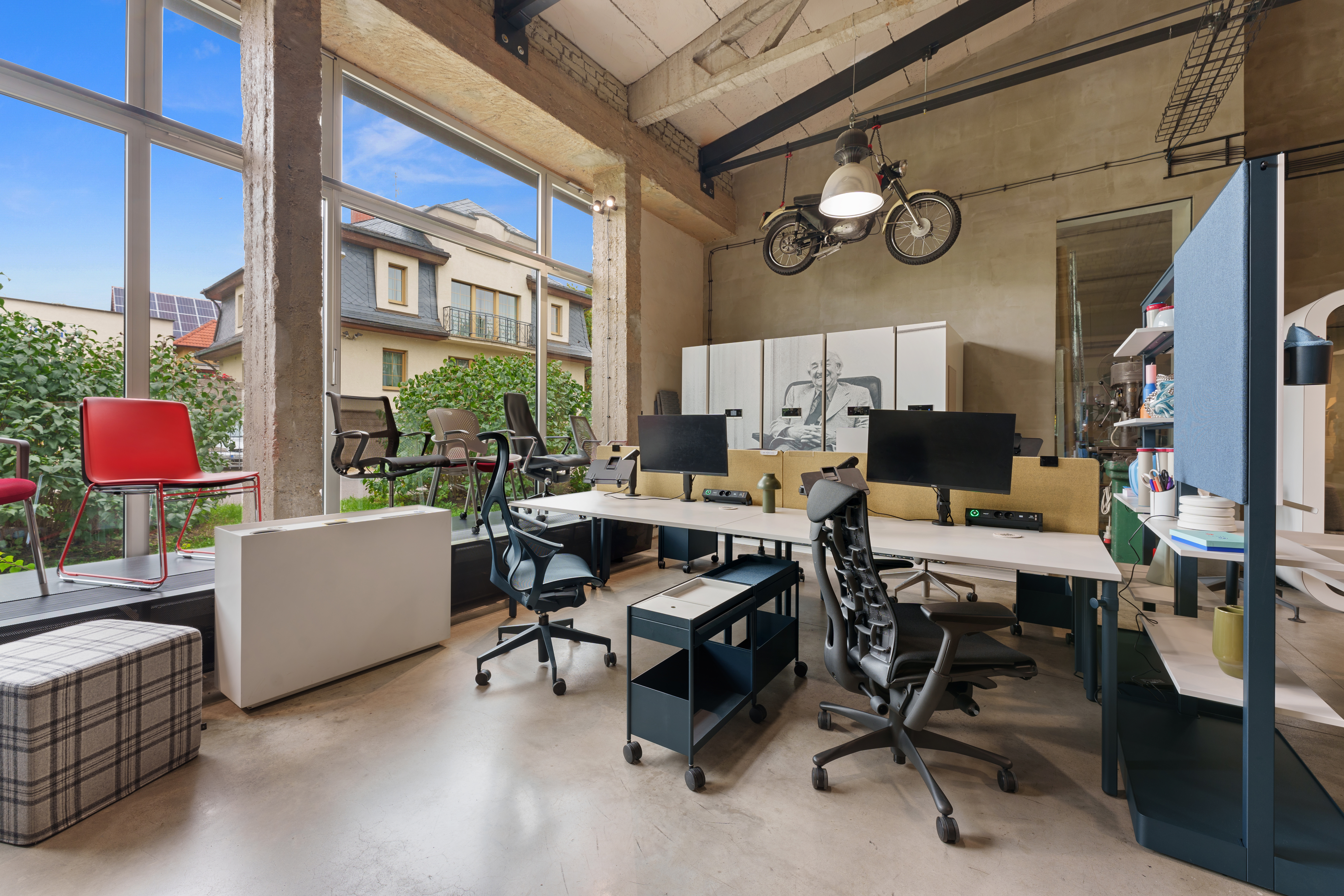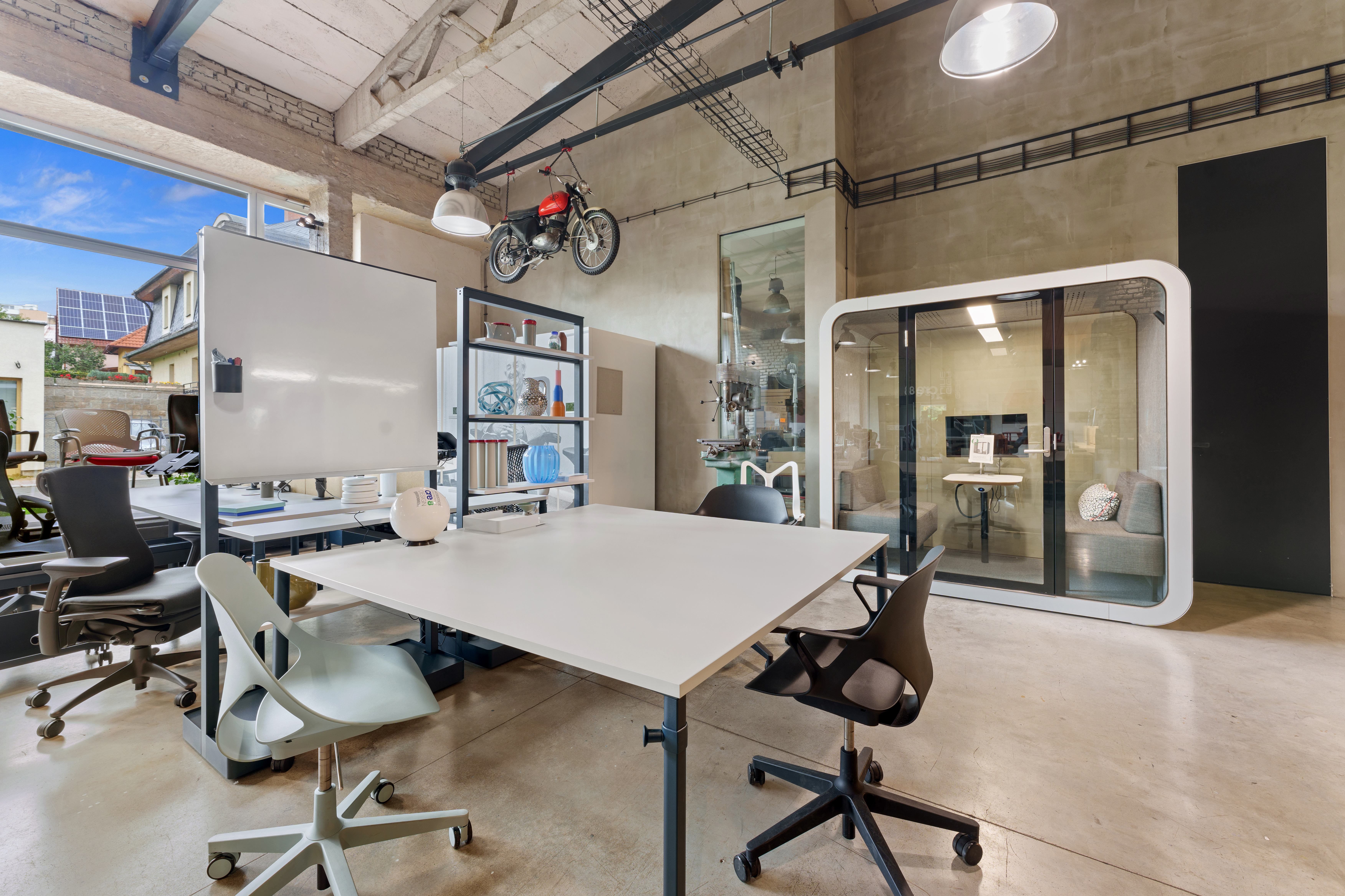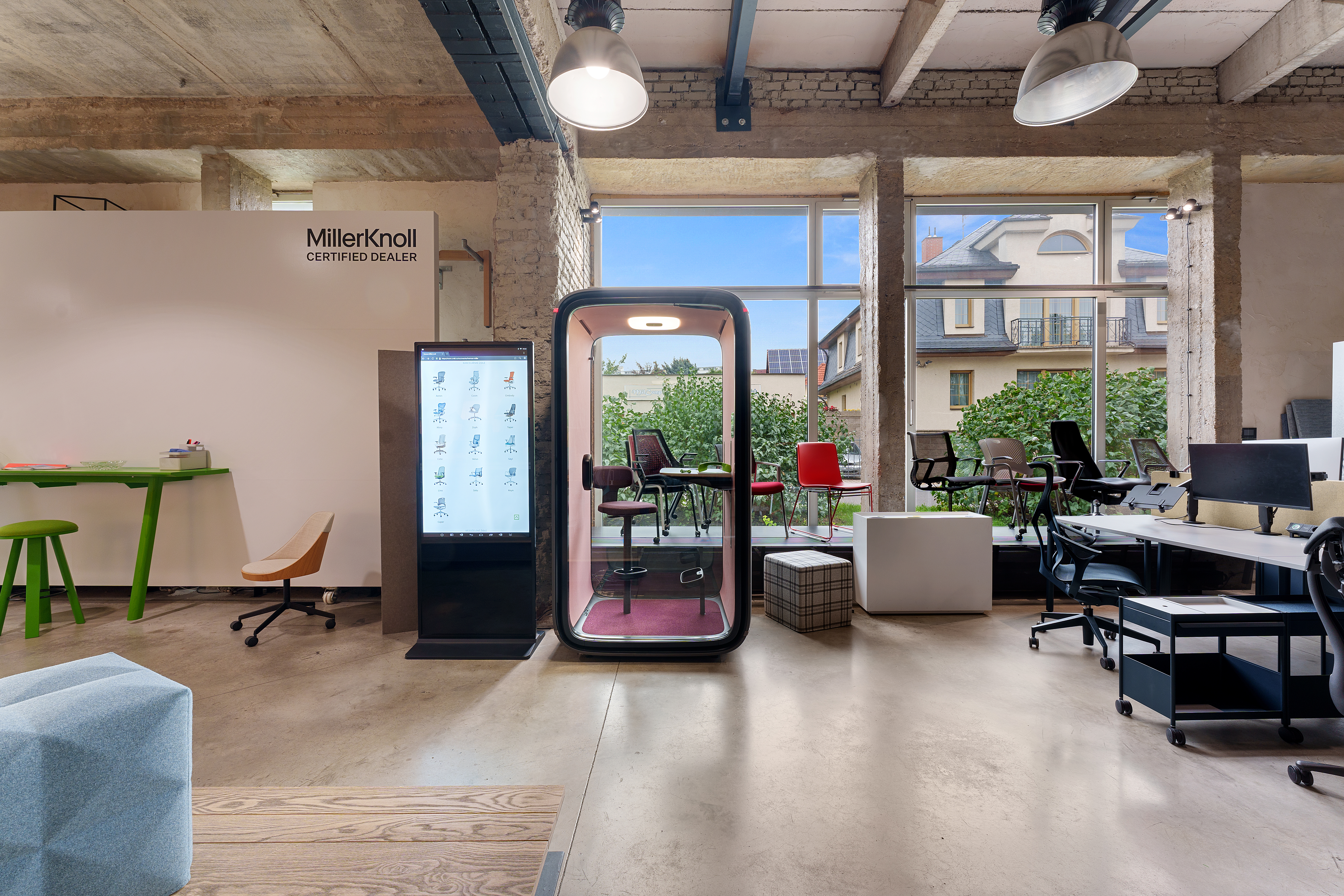 Po sloučení legendárních značek HermanMiller a Knoll pod jednu značku MillerKnoll došlo také k výraznému rozšíření portfolia nabízených produktů. Proto jsme se i my rozhodli rozšířit a zrenovovat prostory našeho showroomu, abychom mohli tuto bohatou nabídku našim klientům prezentovat. A co je u nás nového? Ačkoli na první pohled může vypadat interiér velmi podobně, nenechte se mýlit. Nová je prezentace produktů Knoll, včetně outdoor nábytku, který má své místo na nově vybudované venkovní terase. Díky rozšíření vnitřních prostor můžete u nás vyzkoušet největší akustickou budku 2Q od Framery. Kompletně jsme předělali zasedací místnost, kde je kromě mnoha nových produktů od HermanMiller a jiných značek k vidění i legendární křeslo Barcelona. Velmi pestrá a komplexní je prezentace akustiky - včetně obkladů, akustického řešení stropů, akustických dělících nebo solitérních prvků a podobně. Novinkou jsou u nás také praktické mobilní dělící stěny nebo lehce přestavitelné modulární dělící příčky MAARS s možností kombinace panelových výplní. A je toho mnohem víc! Těšíme se na Vaši návštěvu.