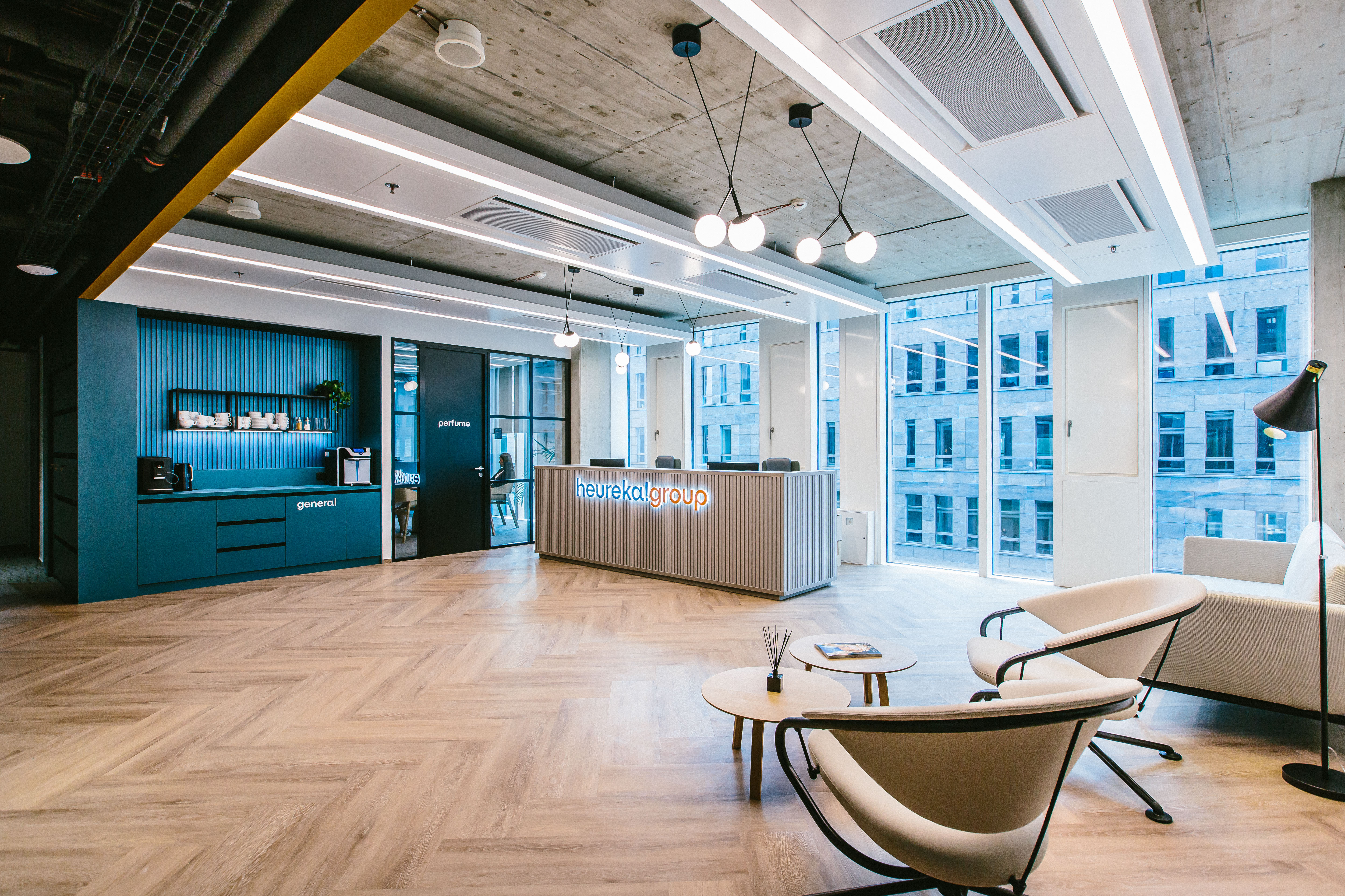 Pro Heureka Group jsme dodávali produkty značek HAY a Viccarbe. Zatímco HAY v interiéru zaujme především svými barovými stoličkami Revolver a AAS, Viccarbe stolky Burin a sety nízkého a vysokého sezení Copa.