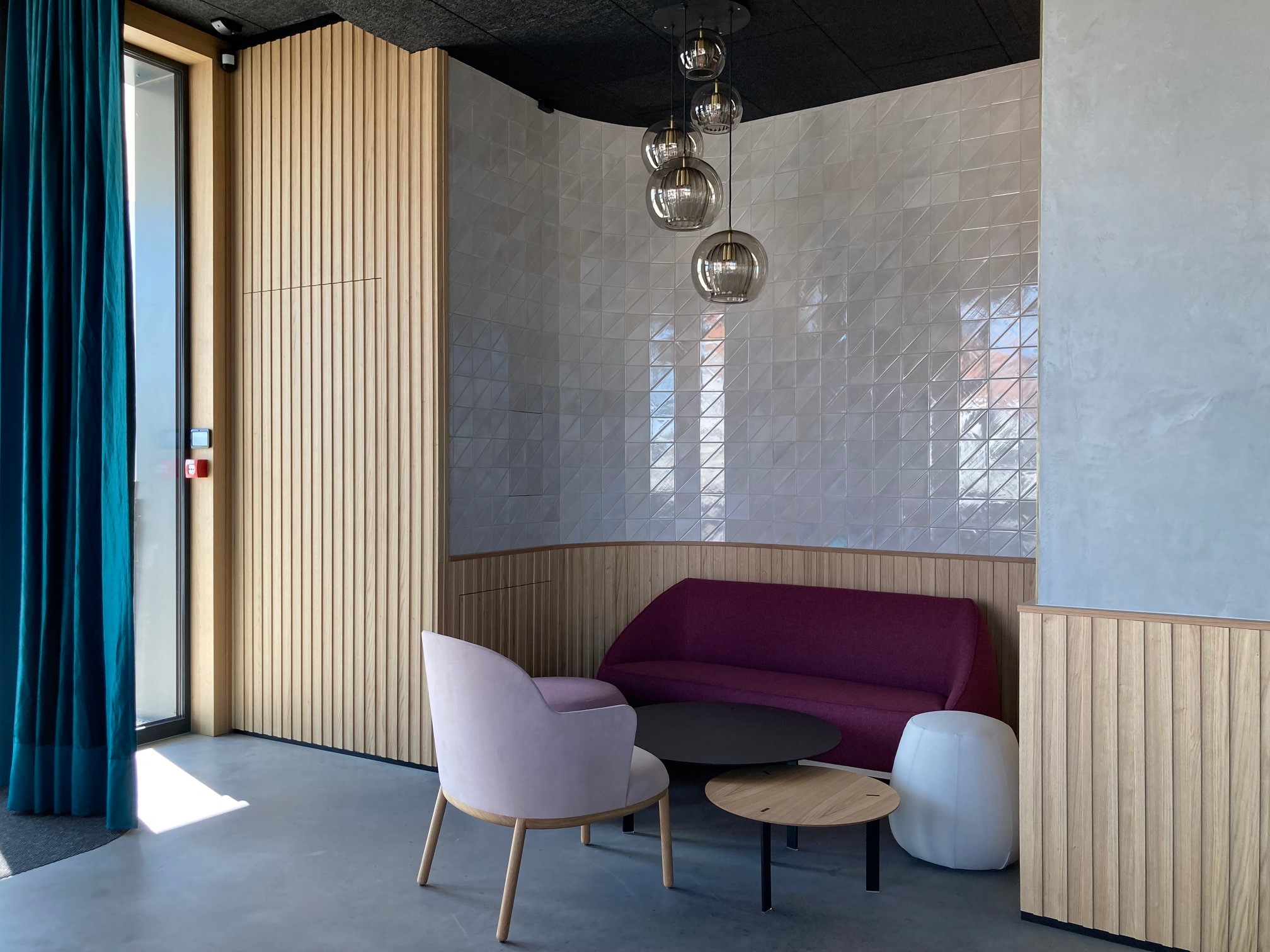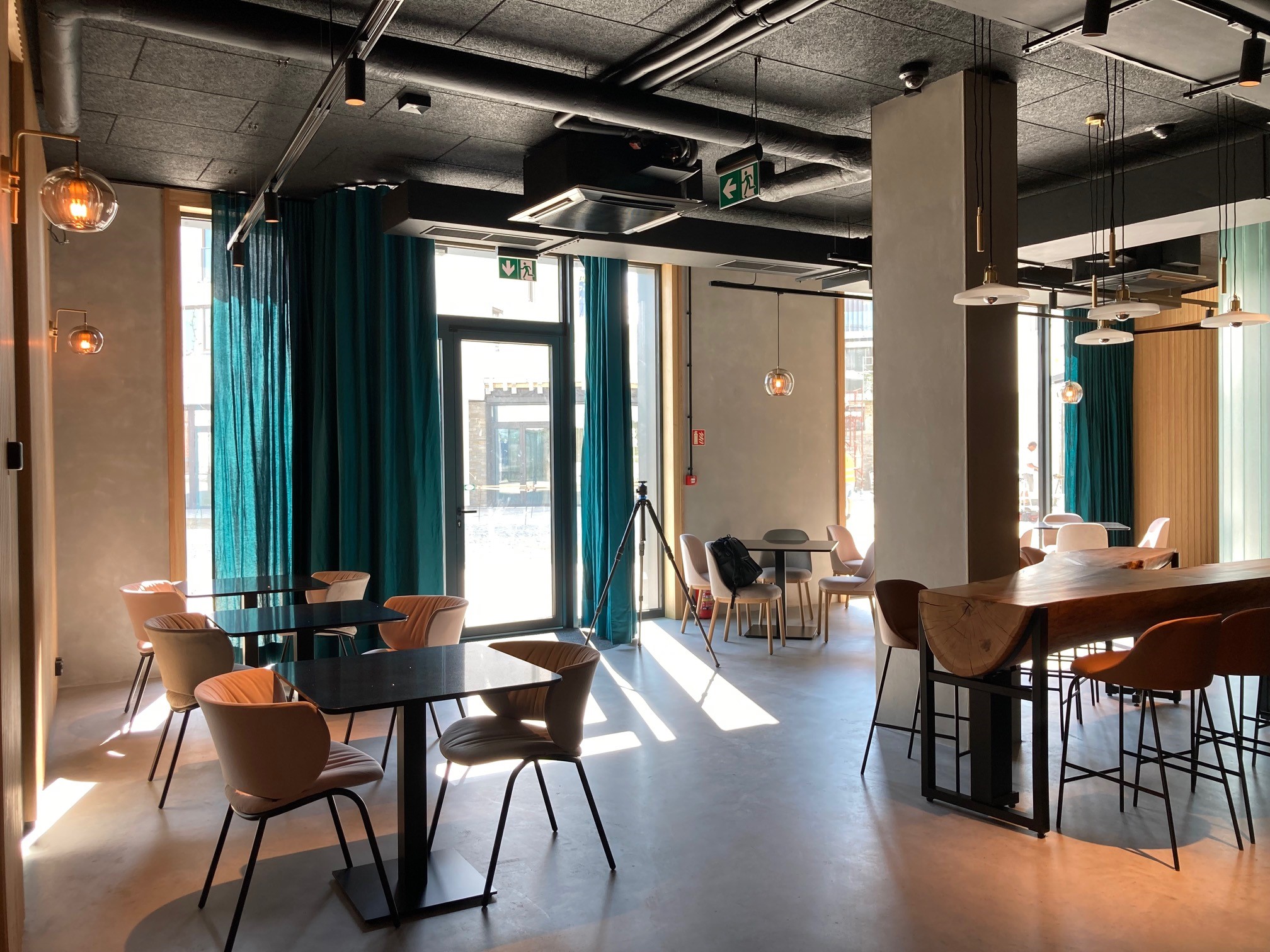 Interiér bistra jsme pomáhali vybavit nábytkem od společností Arper, Sancal, HAY, ale hlavně španělské společnosti Viccarbe, jejíž produkty Aleta a Funda jsou dominantou prostoru restaurace.