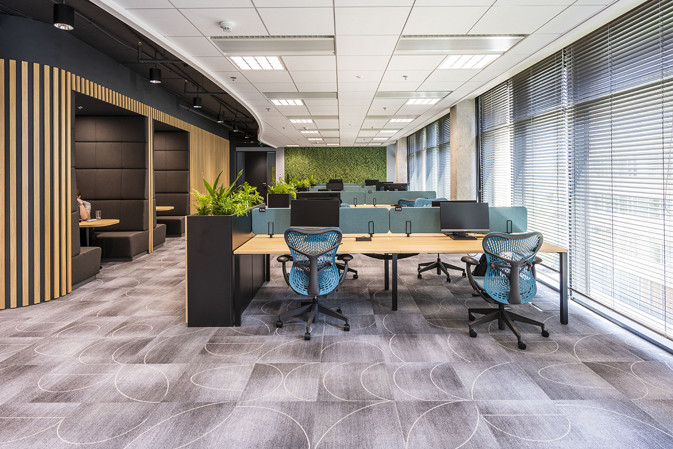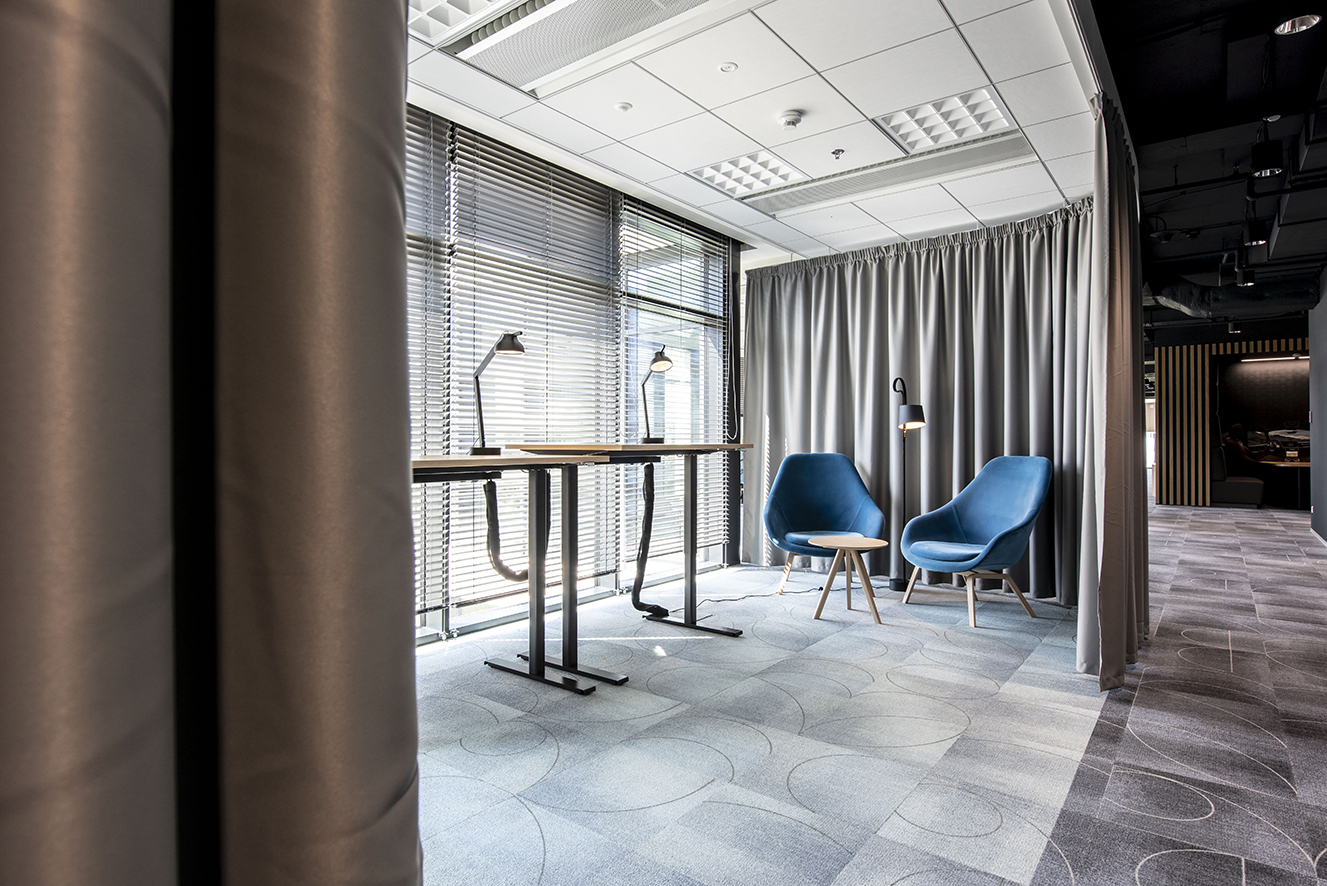 V souladu s touto myšlenkou byly moderní, designově více technické nábytkové předměty, jako jsou kancelářské židle od Hermana Millera nebo akustické budky Framery. Abychom vytvořili teplejší a příjemnější kancelářský prostor, zároveň jsme tyto položky spojili s uvolněnějšími a více "domáckými" kousky od Enea nebo Sancal.