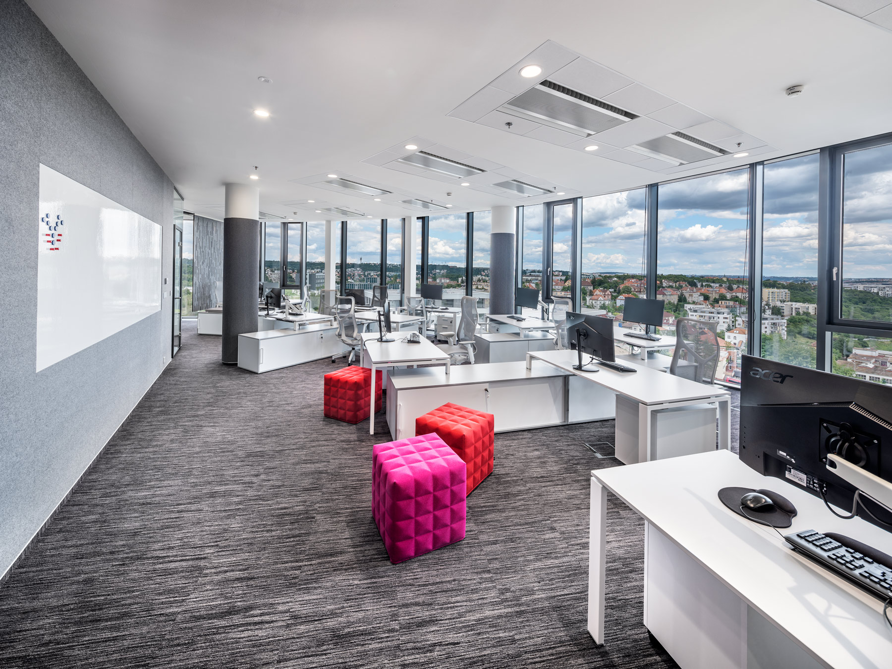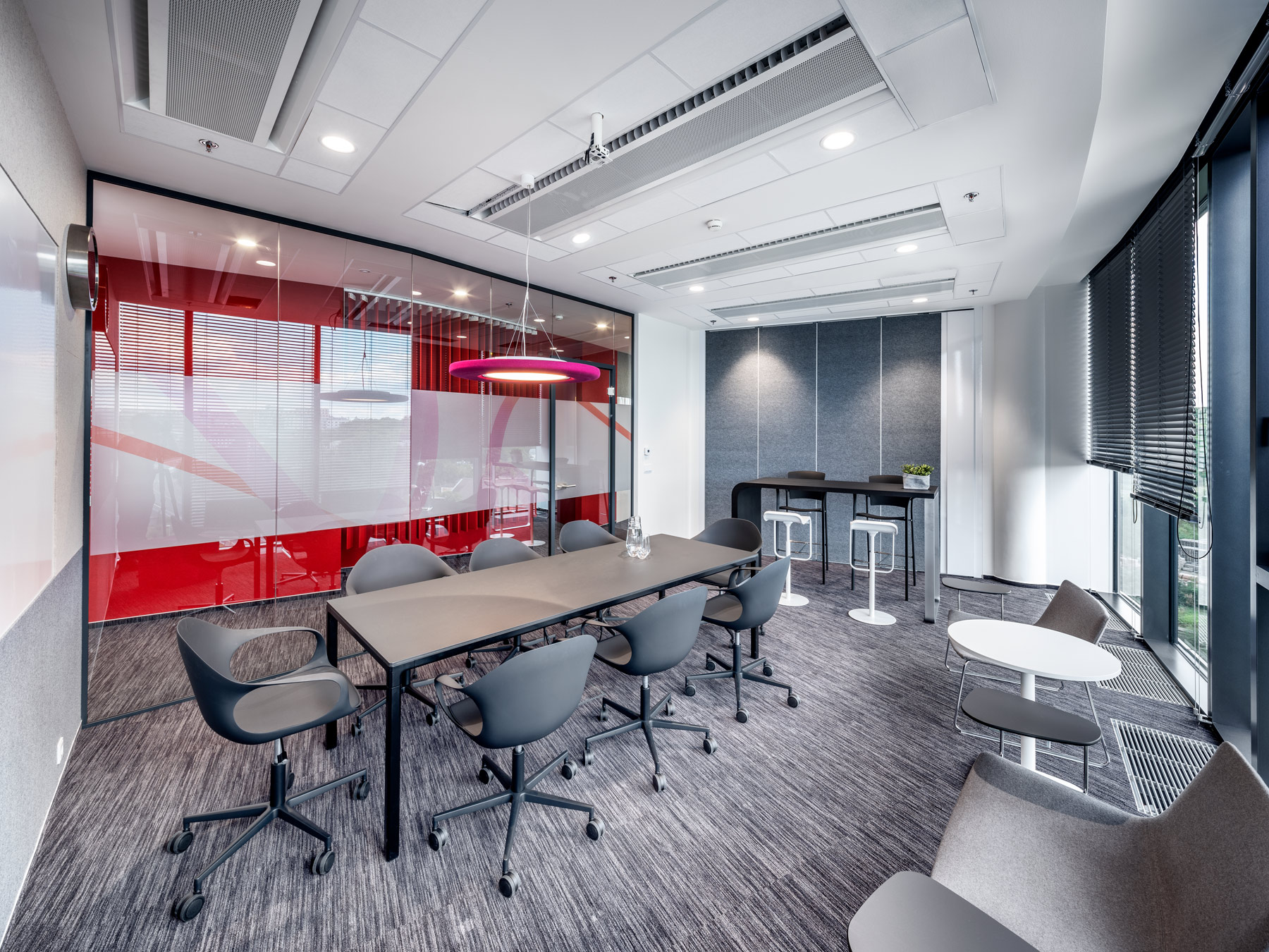 Pro energetickou skupinu MVV Energie CZ jsme zajišťovali vybavení interiéru ve spolupráci s Ing.arch. Evou Heyworth. Jednalo se o projekt pro více než 40 zaměstnanců do nové administrativní budovy Dynamica v pražských Radlicích. V projektu jsme řešili především ergonomii sezení, veškerý soft seating do relax zón a jednacích místností, a doplňky. Samozřejmostí je naprostý akustický komfort. Dalšími dodanými prvky byla například akustická budka pro 4 osoby Framery Q nebo velkokapacitní úložný prostor Bruynzeel.