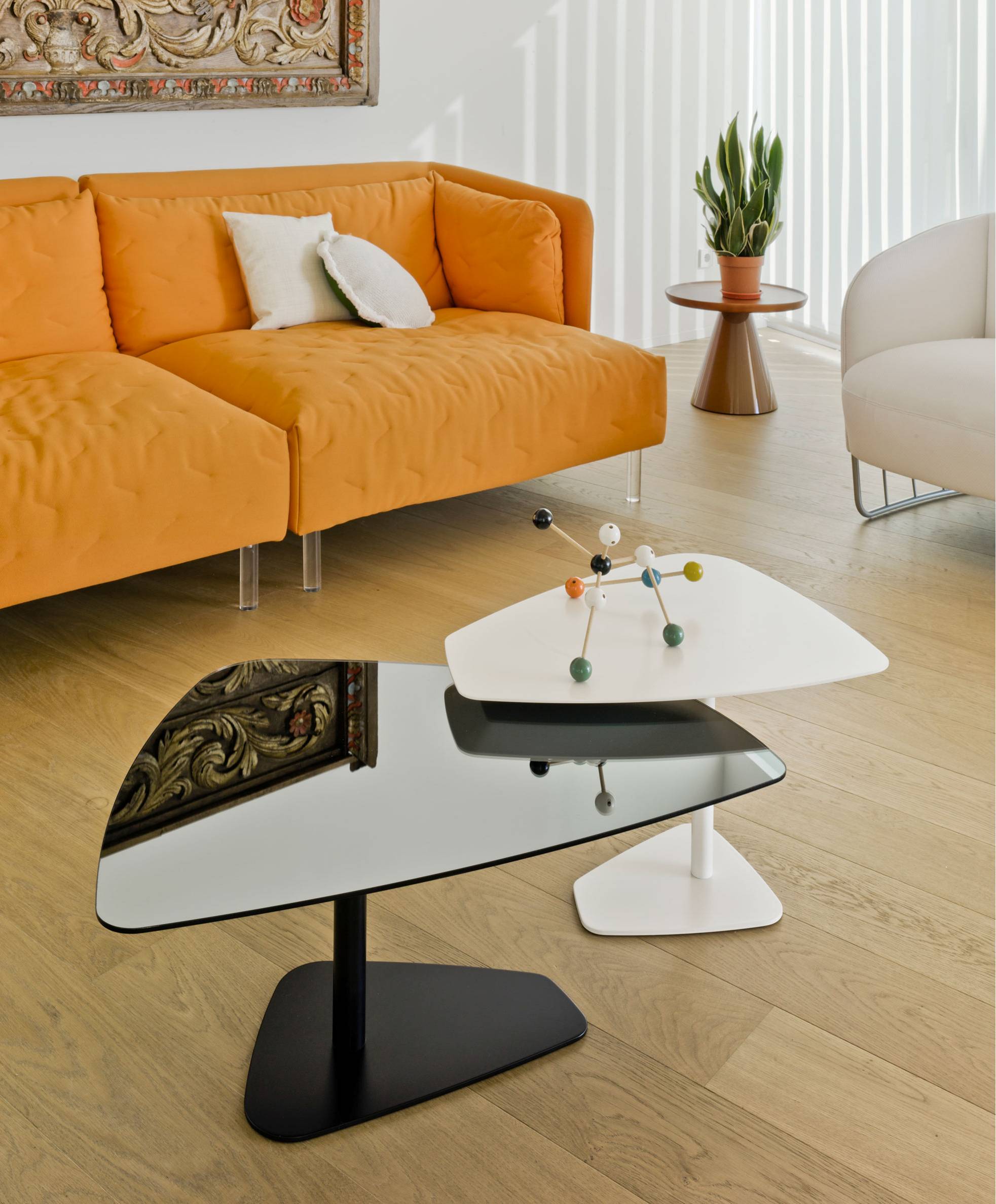 Rock is a small family of tables inspired by the abundance, exuberance and optimism of the 50s. Rafa García was influenced by organic and biomorphic forms. The result is lacquered Rock as a new version with a light color palette. There is also a version in combination of oak and mirror. The variety of combinations offers the creation of personalized melodies ...