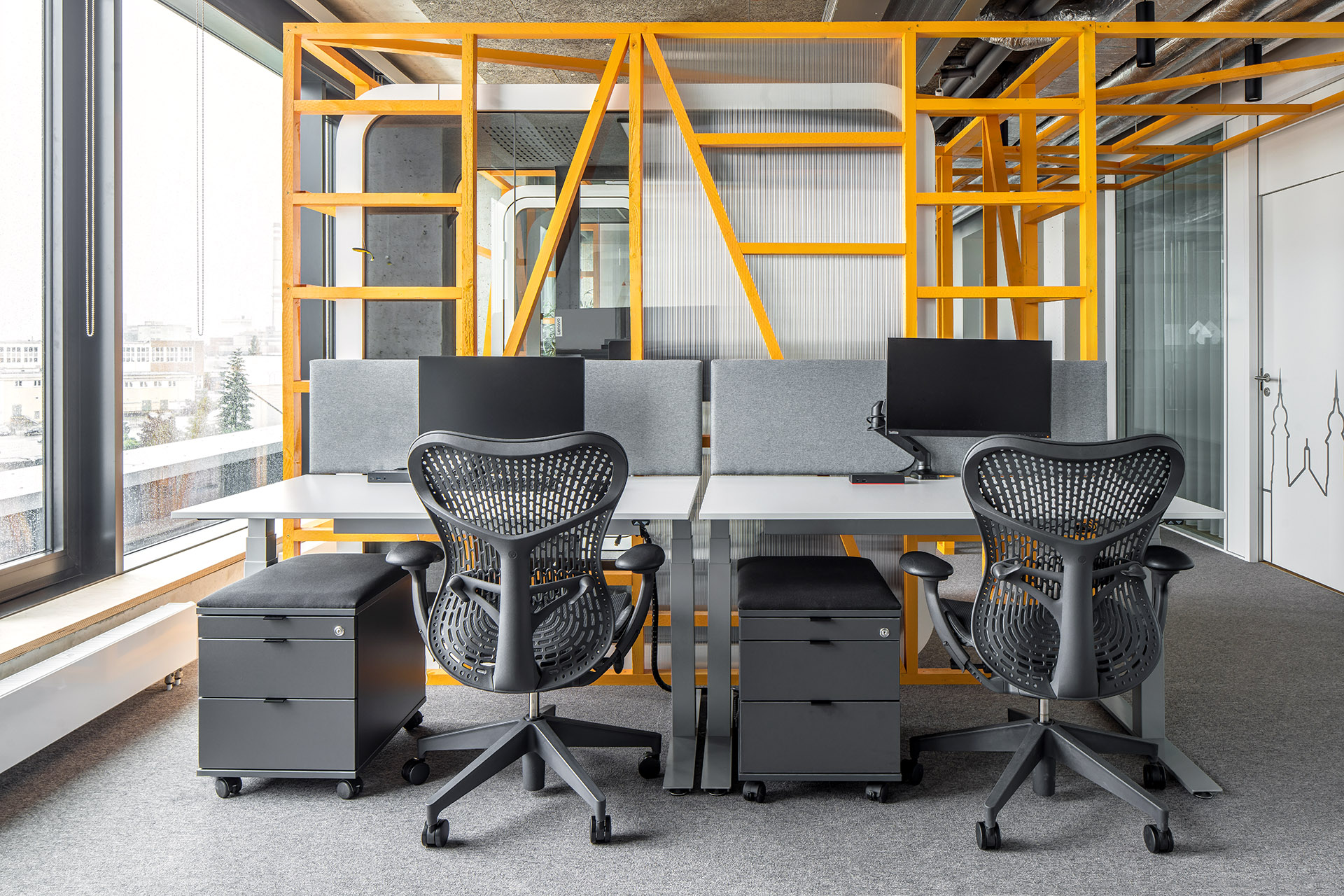 For Aimtec digital ecosystem producers we helped equip their headquarters in Pilsen in the Hamburg building. The office interior has been functionally equipped with Mirra and Keyn working chairs from Herman Miller and acoustically isolated zones are provided by acoustic booths from Framery. The overall picture of modern space is complemented by the Lottus chairs by Enea and ergonomics CBS.