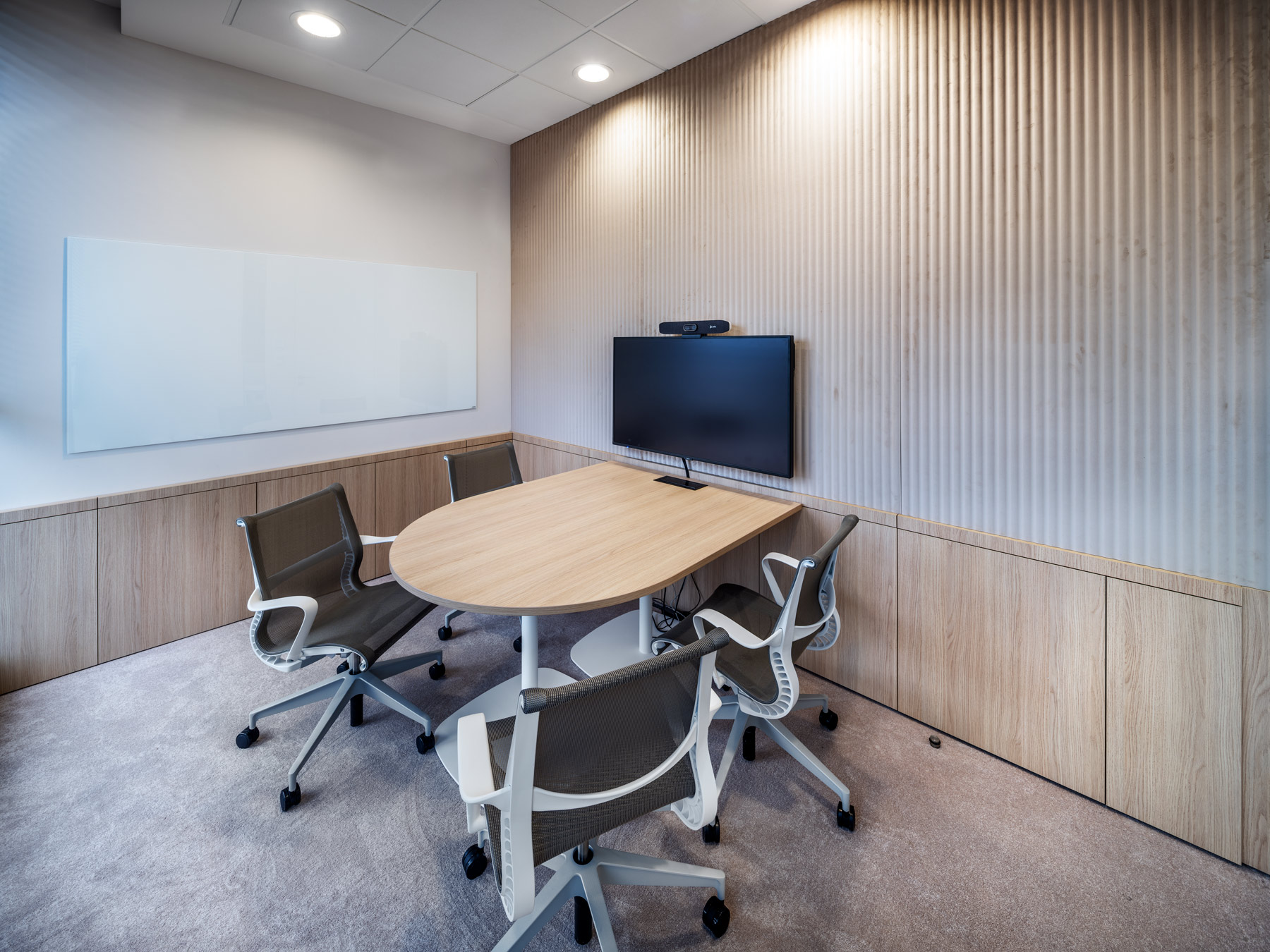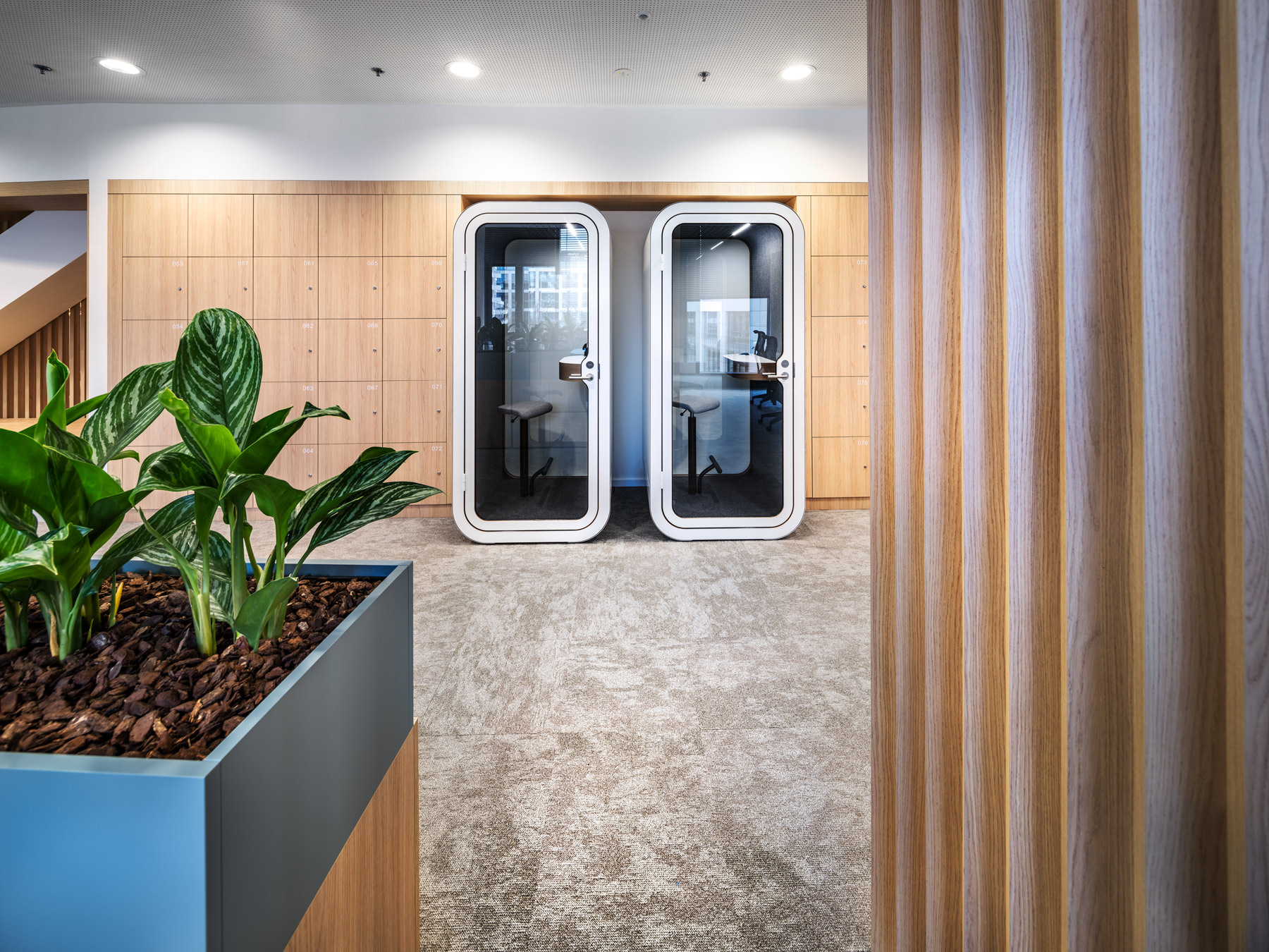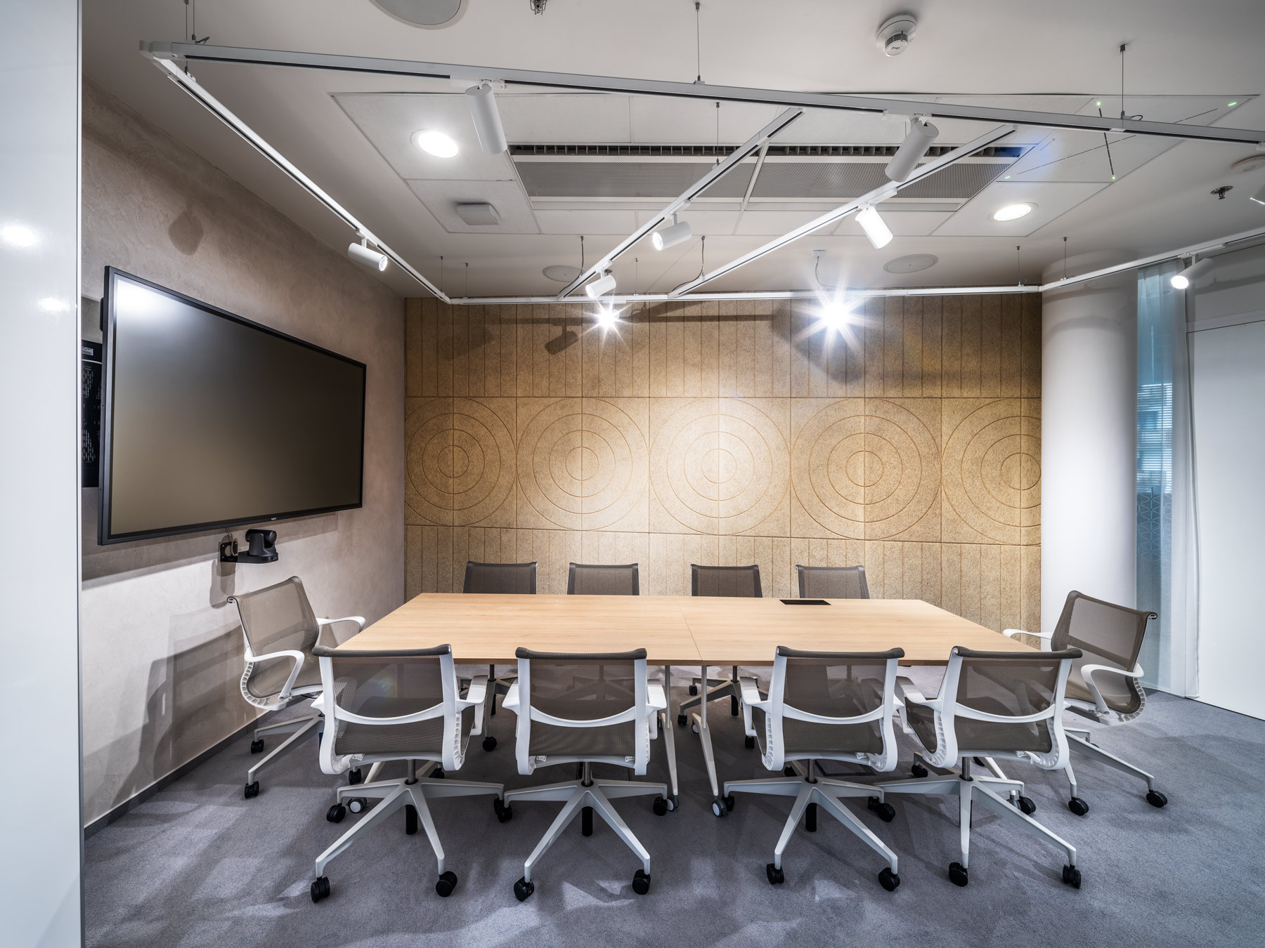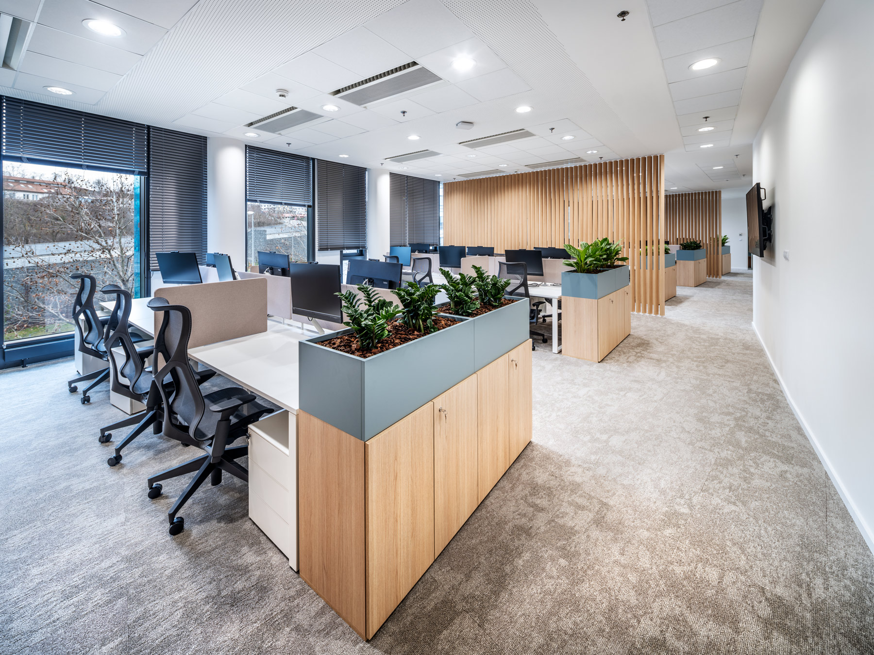 During AstraZeneca's move to new premises, we helped with furnishing the interior with furniture, but also with acoustic solutions for the space. We equipped more than 70 workplaces with height-adjustable cre8 FLEXI tables, ergonomic HermanMiller COSM chairs with automatic mechanics that do not need to be adjusted by personnel, so that workplaces can be shared without any problems. The meeting rooms are equipped with comfortable and innovative HermanMiller SETU ergonomic chairs. In addition to the classic cre8 PUZZLE and HermanMiller CIVIC meeting tables with cable management, we also supplied flexible Trilogy FARO folding tables, which allow you to quickly change the layout of the space. The acoustics of the space are helped to be solved by Framery acoustic booths with the best acoustic performance on the market and BuzziSpace brand products using the absorbing ability of the BuzziFelt material. The field of soft seating is represented by a wide range of products from the companies HAY, Enea, Sancal and Viccarbe. Lintex MOOD WALL glass and magnetic writable boards perform their practical function on some walls, giving the rooms a touch of exclusivity with their simple design.