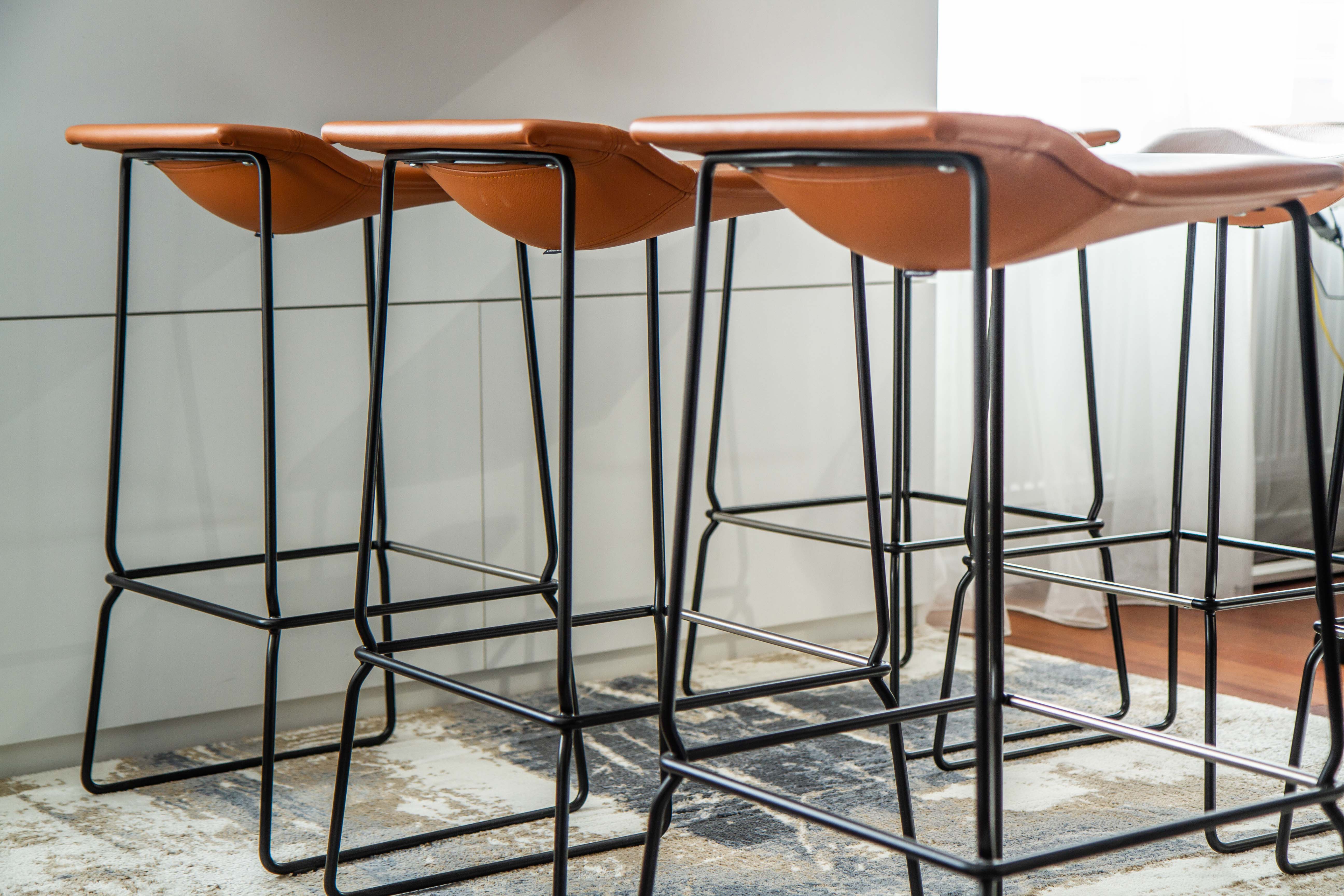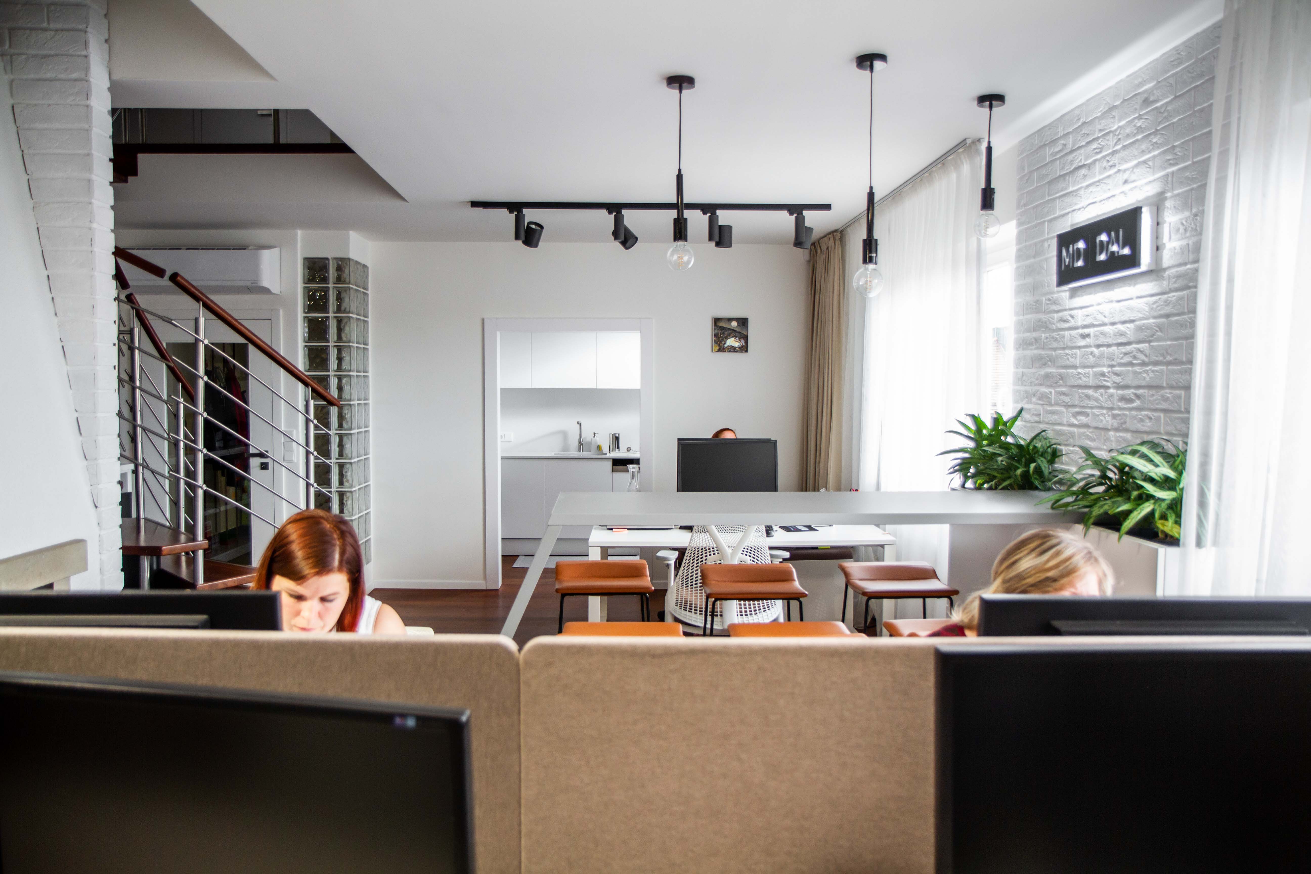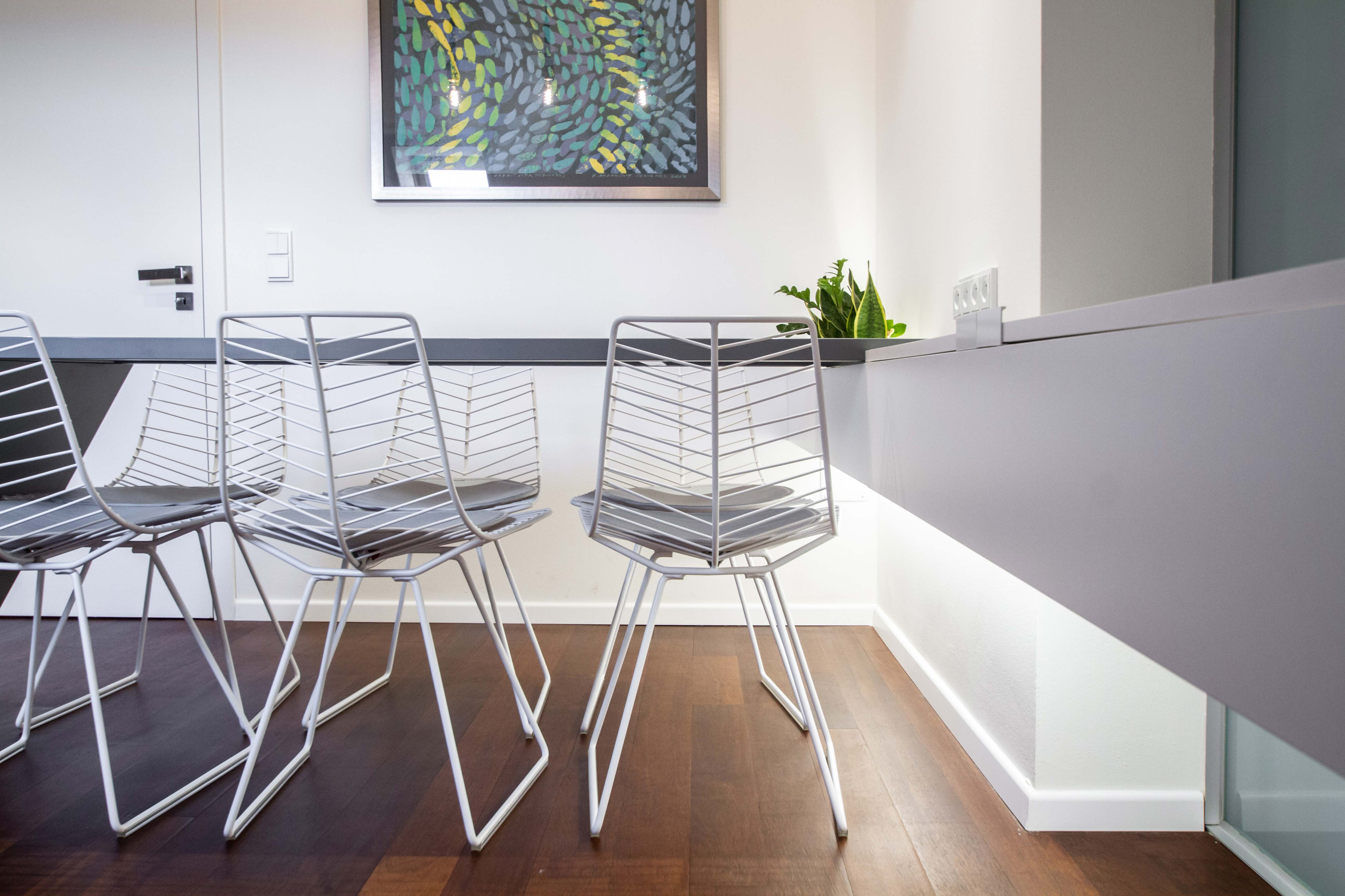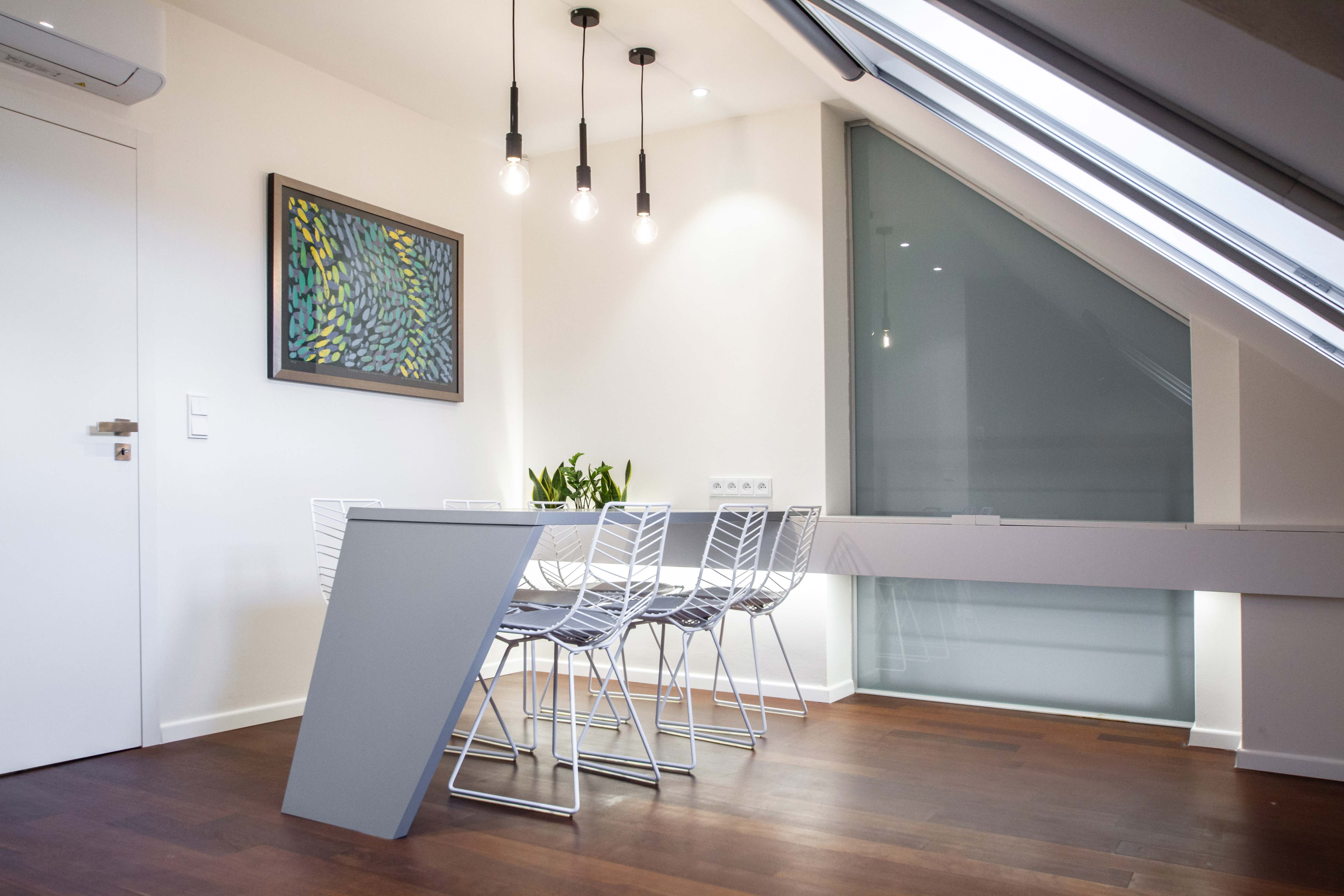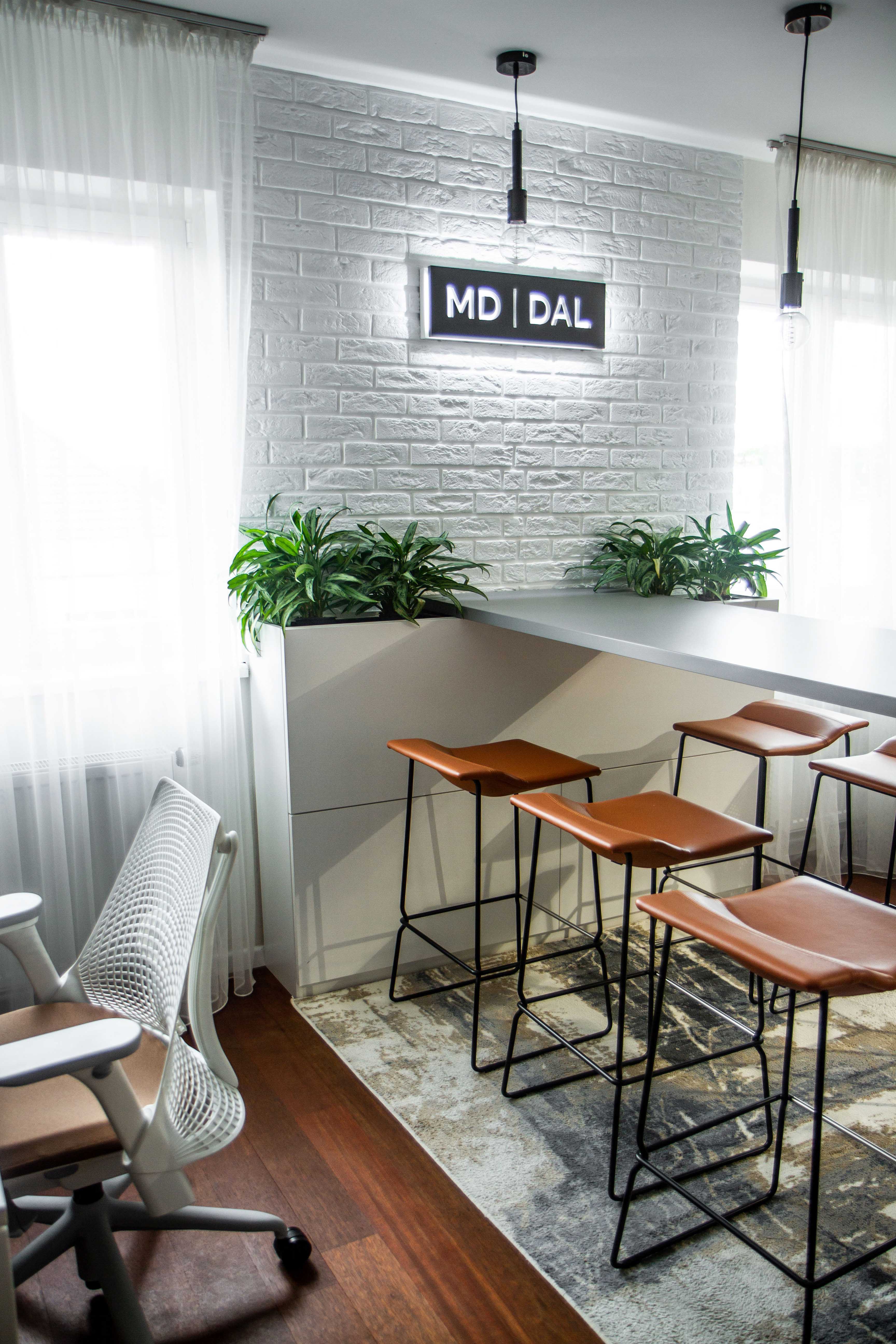 We have equipped industrially conceived offices for the accounting company Connect Economic Group. The interior has been designed in a way to hold as many working spots as possible and at the same time assure enough storage space, which is crucial for the accounting company. For example, Sayl chairs by Herman Miller were used, they are lightly built and their design does not look tough in a small office space. Another product used is leather bar stools Last Minute from Viccarbe, which complements the counter with a distinctive sloping base.