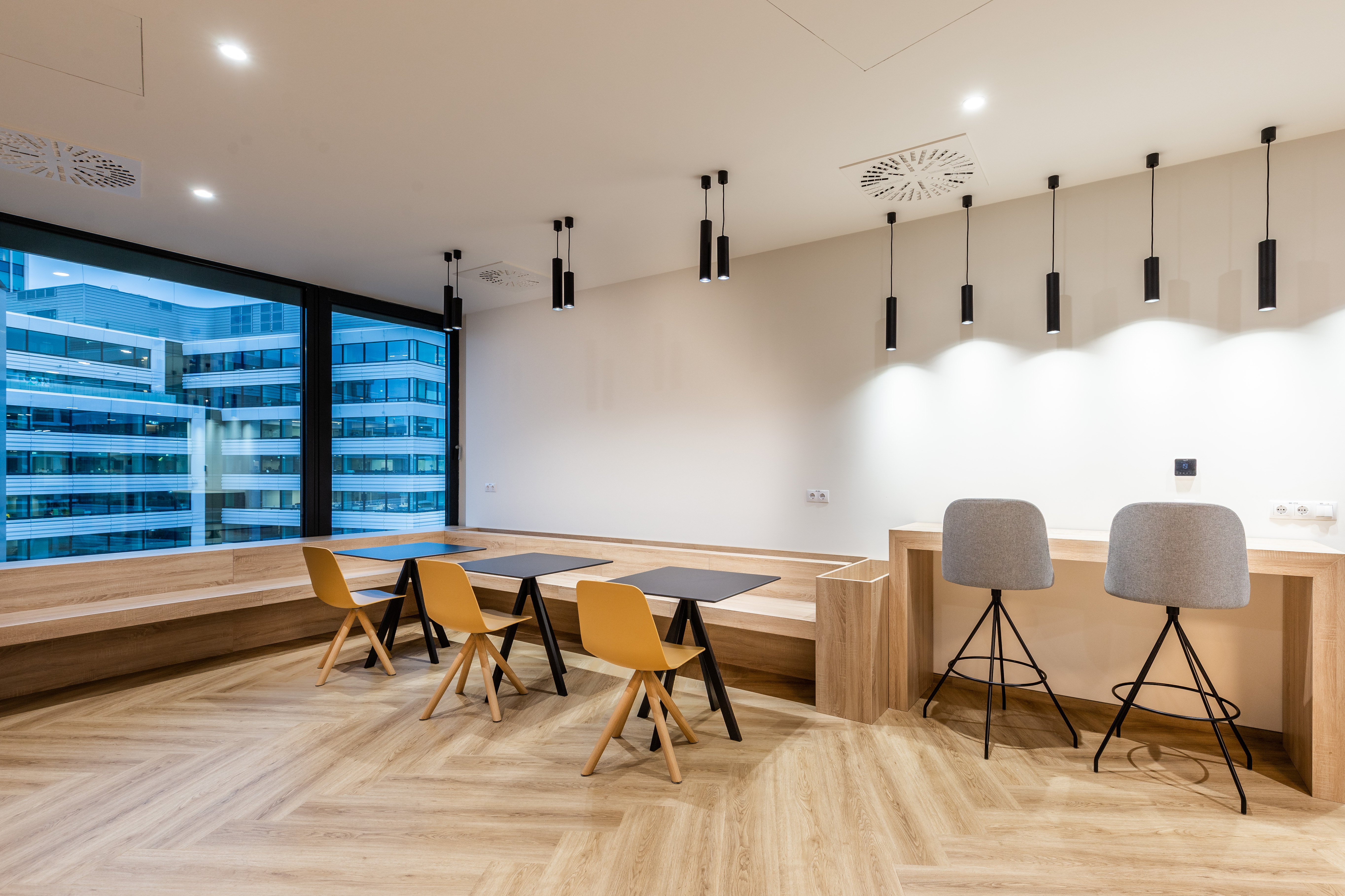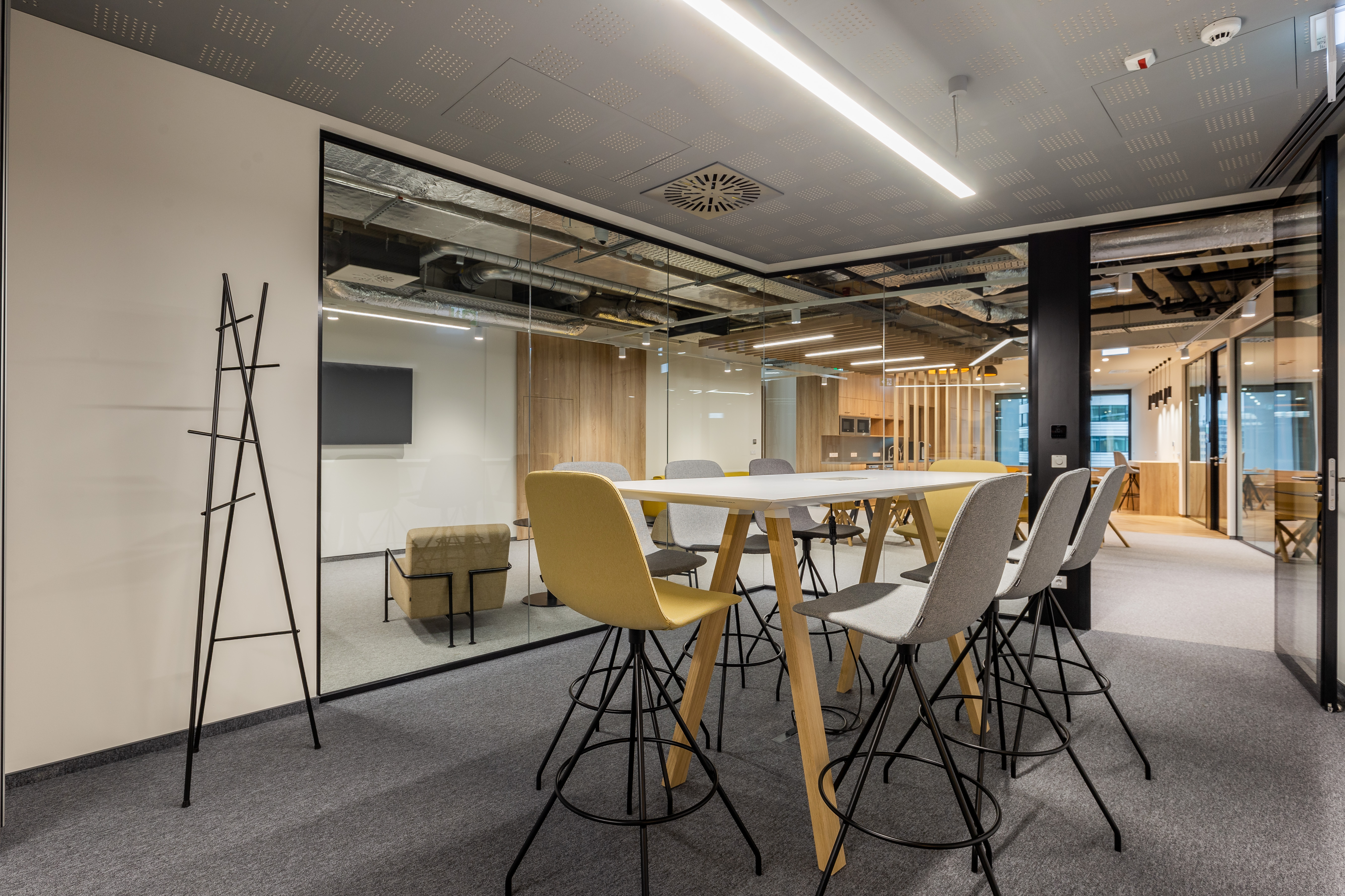 After a successful project in Bratislava, we continued the implementation in Budapest. The supplied office furniture is dominated by SAYL work and conference chairs from HermanMiller. The interior is complemented by chairs, armchairs and sofas from Viccarbe and Sancal. Acoustic privacy is provided by Framery O booths.