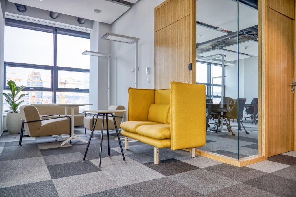 For this interesting project in Bratislava, we were approached to supply ergonomic HermanMiller office chairs complemented by proven Swoop tables from the same manufacturer, popular Sancal acoustic seating, cozy tables, chairs and lounge seating from Viccarbe and portable poufs and tables with Enea central base.