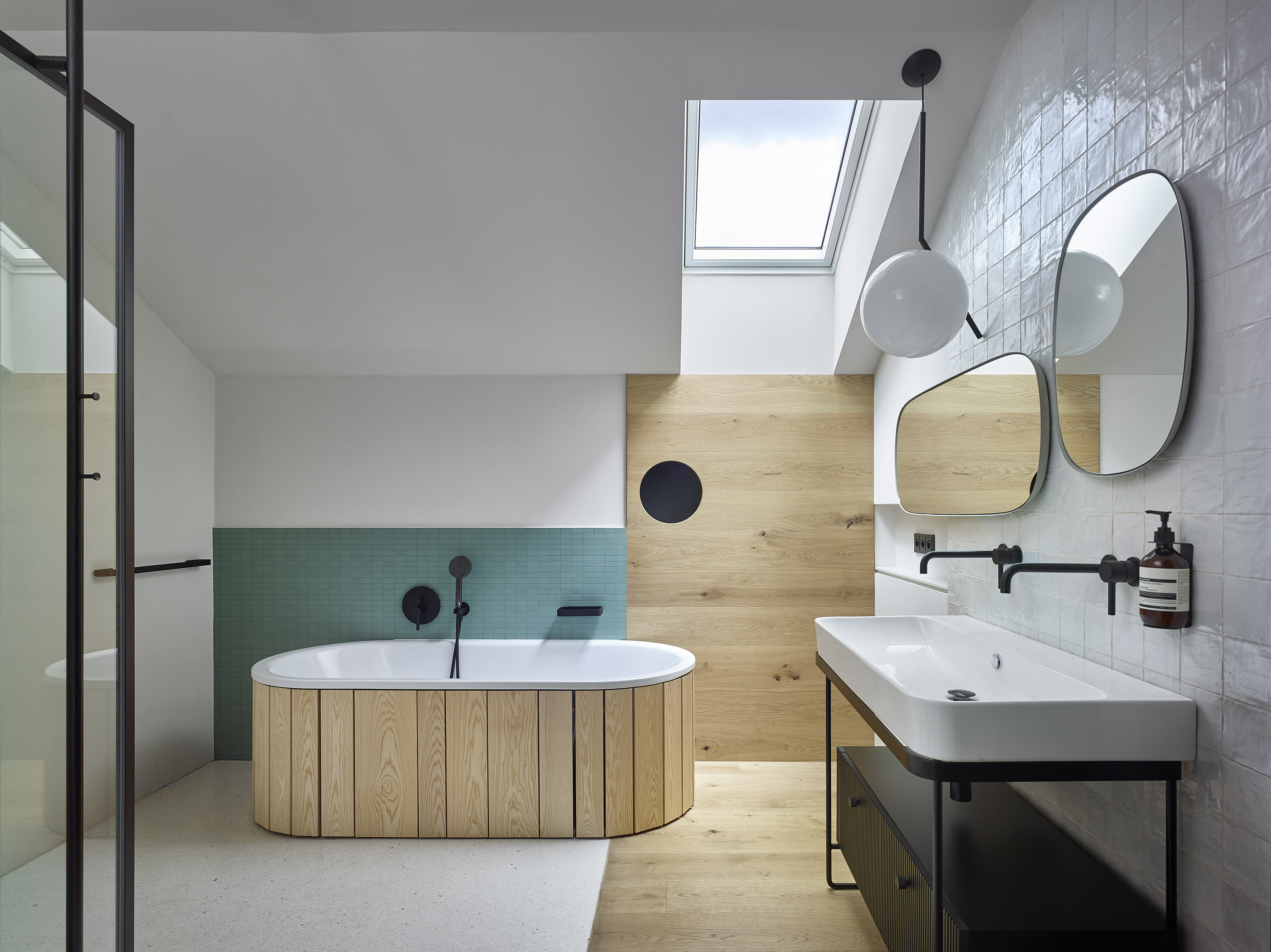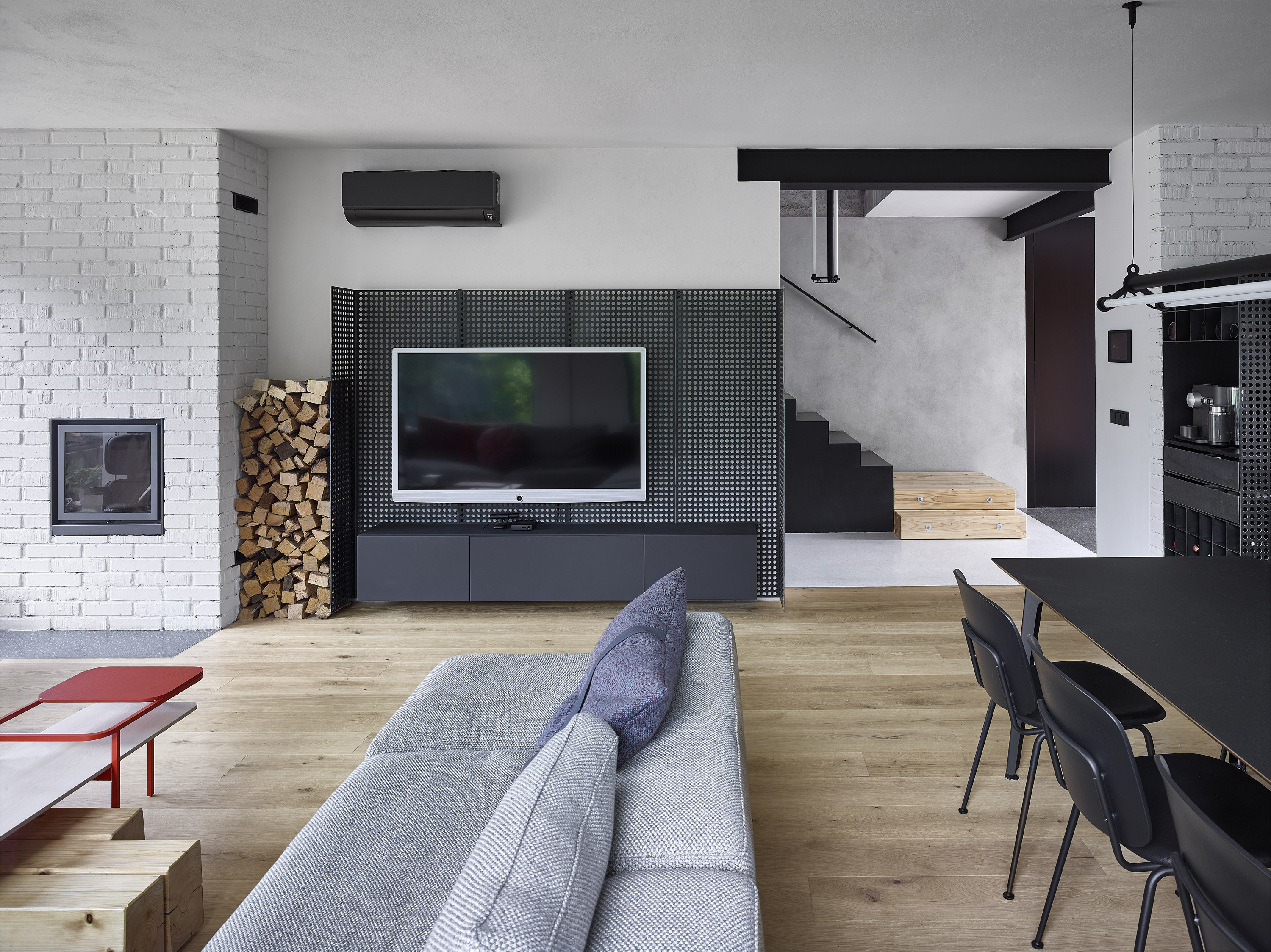 The investor bought a ten-year-old house. Unsightly, but spatially satisfactory, with only a few dispositional ailments. A complete reconstruction managed to achieve a pleasant and very comfortable living, this time in a beautiful house. Beautiful not only from the outside, but also inside. Thanks to completely new furniture and tailor-made and manufactured elements combining cold crude steel, warm wood and natural stone, a harmonious interior with several strong color accents was created.