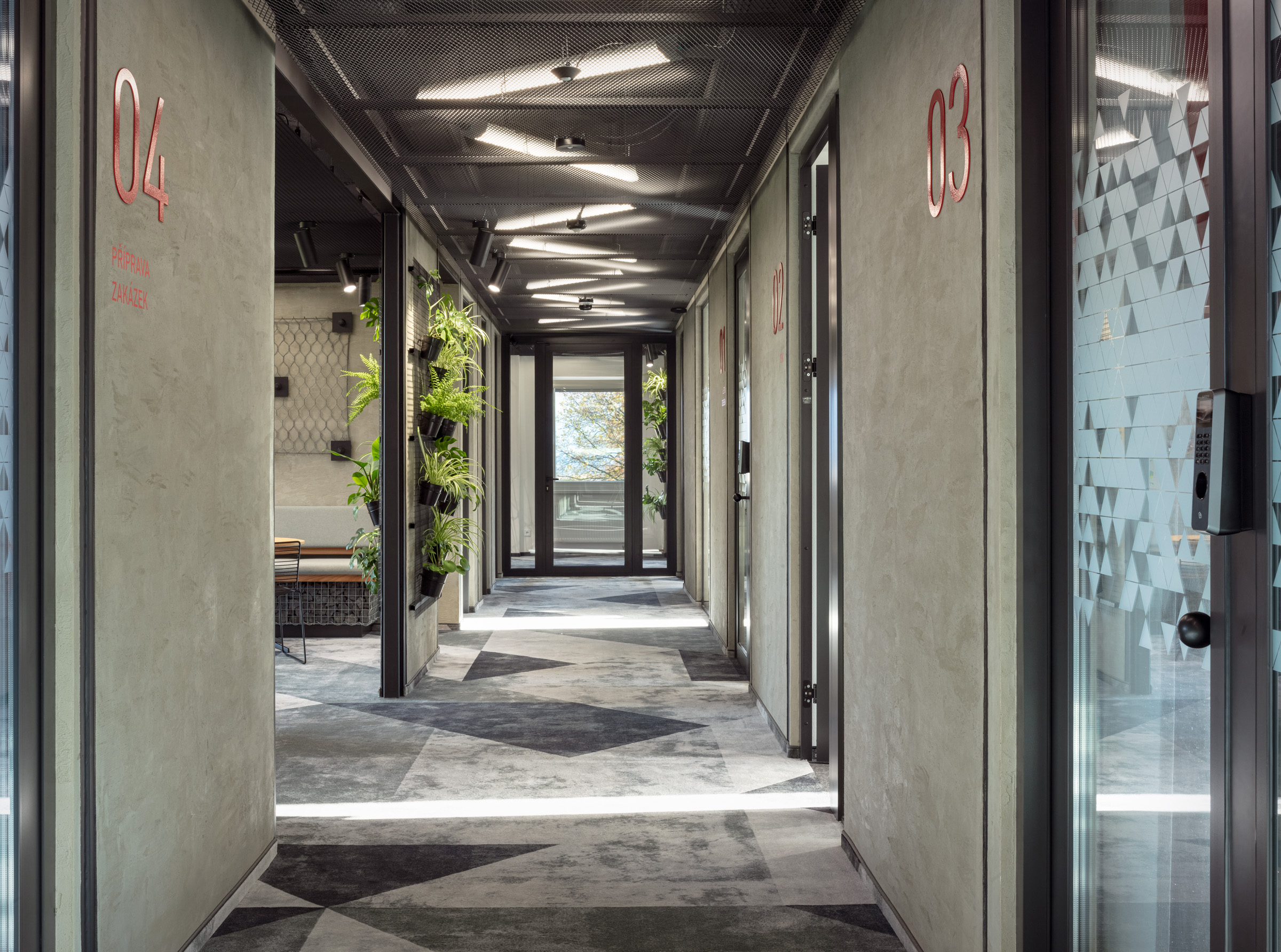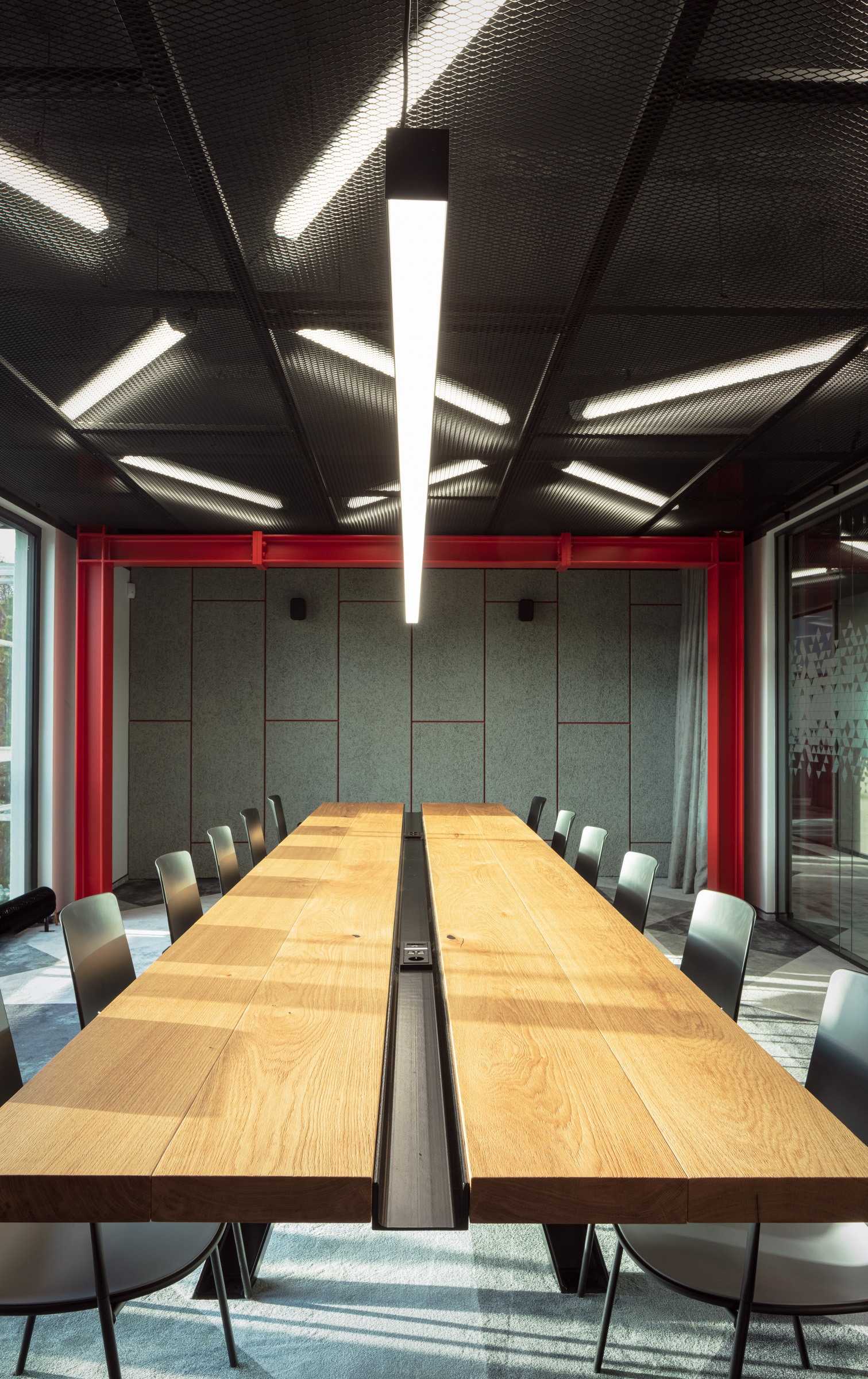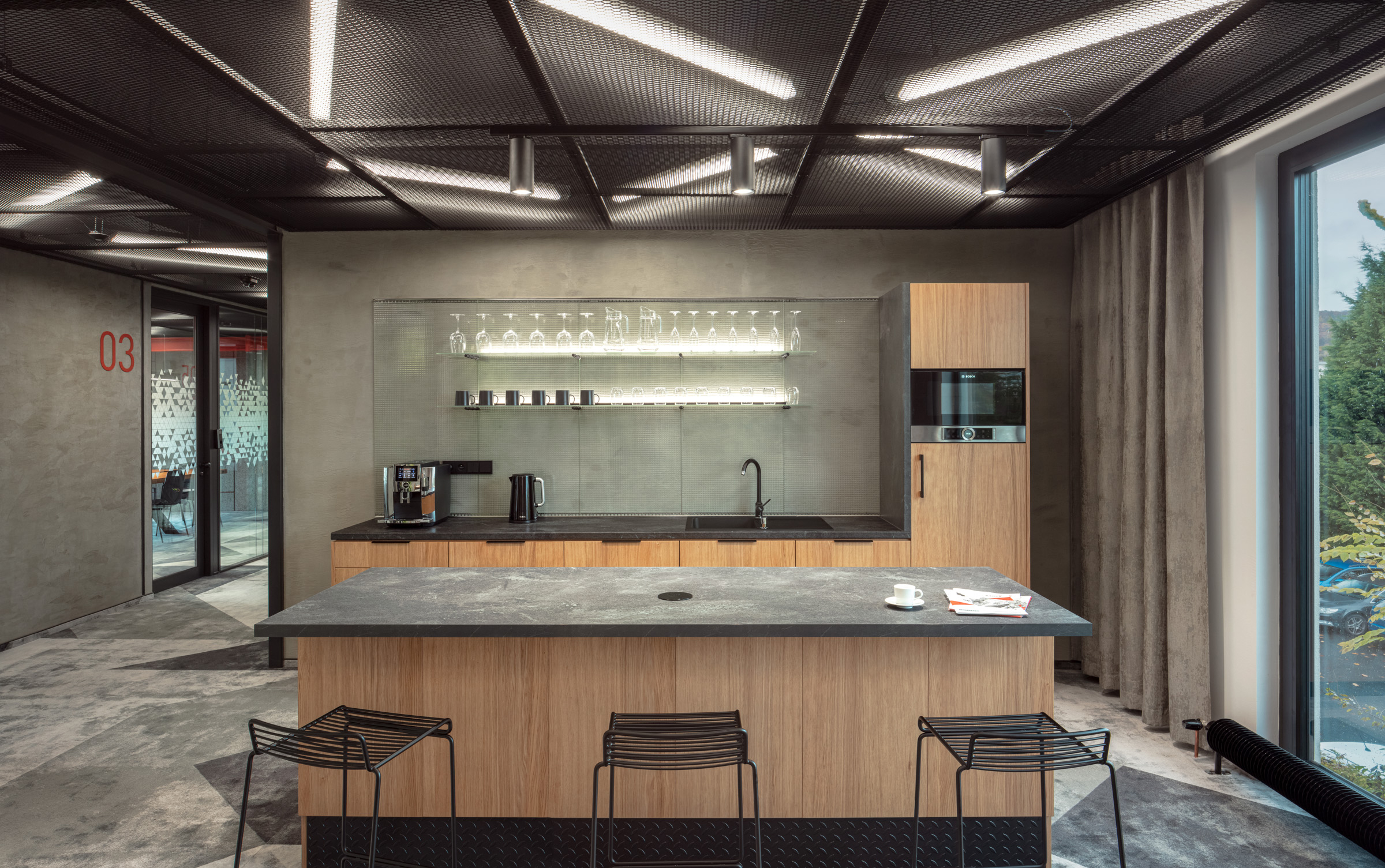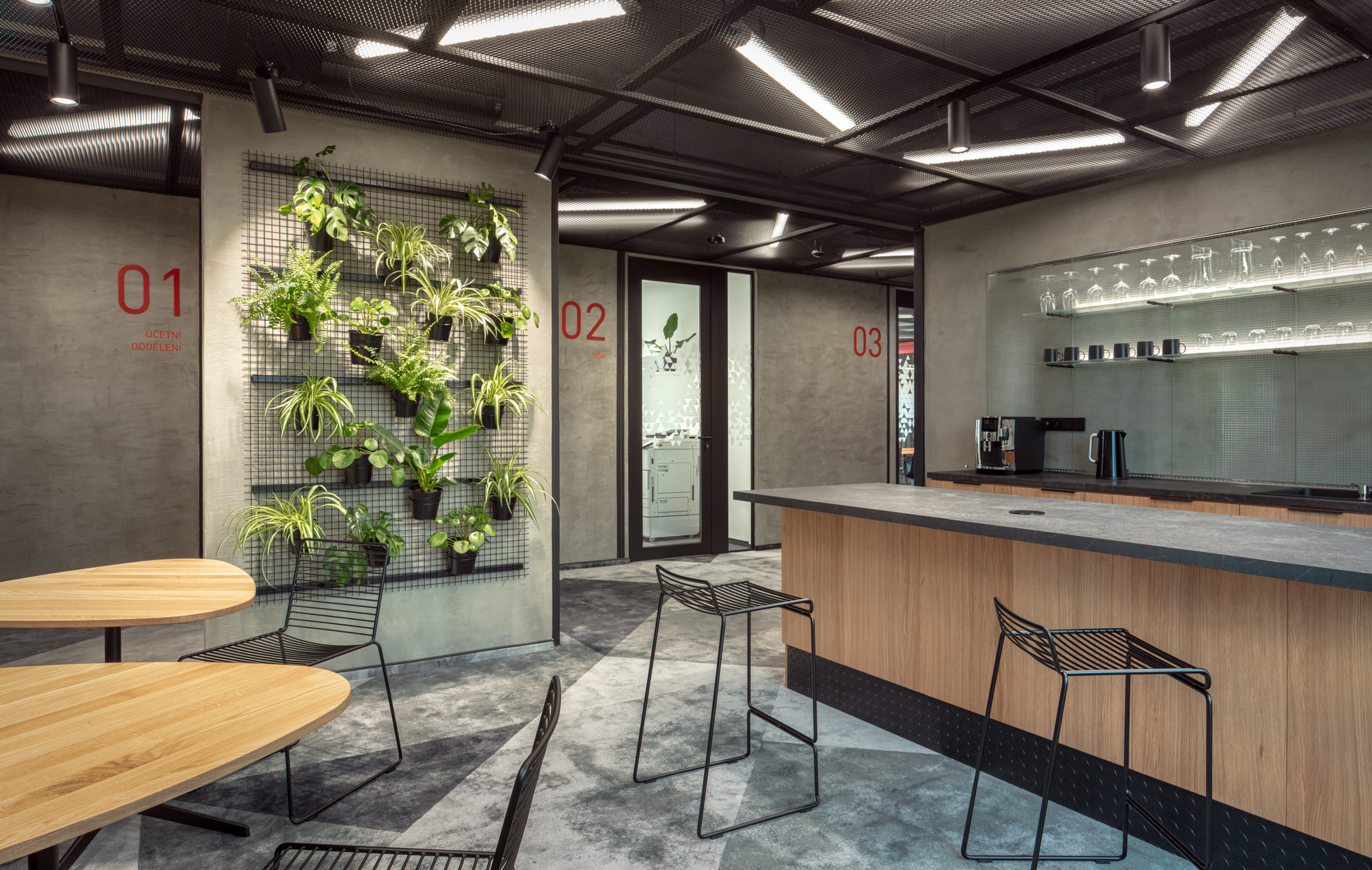 The new offices of the construction company Strix in Chomutov are unconventional in that they acknowledge the brutality of the building materials as the main design elements in their interior. The combination of concrete screed, steel beams and metal gratings stylistically harmonizes and coincides with the company's work focus. And simply - it is tasteful and original. HermanMiller SAYL ergonomic chairs, Puzzle office tables and cre8 Storage containers were supplied by us. We also enlivened the interior with acoustic seating BuzziCube and Bella tables from the HAY brand. Industrial design is underlined by HAY Hee wire chairs and bar stools, which can also be used for outdoor seating. In the meeting rooms, we then used the very popular ENEA Lottus chair for its simplicity and comfort. Everything simple, functional, practical.